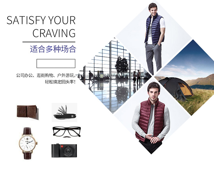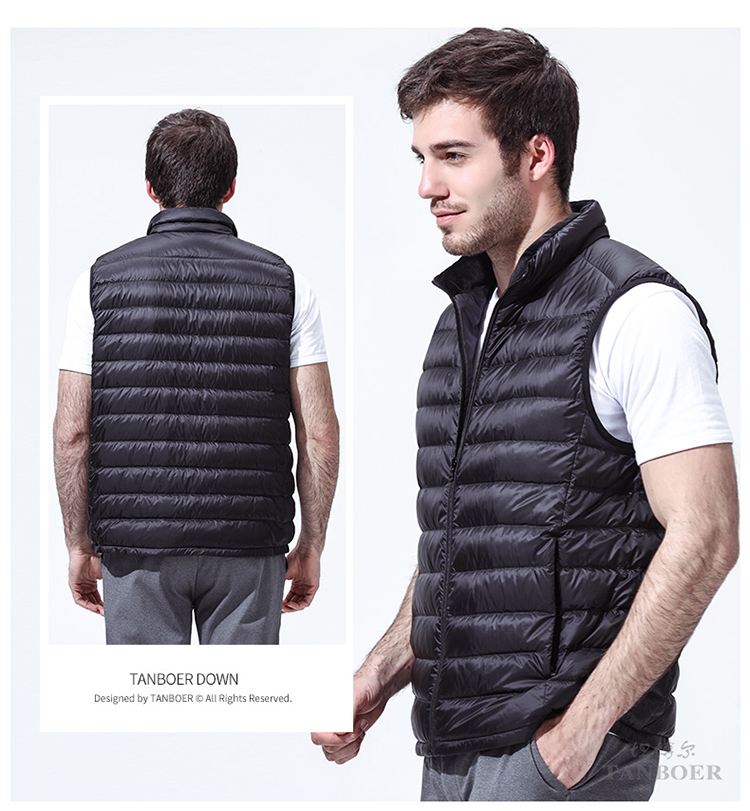 TA18001 坦博尔冬季新款马甲男士轻薄保暖马夹时尚立领黑色羽绒衣