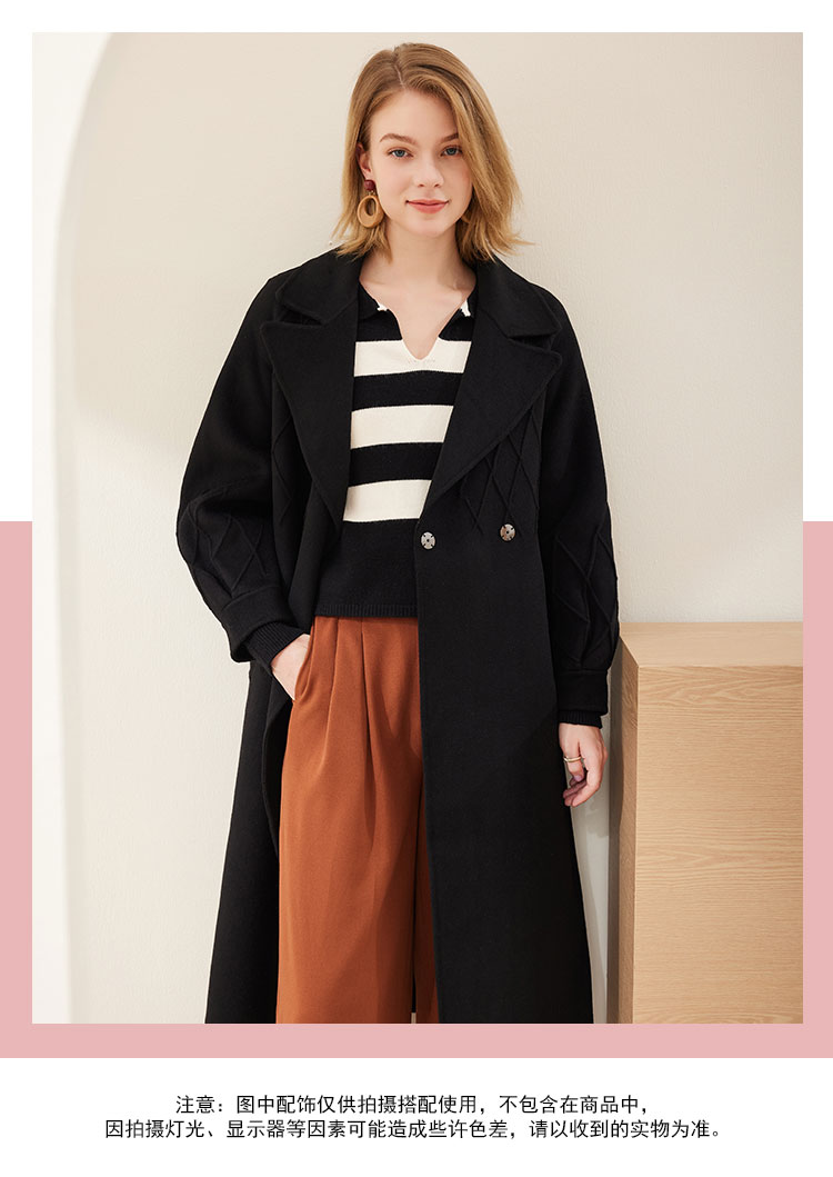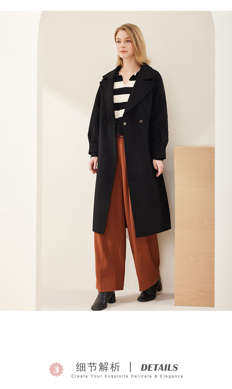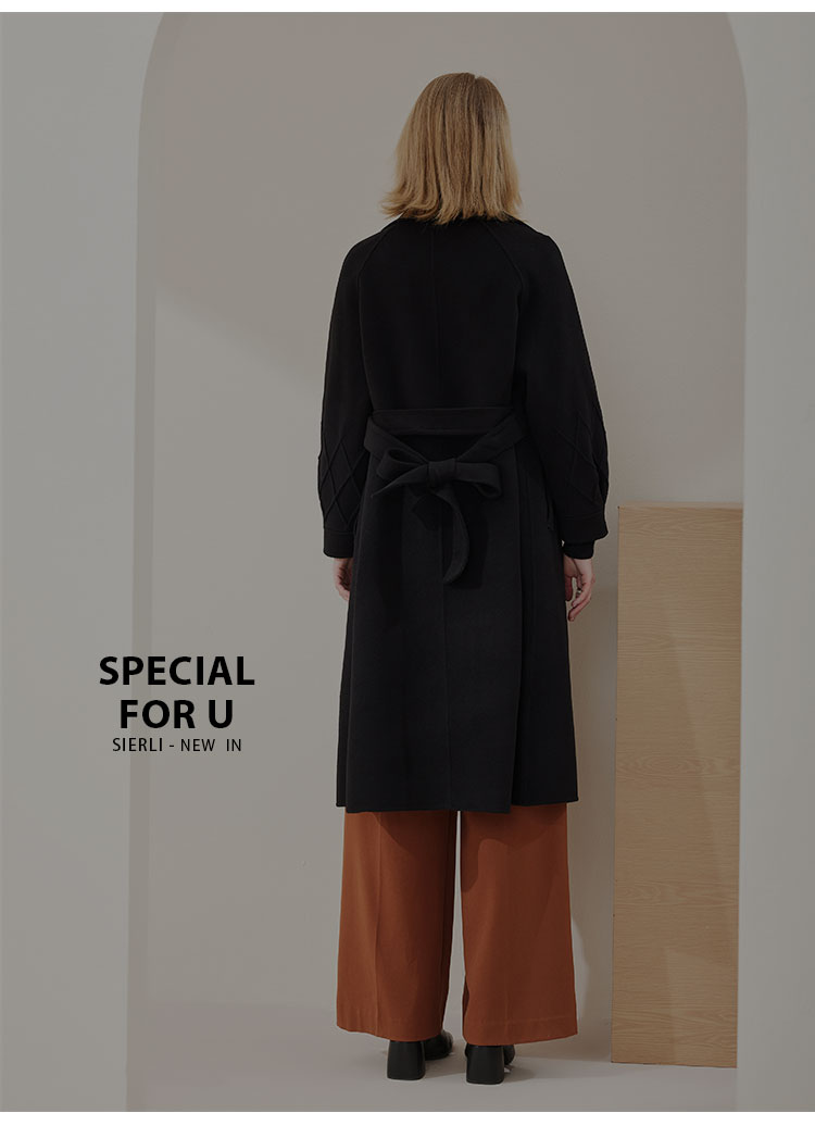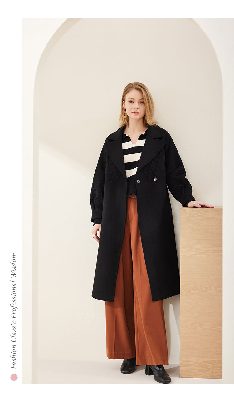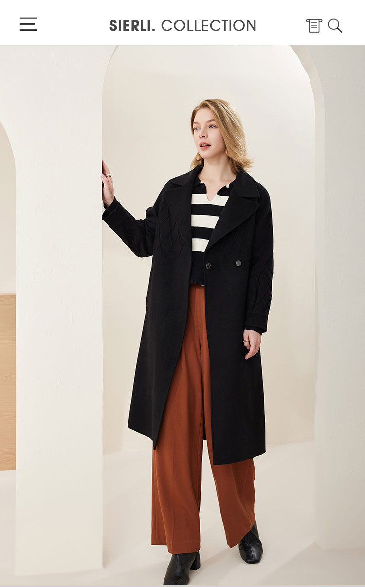MH9H7斯尔丽瑟俪2022年冬上新商场同款小众菱形格纹线条设计阔版大衣