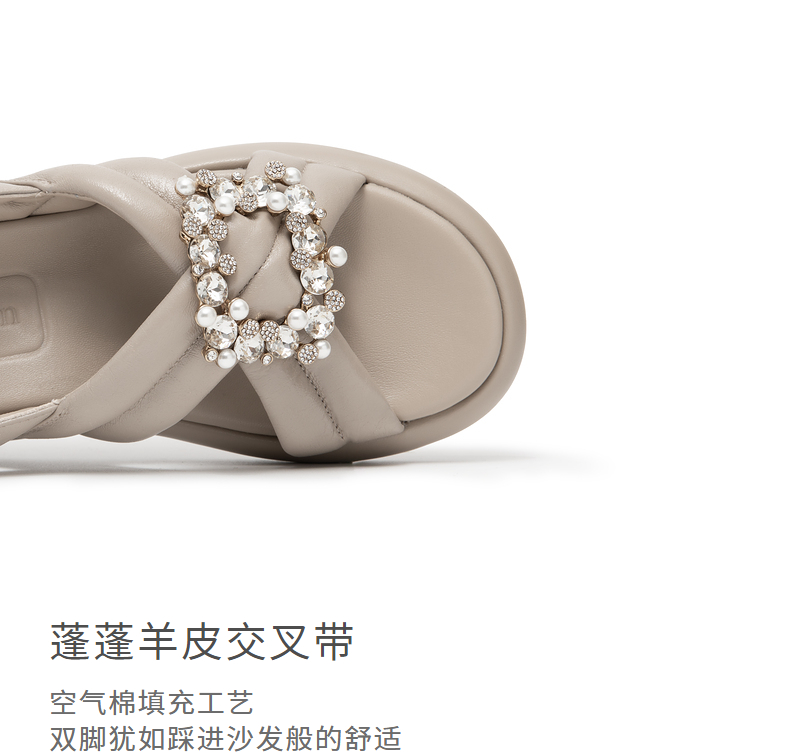 千百度羊皮粗高跟鞋女通勤正装法式扣饰气质浅口单鞋A25485663