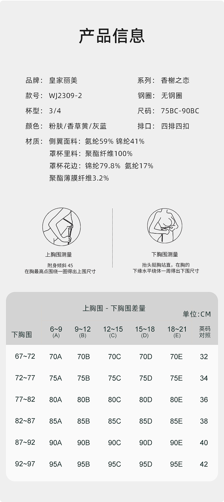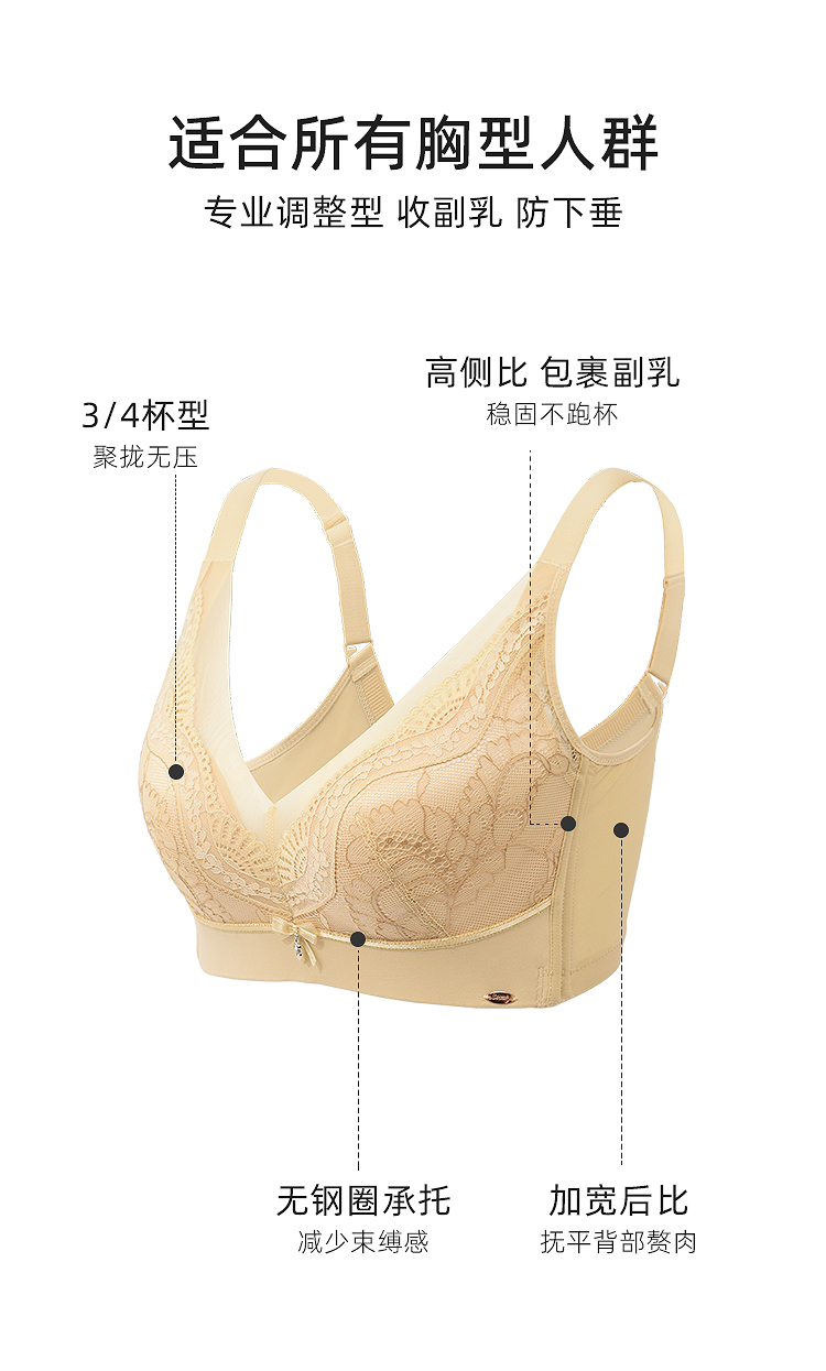 皇家丽美2023新款香榭之恋系列无钢圈一体式调整型文胸3/4杯型WJ2309-2