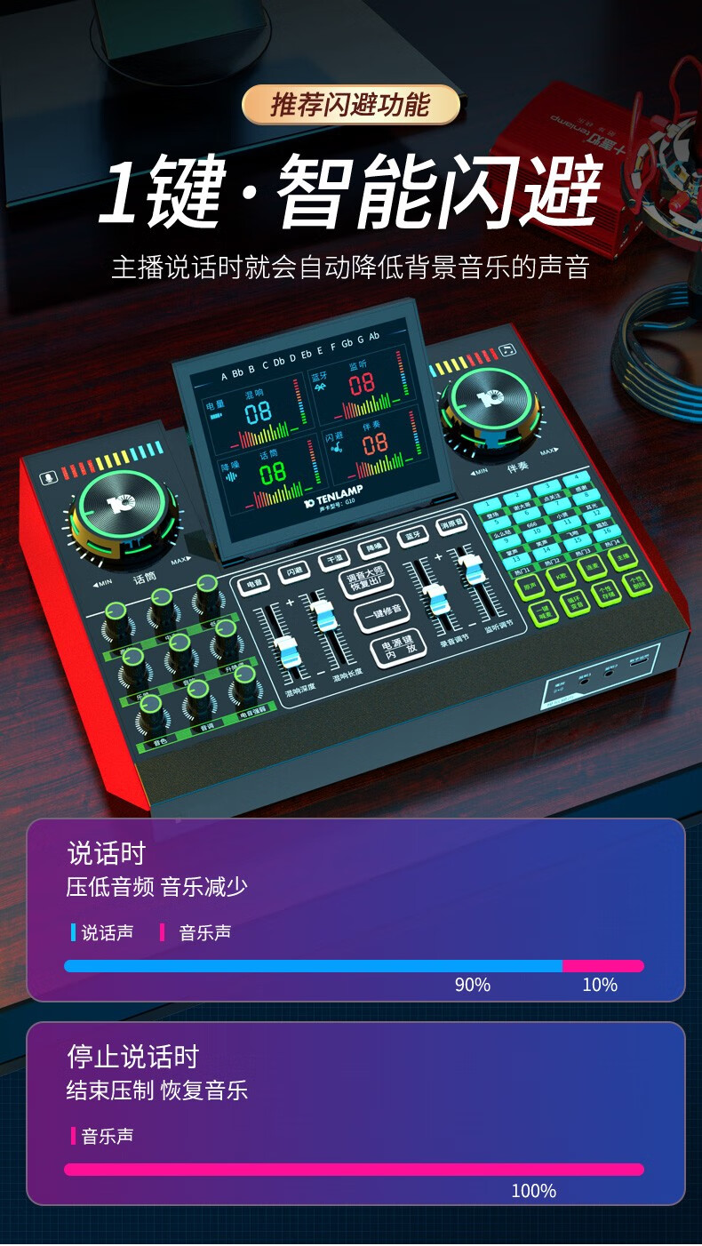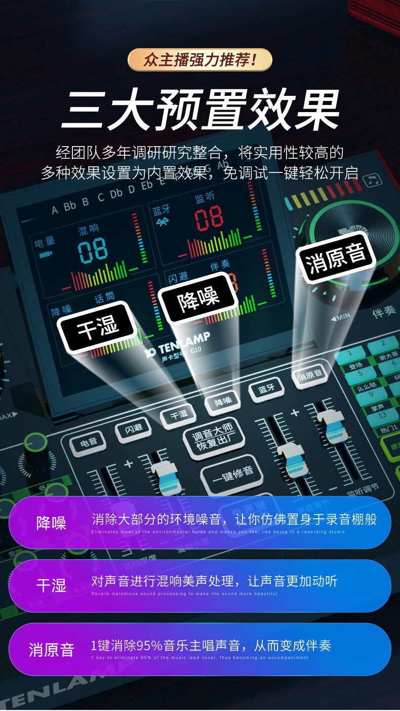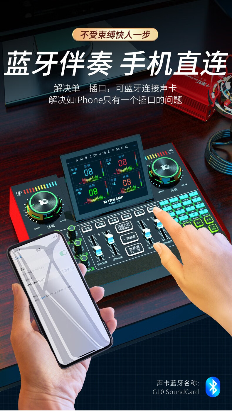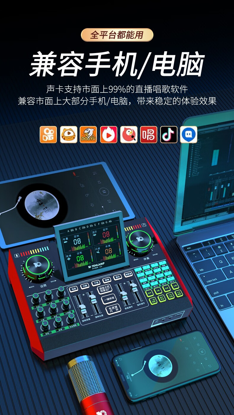 十盏灯 G10麦克风声卡套装 【Q8电容麦+G10声卡+W15无线麦】手机电脑通用抖音快手主播直播K唱歌带货喊麦录音专业直播设备全套