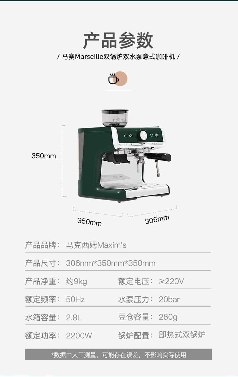 马克西姆马赛咖啡机意式全半自动家用奶泡机研磨一体半商用小型