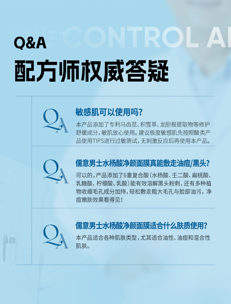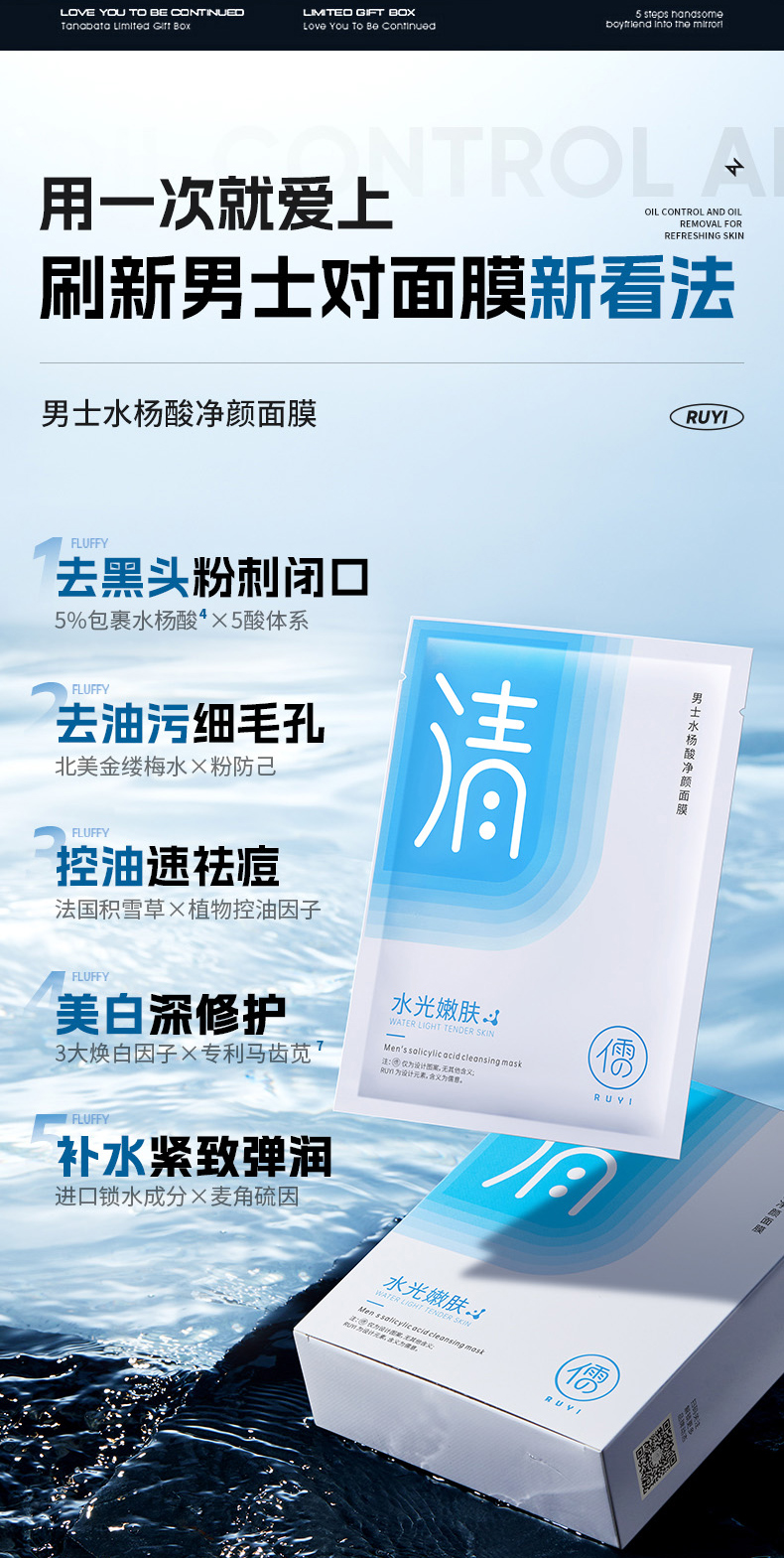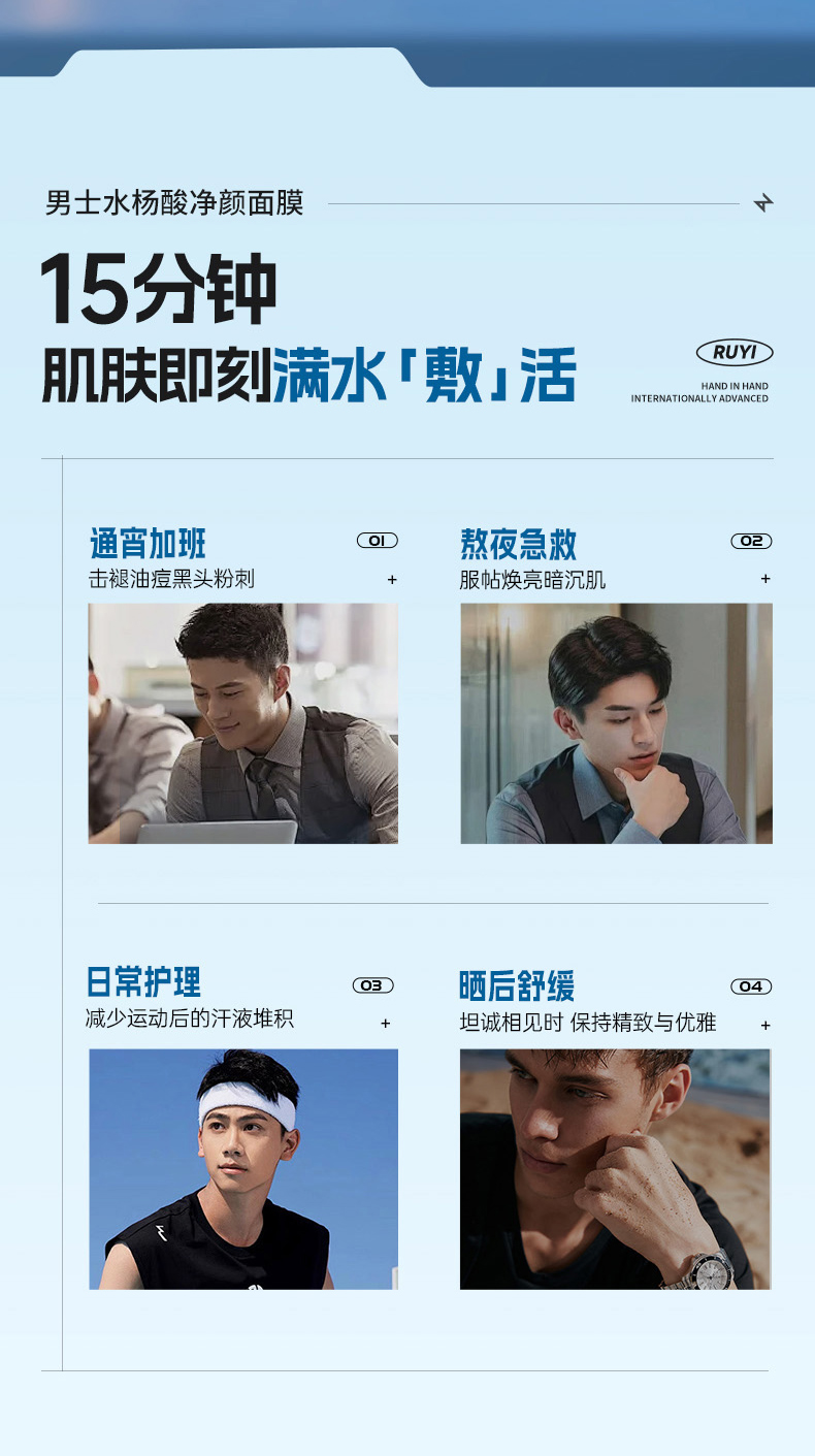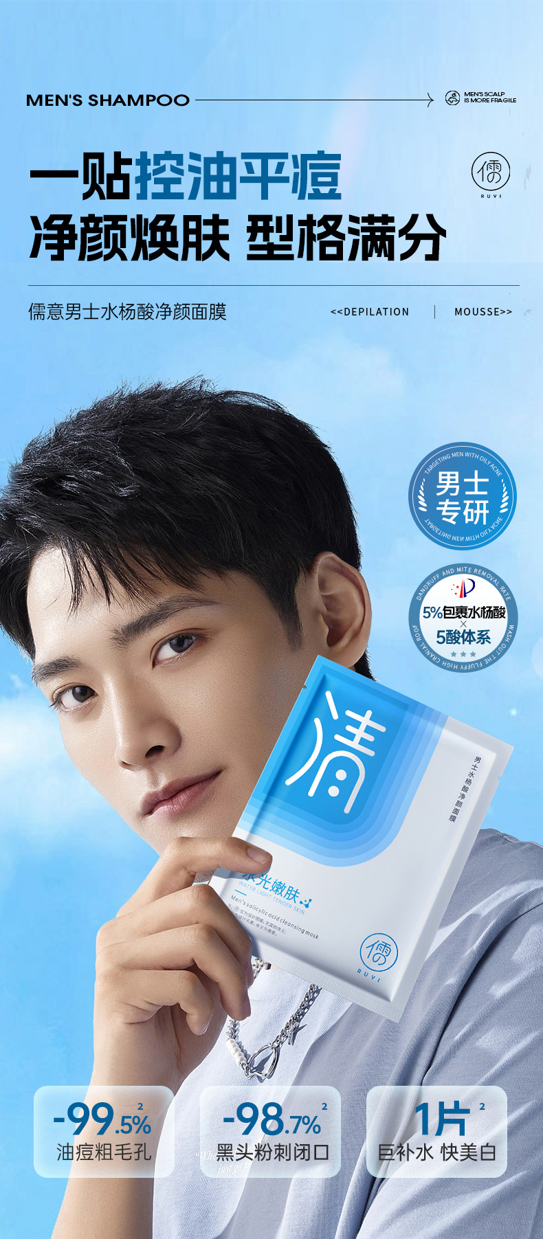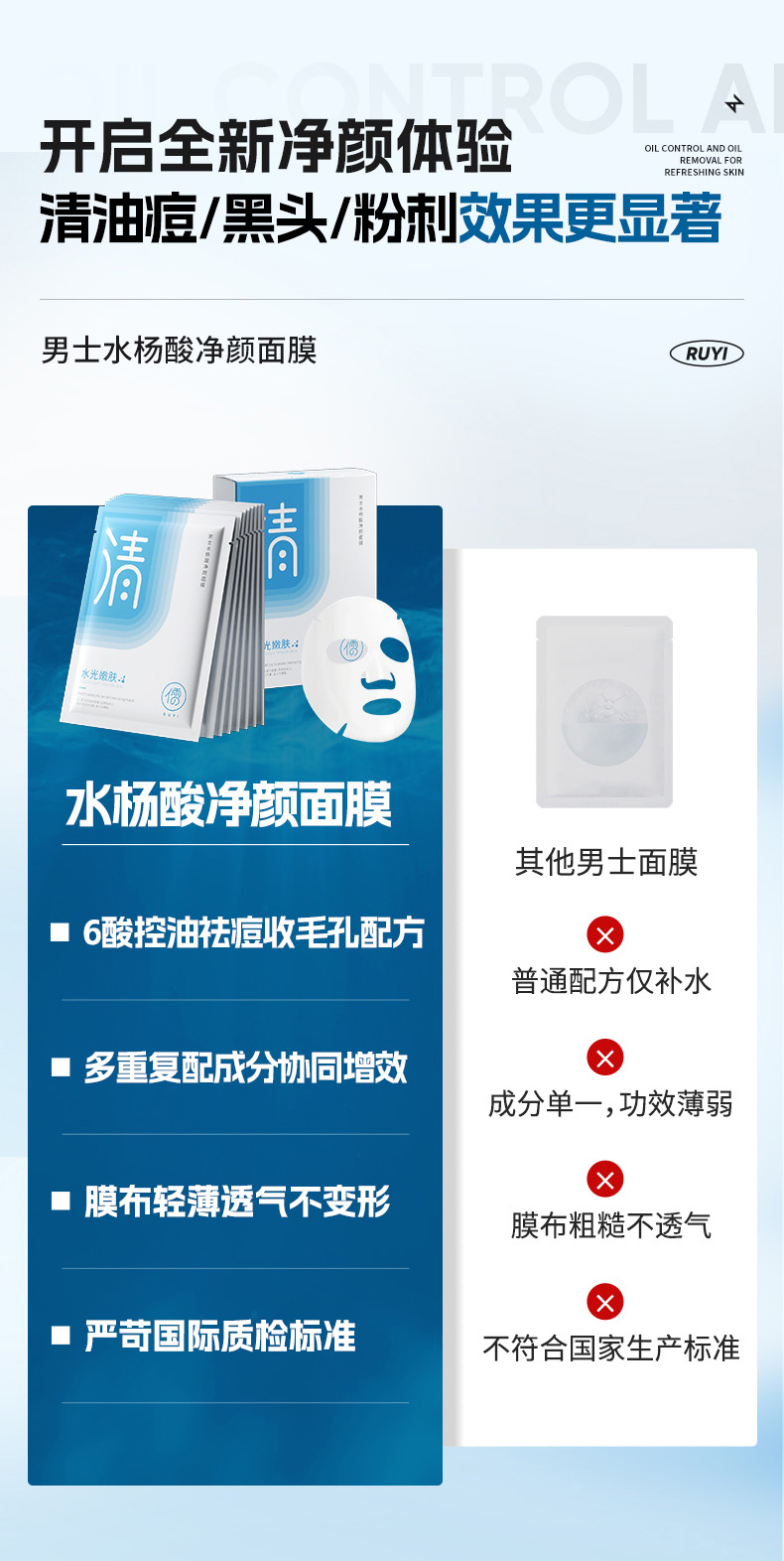 儒意男士水杨酸净颜面膜10片/盒 水杨酸控油祛痘面膜 淡化痘印收缩毛孔补水美白男士专用 |儒意官方商城
