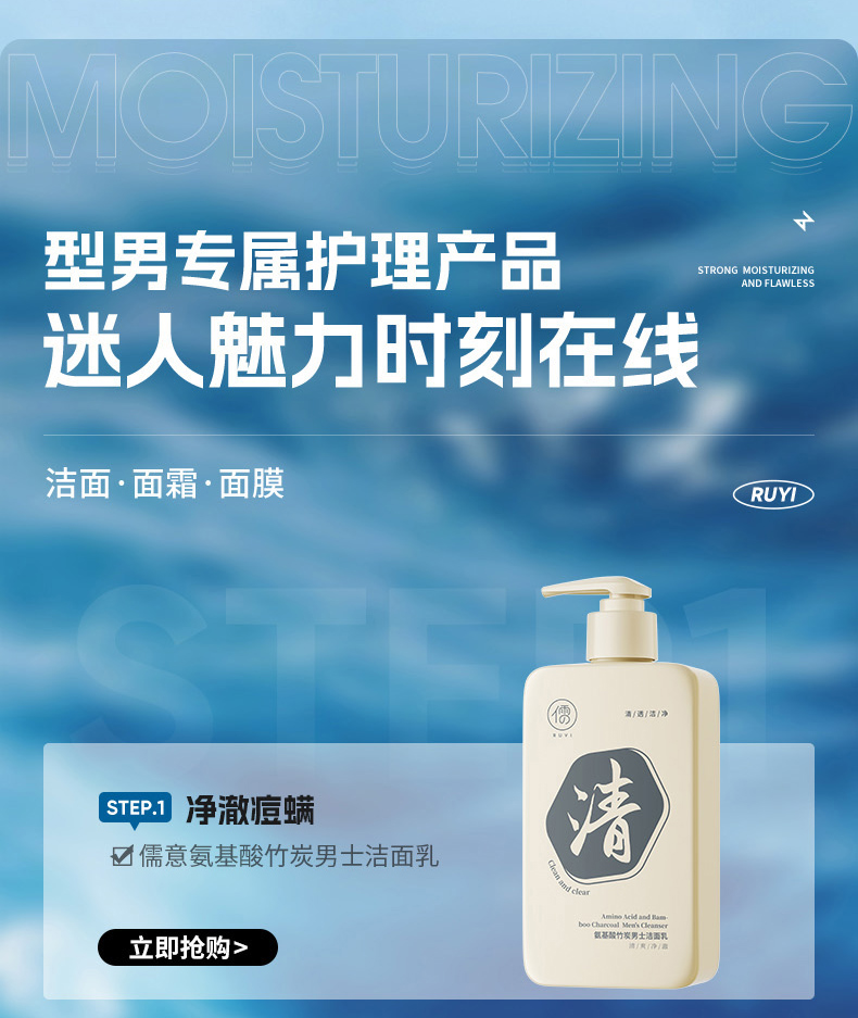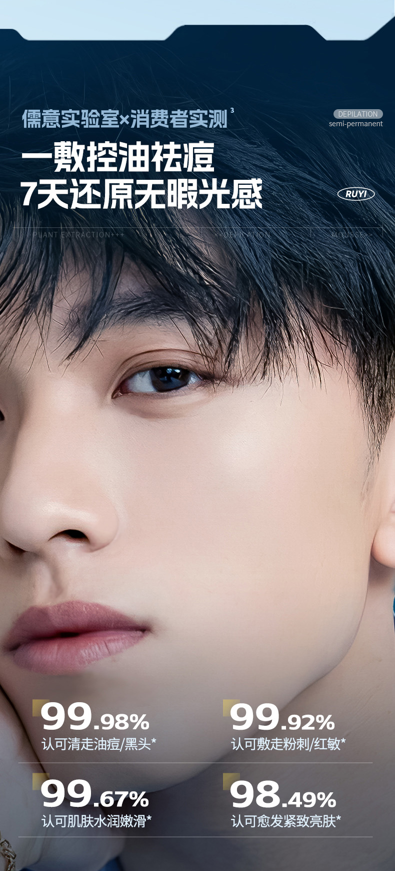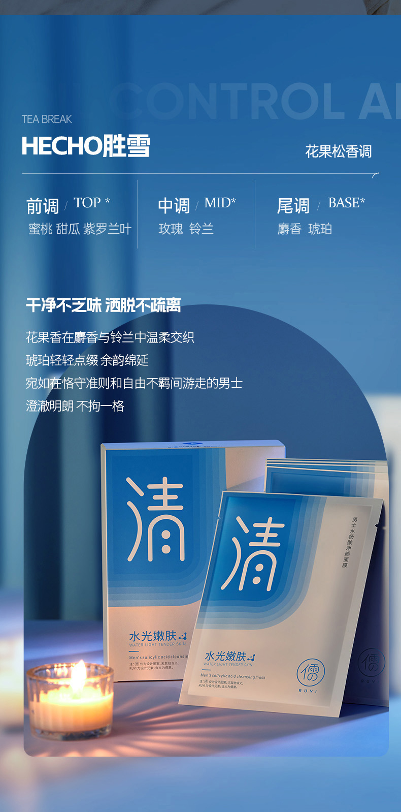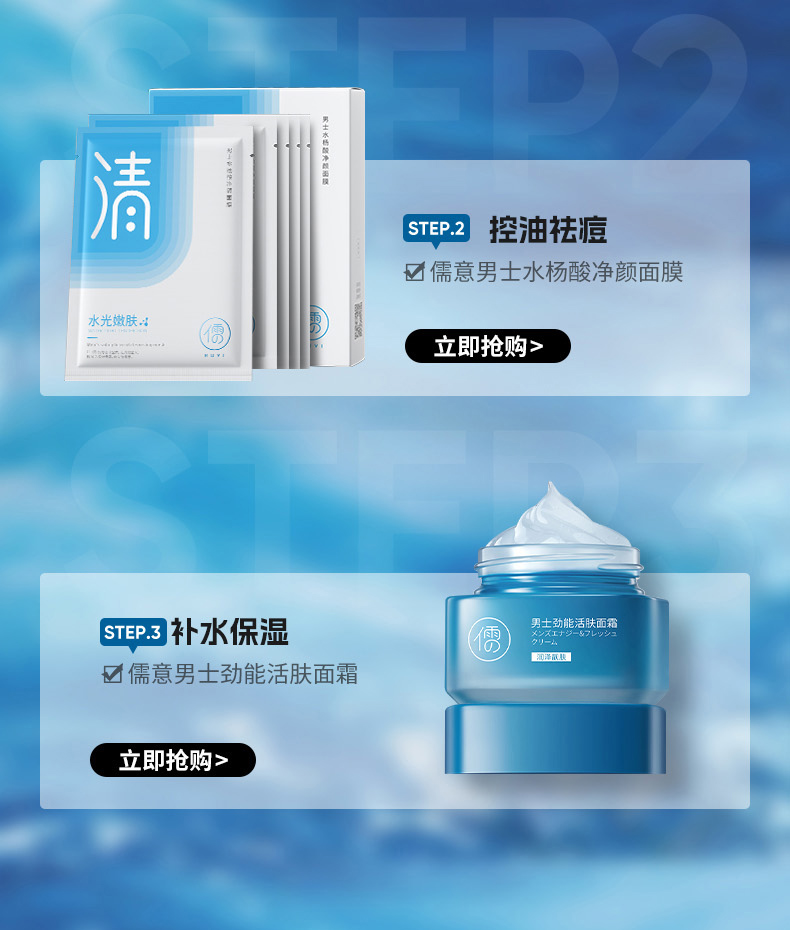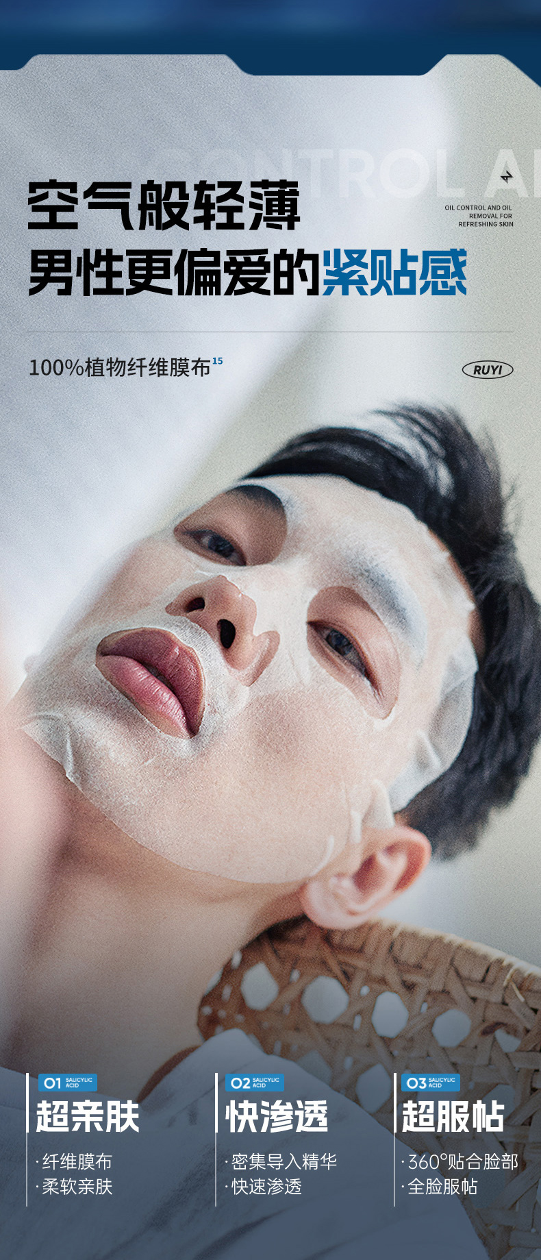 儒意男士水杨酸净颜面膜10片/盒 水杨酸控油祛痘面膜 淡化痘印收缩毛孔补水美白男士专用 |儒意官方商城