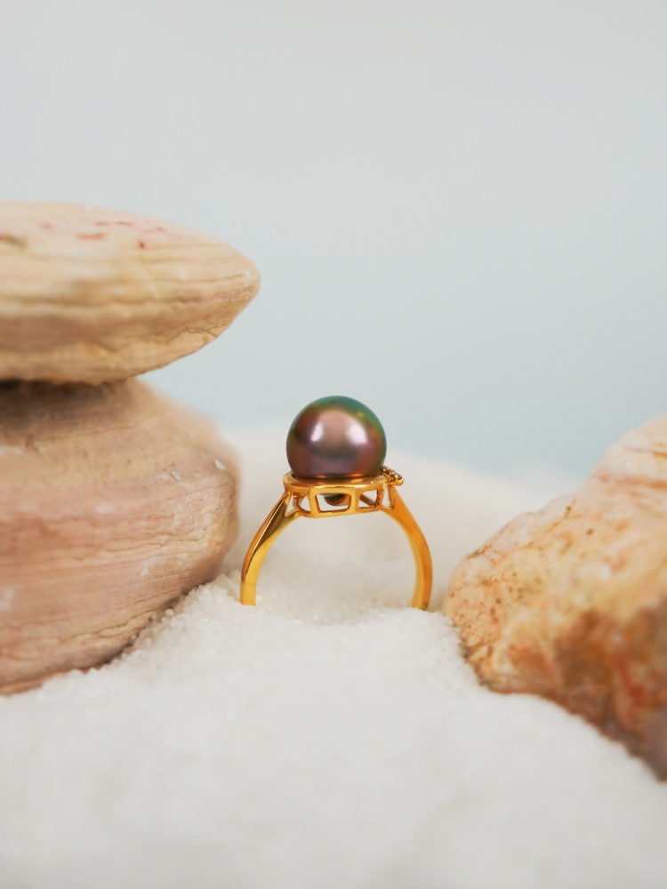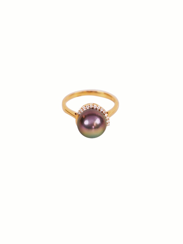 【现货】18K金黑珍珠戒指镶钻简约气质食指戒【尺寸9.7mm】 【一物一证书】