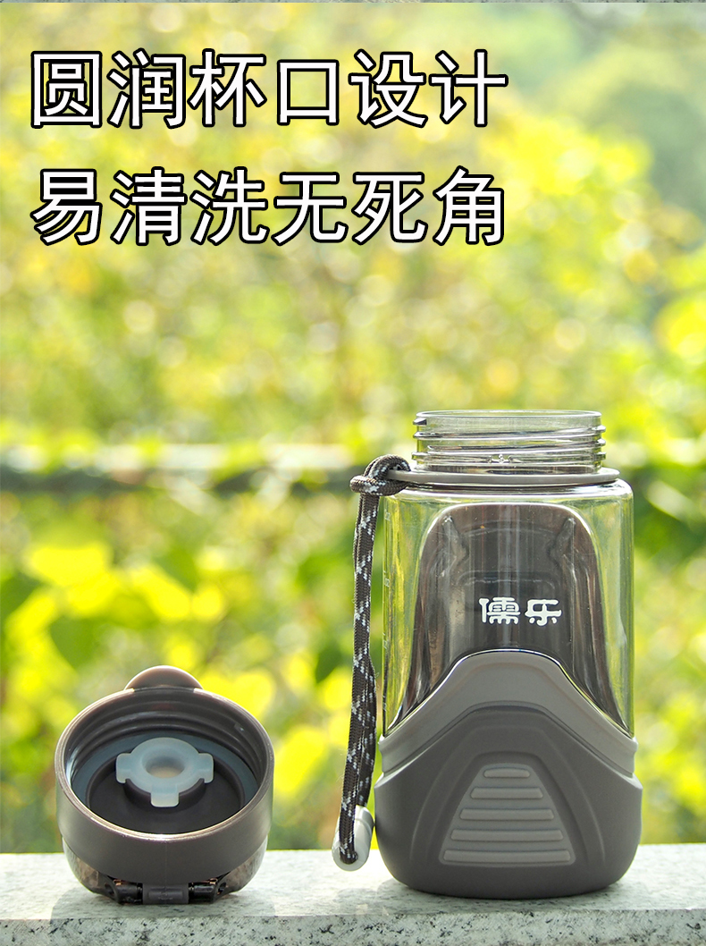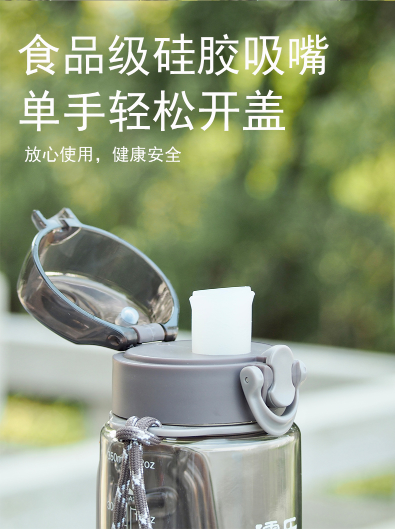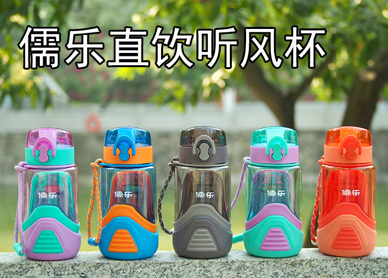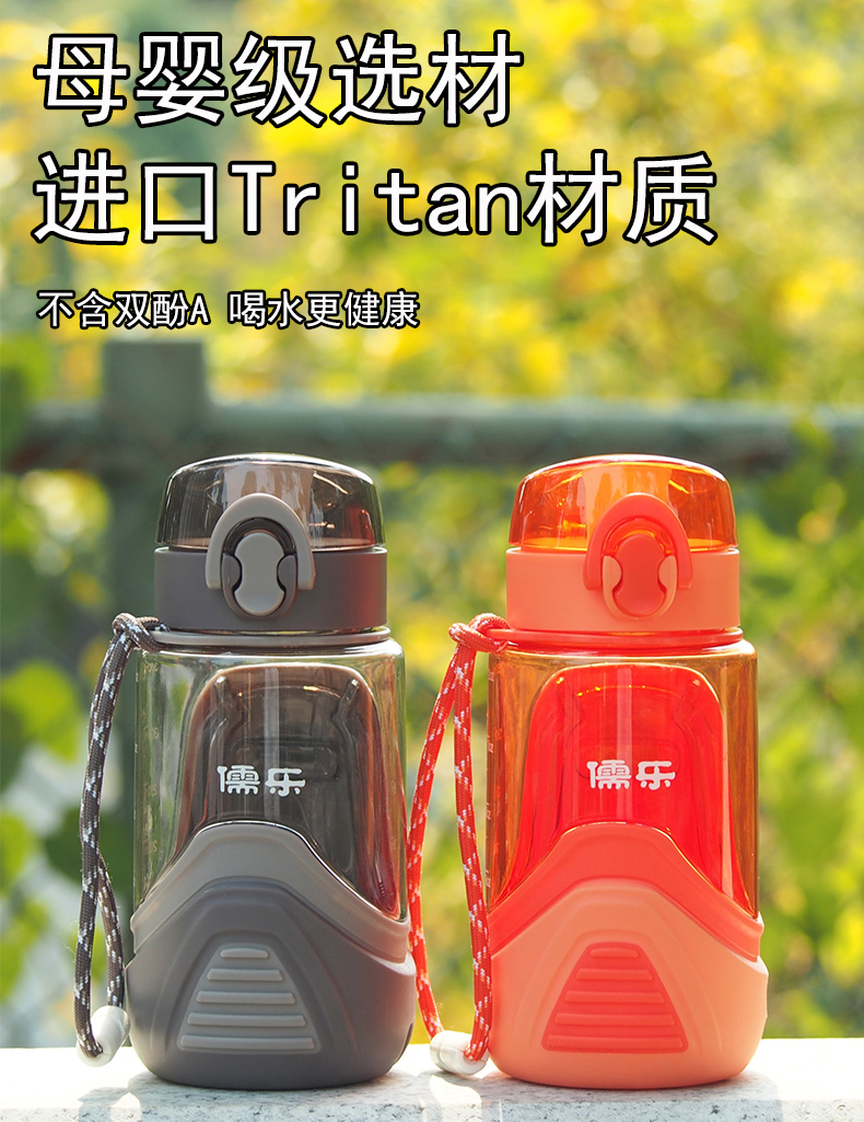 儒乐 弹跳盖直饮听风杯、美国伊士曼Tritan进口材料、按压式一键弹开、饮水口是小圆口的设计,不侧漏不呛喉 轻松开合不费力