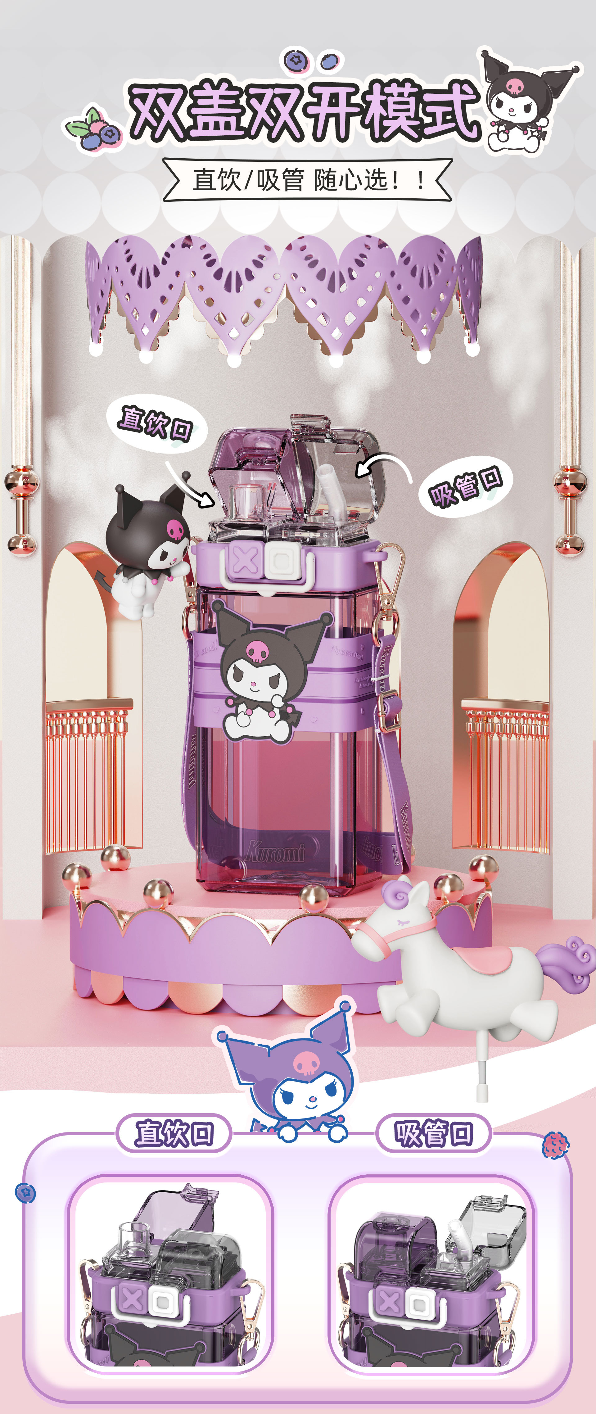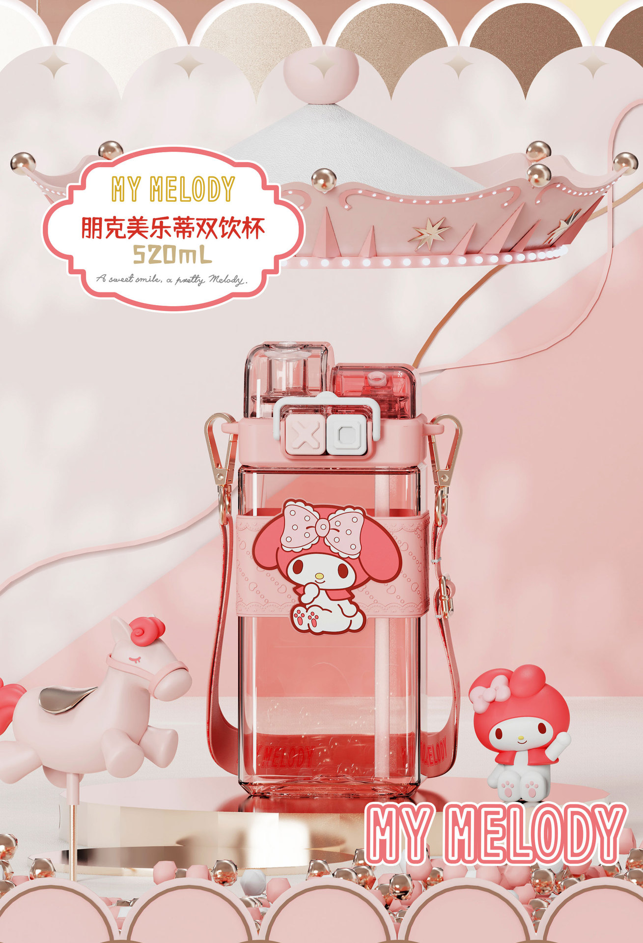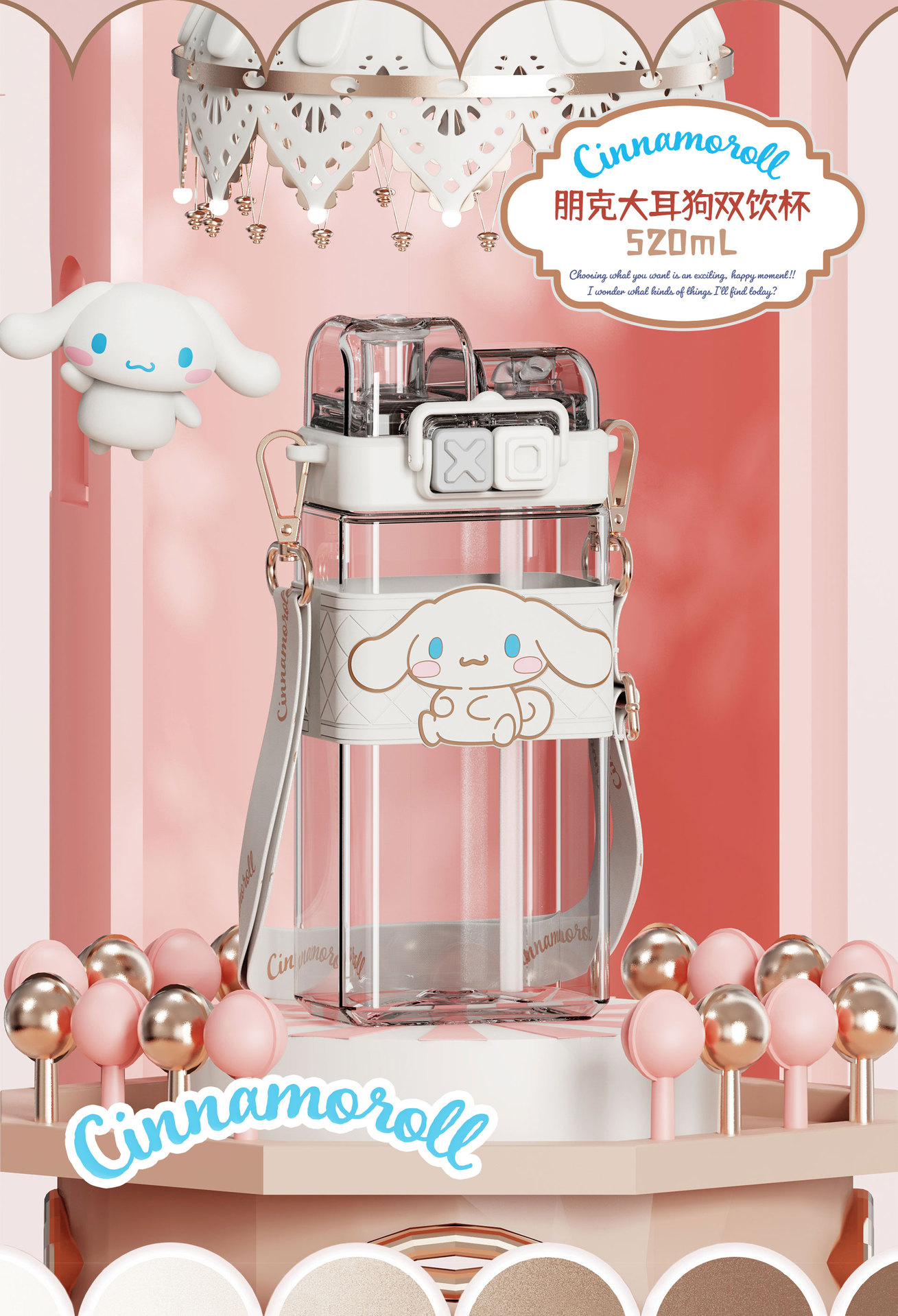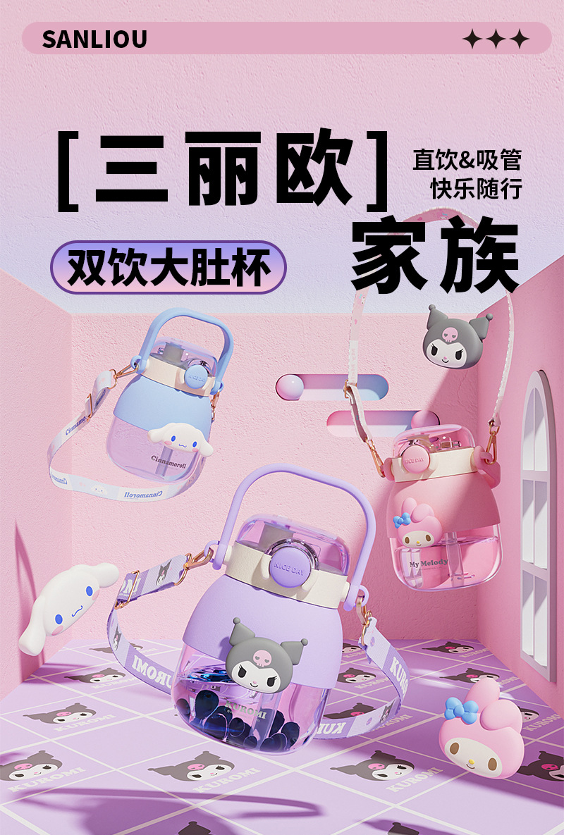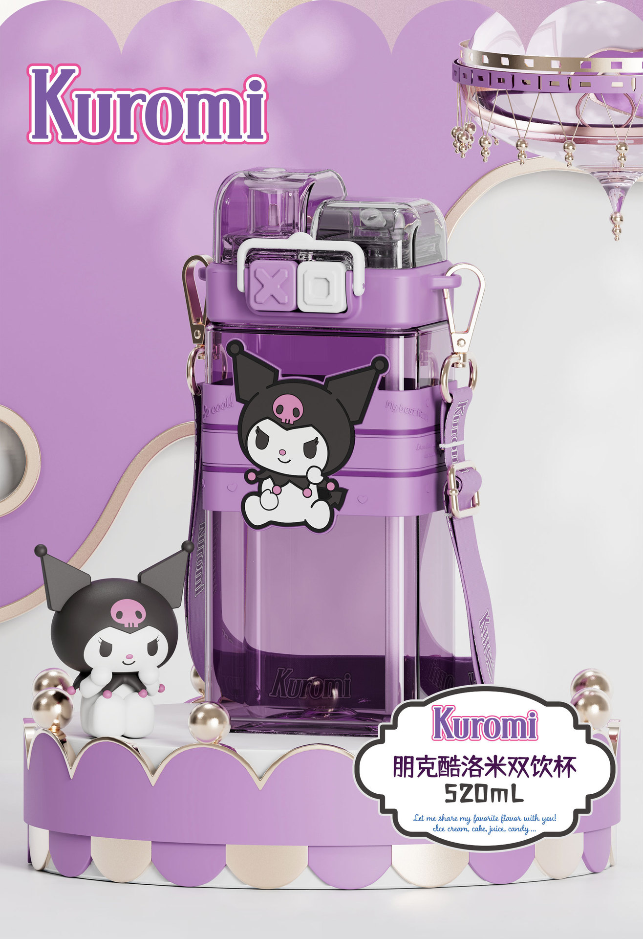 三丽鸥库洛米双饮吸管杯女生高颜值卡通塑料水杯儿童学生上学水壶