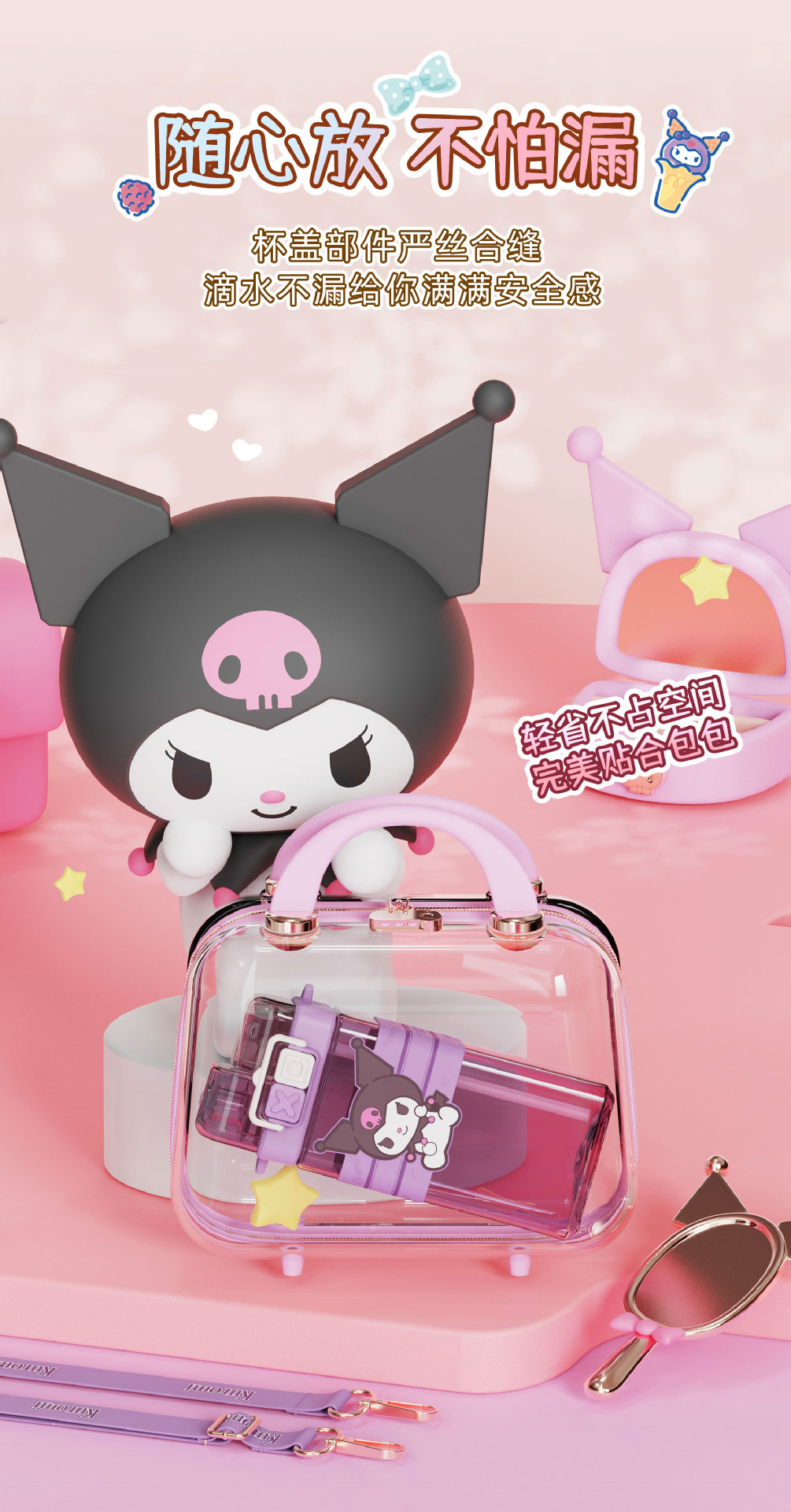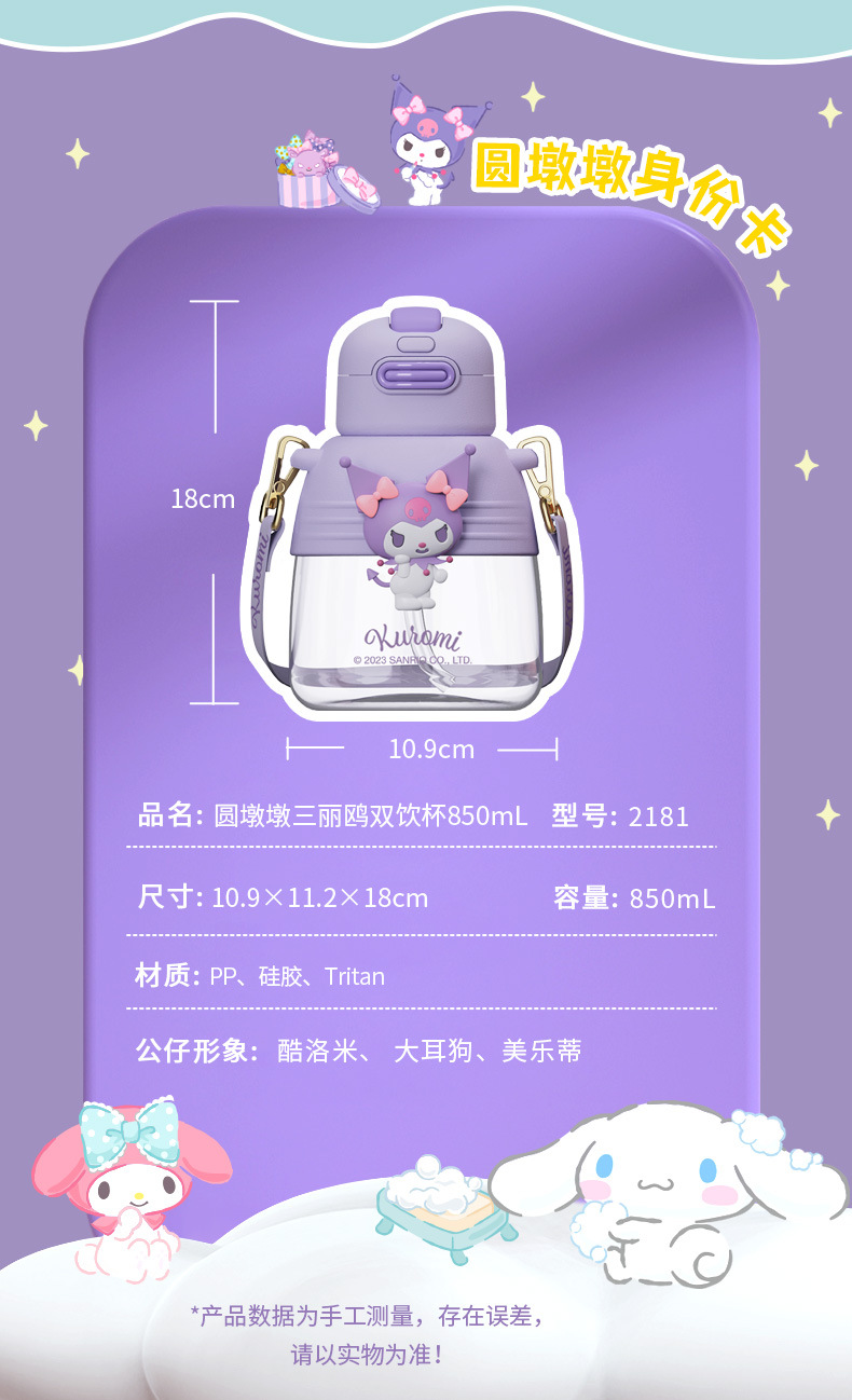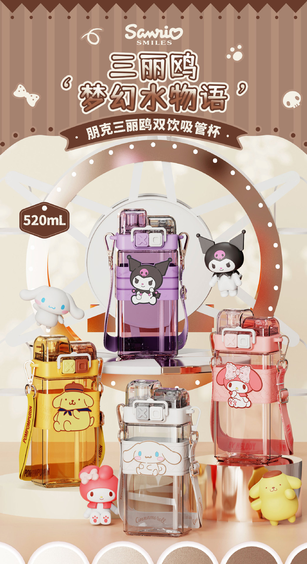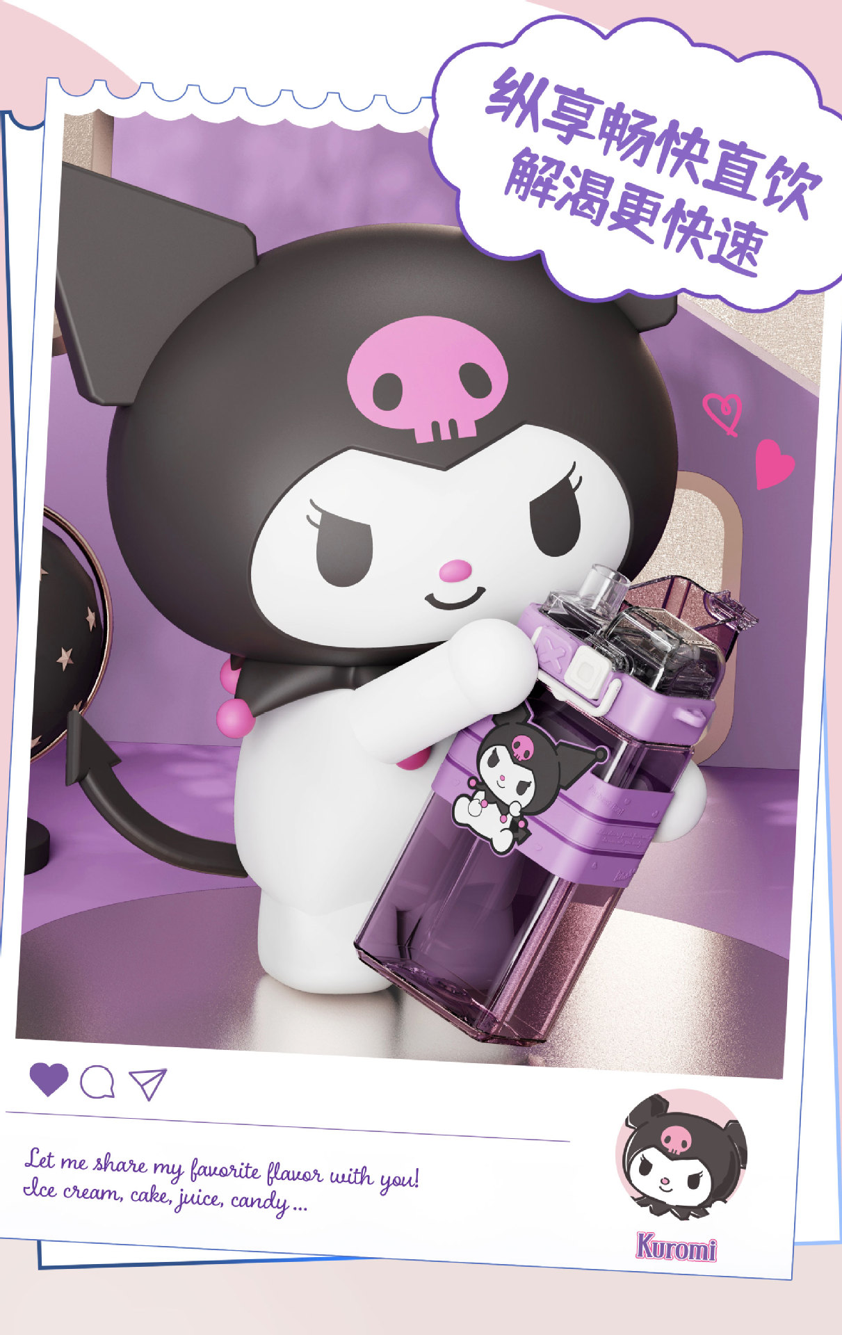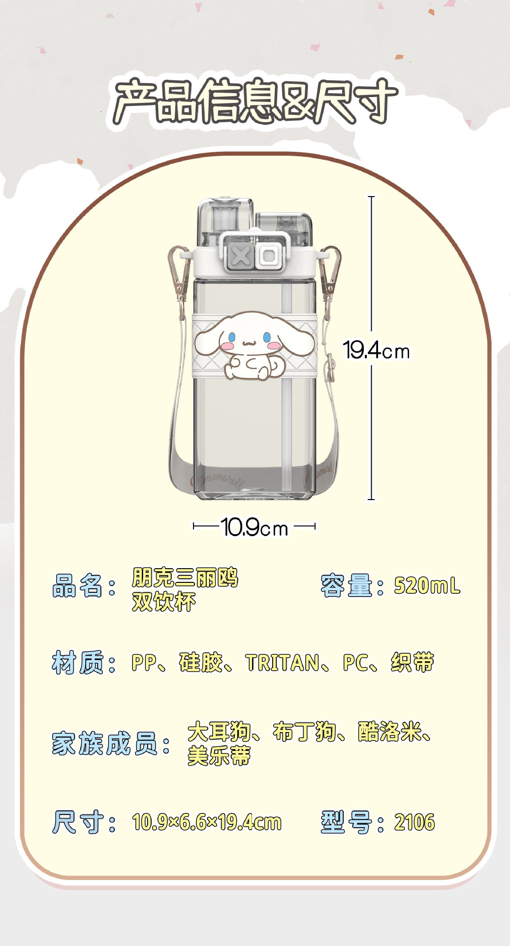 三丽鸥库洛米双饮吸管杯女生高颜值卡通塑料水杯儿童学生上学水壶
