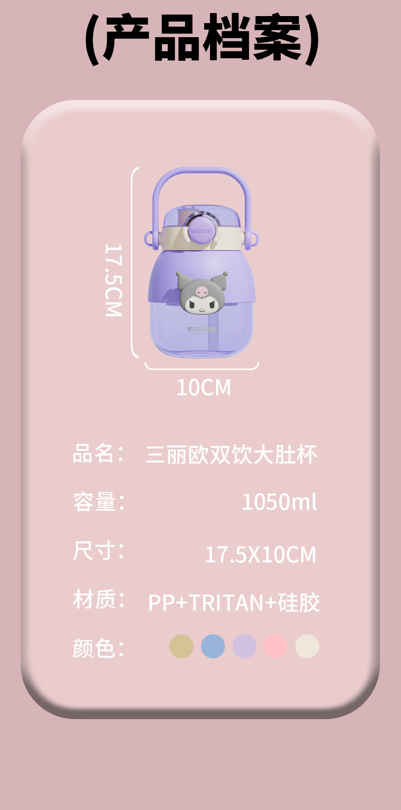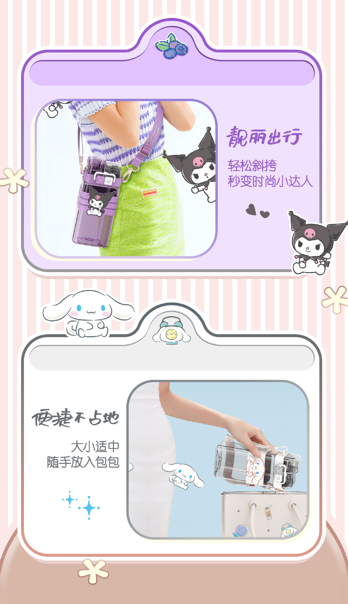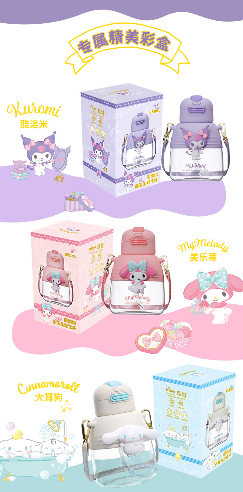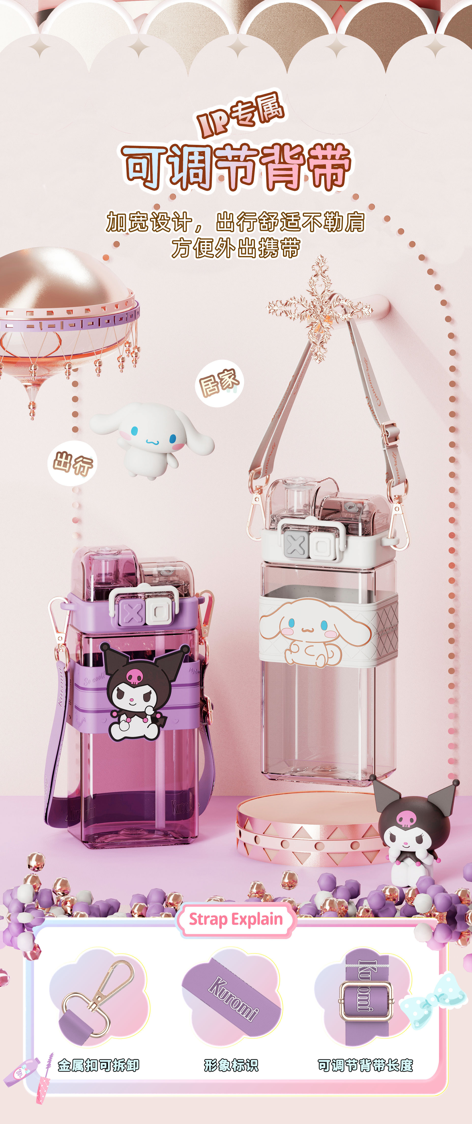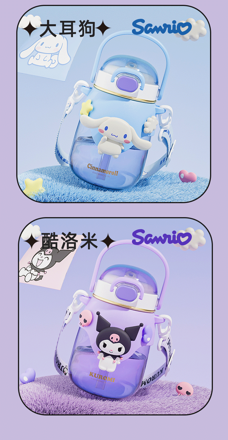 三丽鸥库洛米双饮吸管杯女生高颜值卡通塑料水杯儿童学生上学水壶