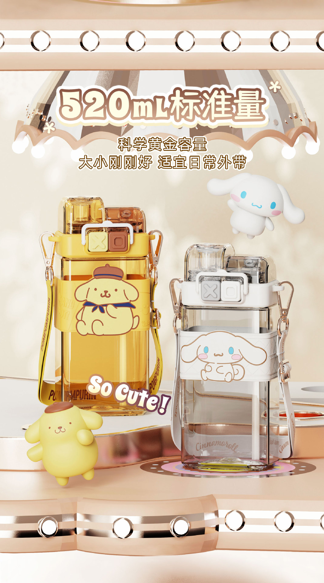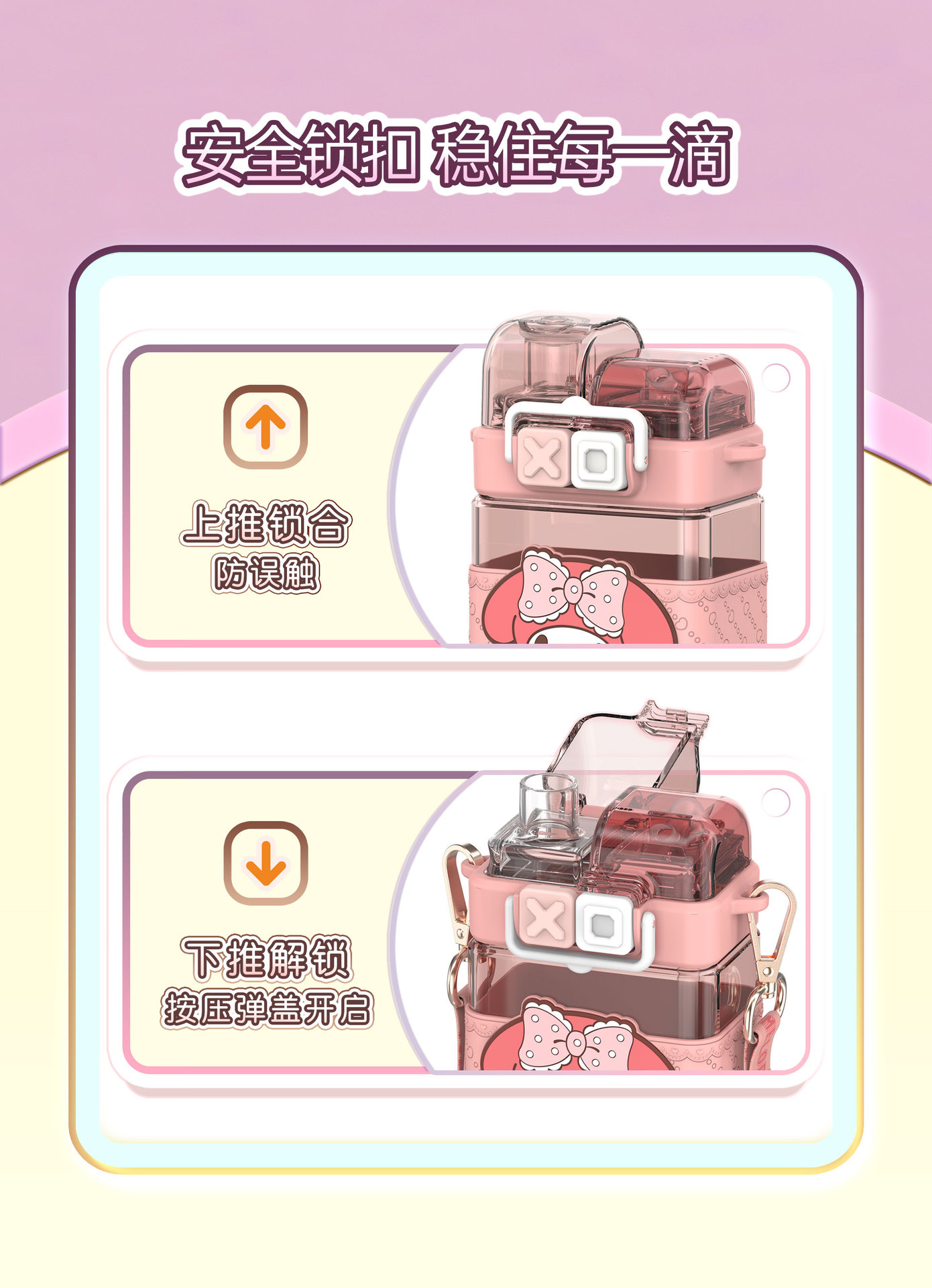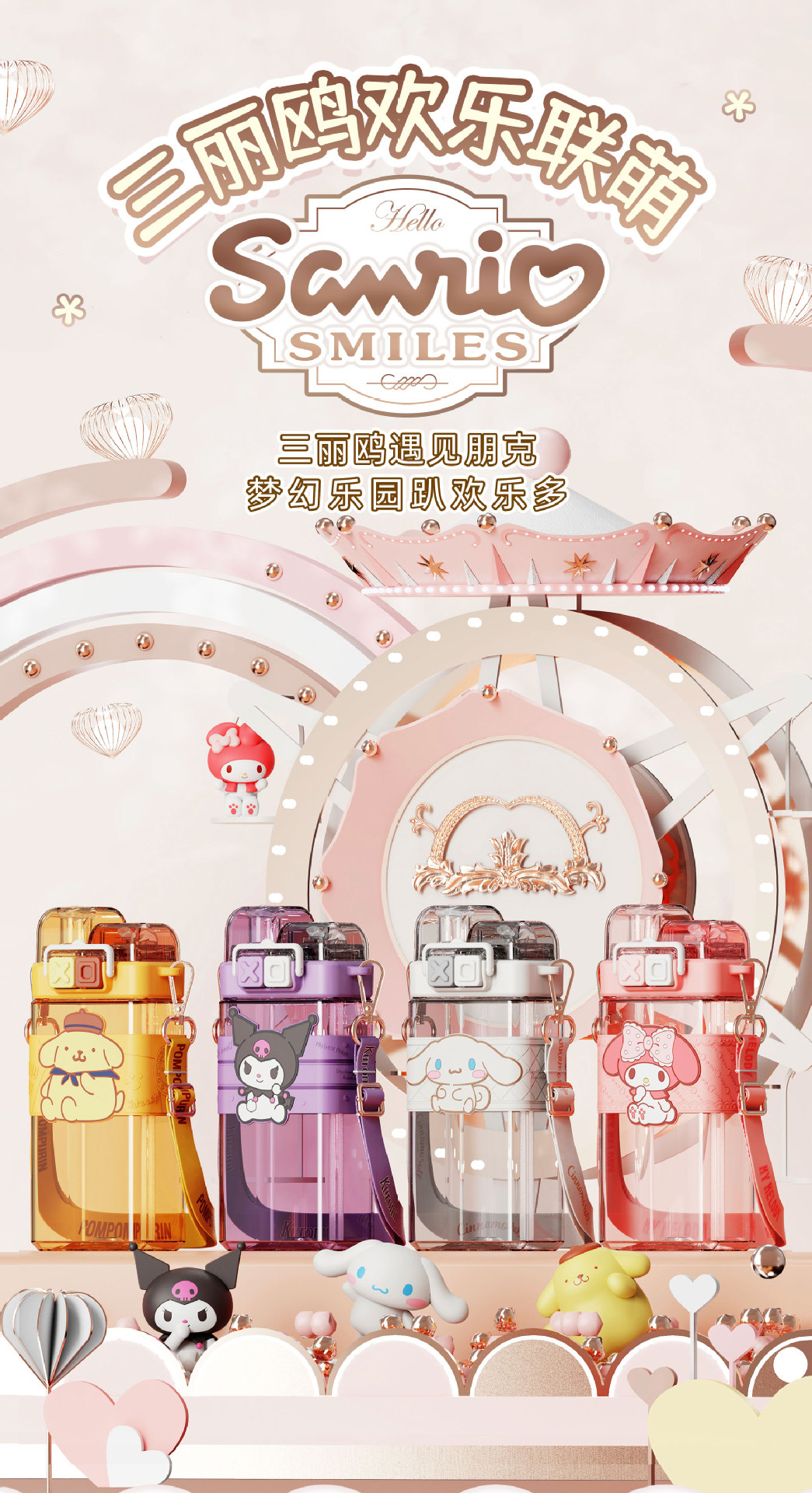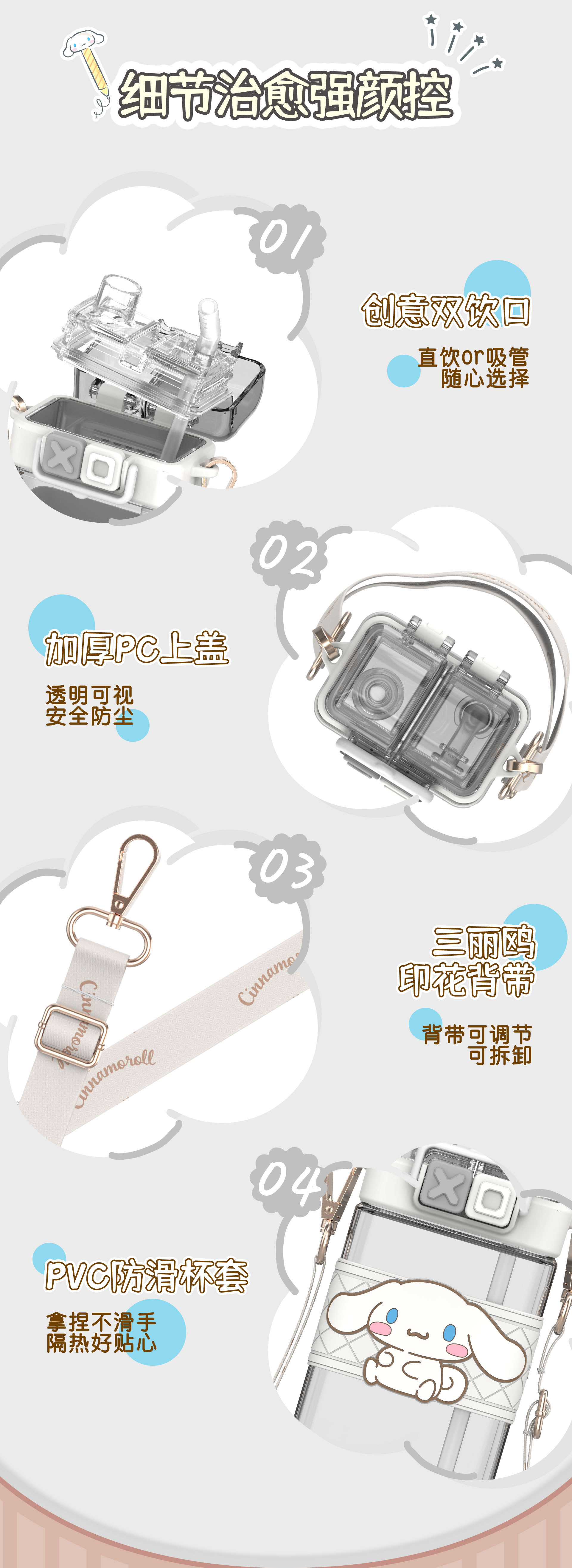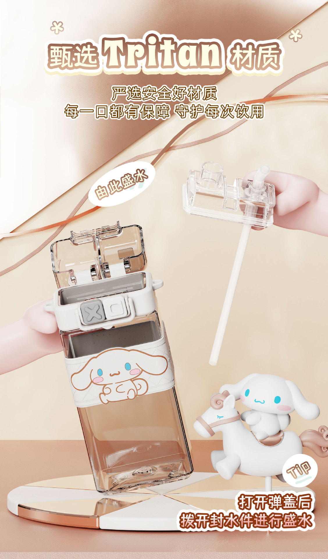 三丽鸥库洛米双饮吸管杯女生高颜值卡通塑料水杯儿童学生上学水壶