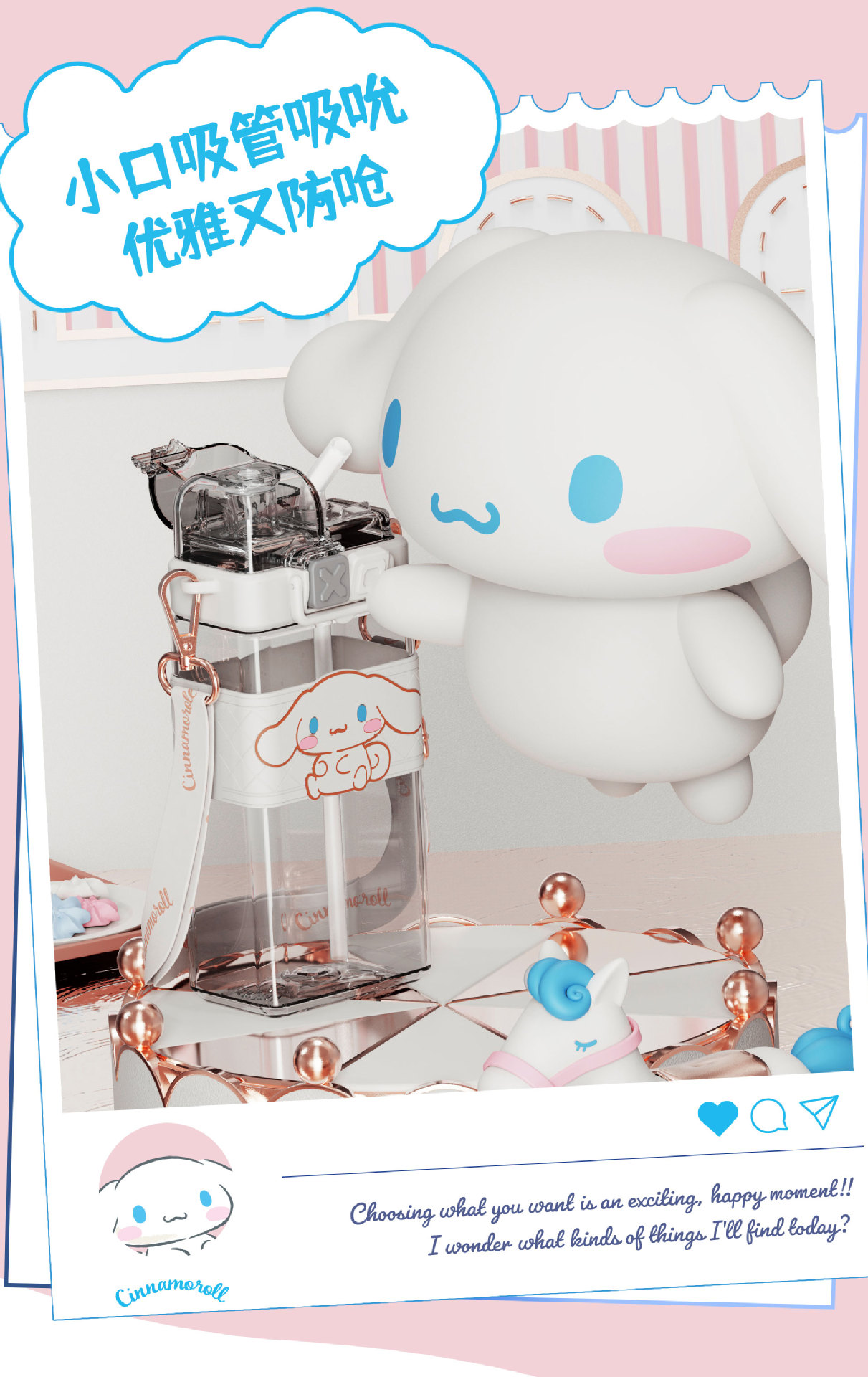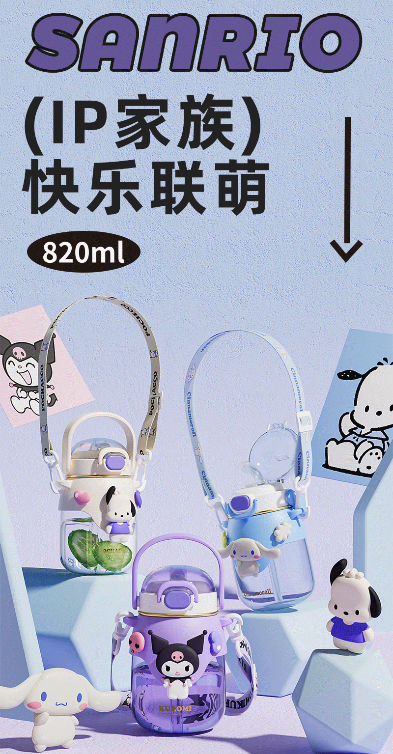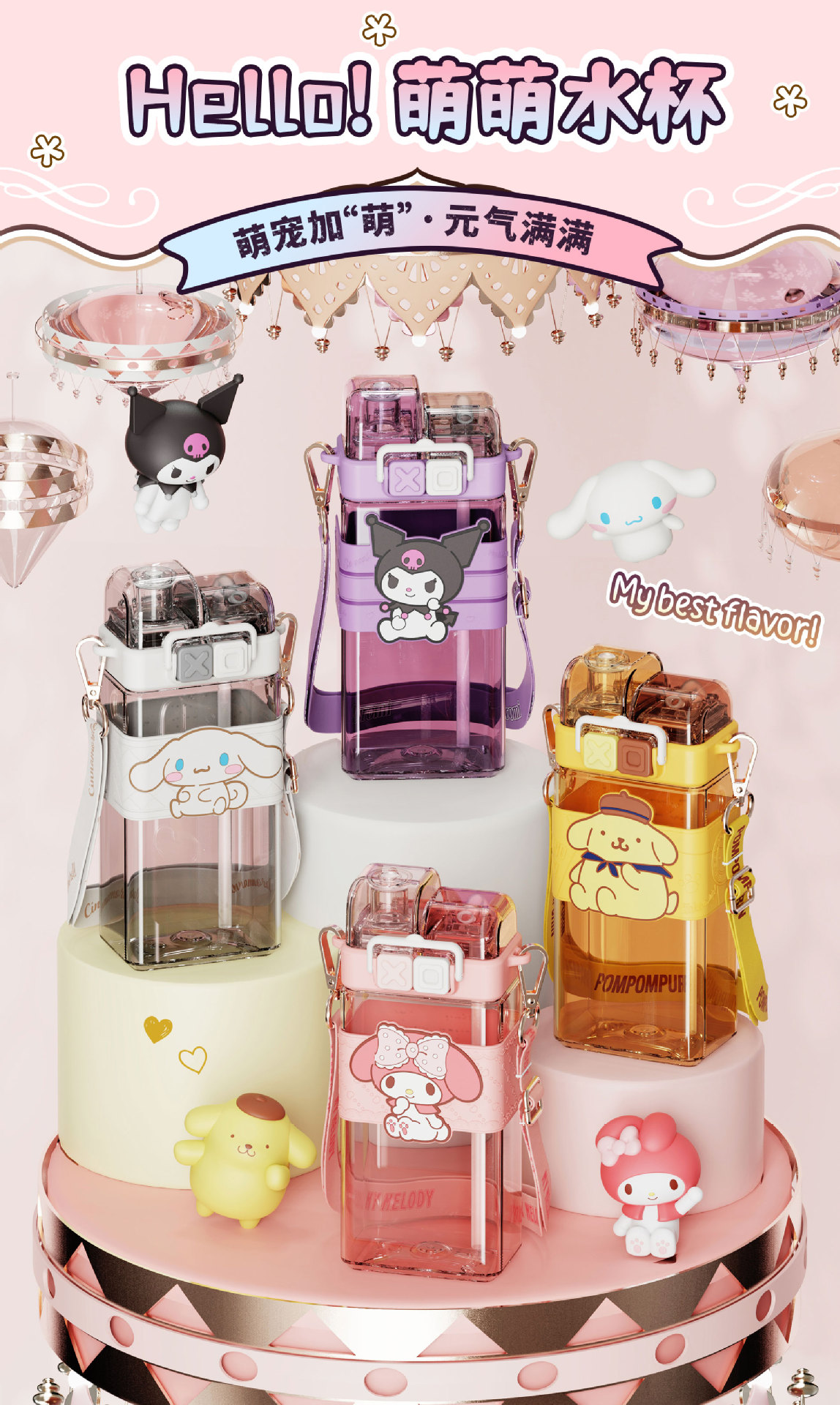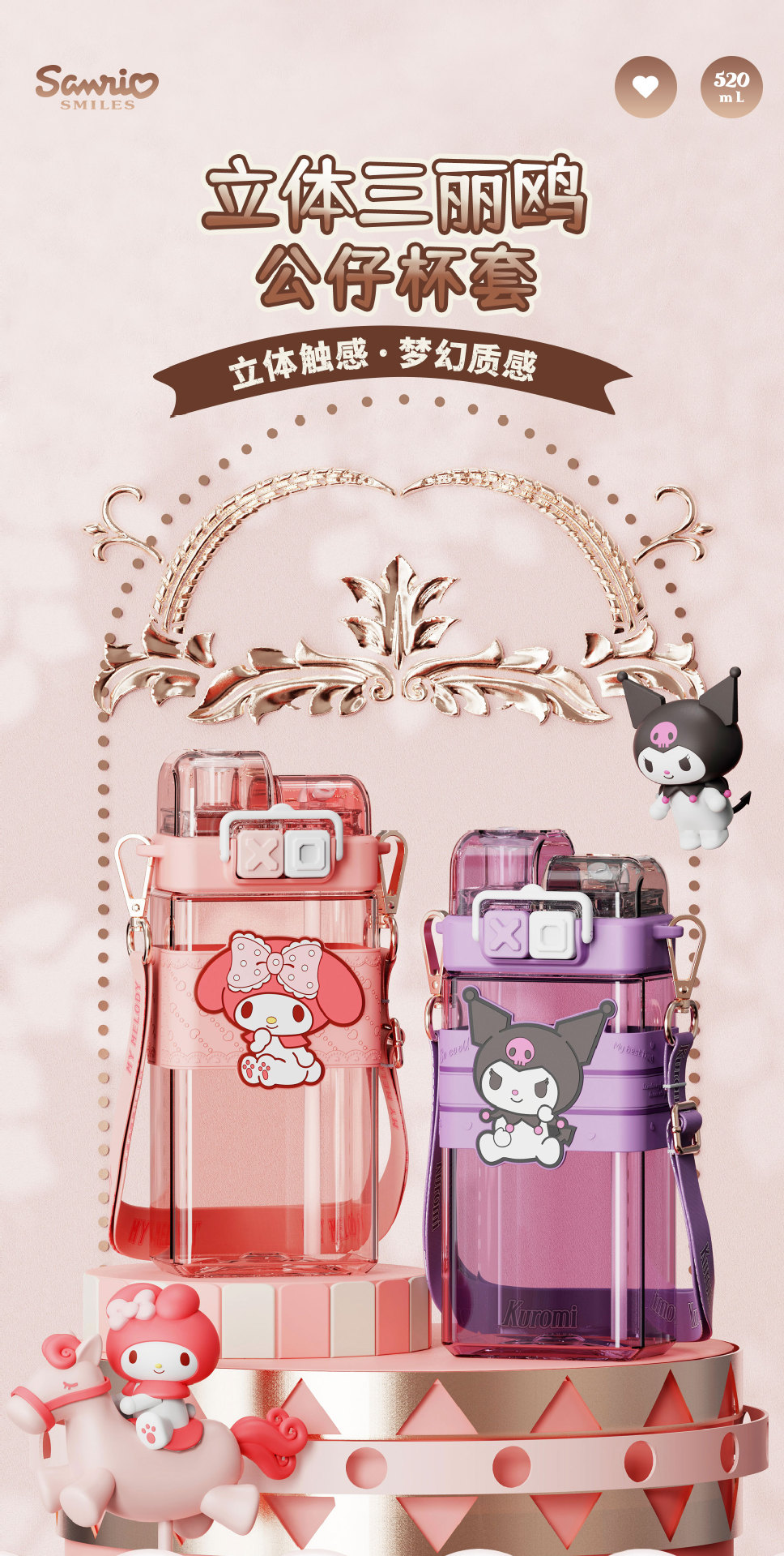 三丽鸥库洛米双饮吸管杯女生高颜值卡通塑料水杯儿童学生上学水壶