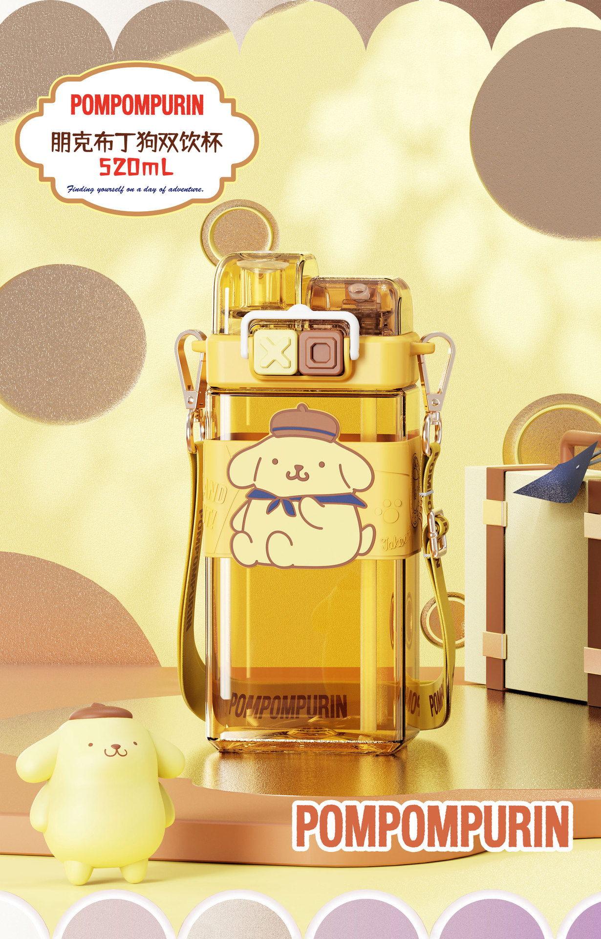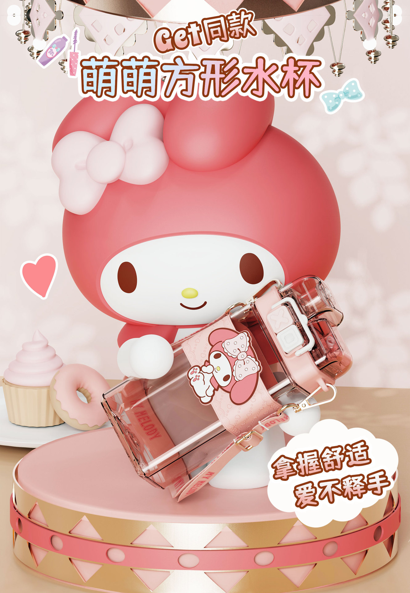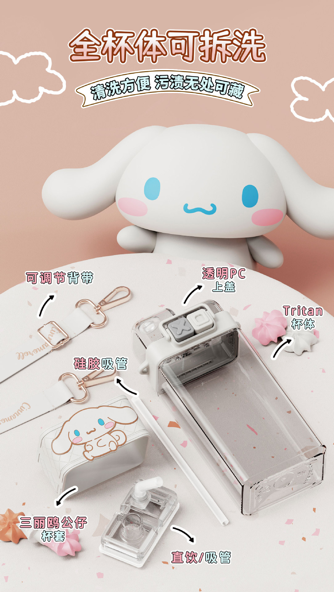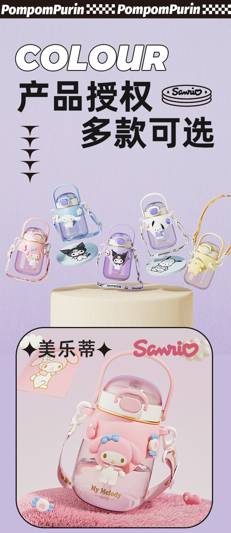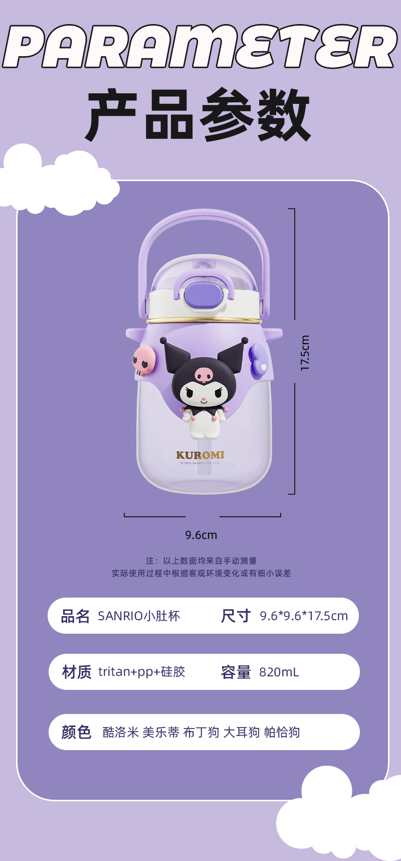 三丽鸥库洛米双饮吸管杯女生高颜值卡通塑料水杯儿童学生上学水壶