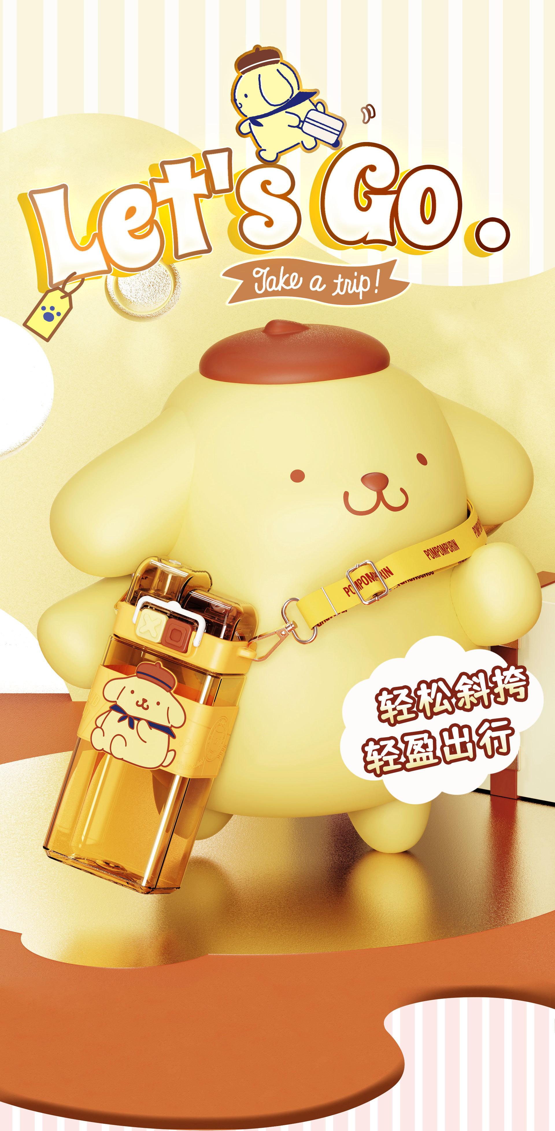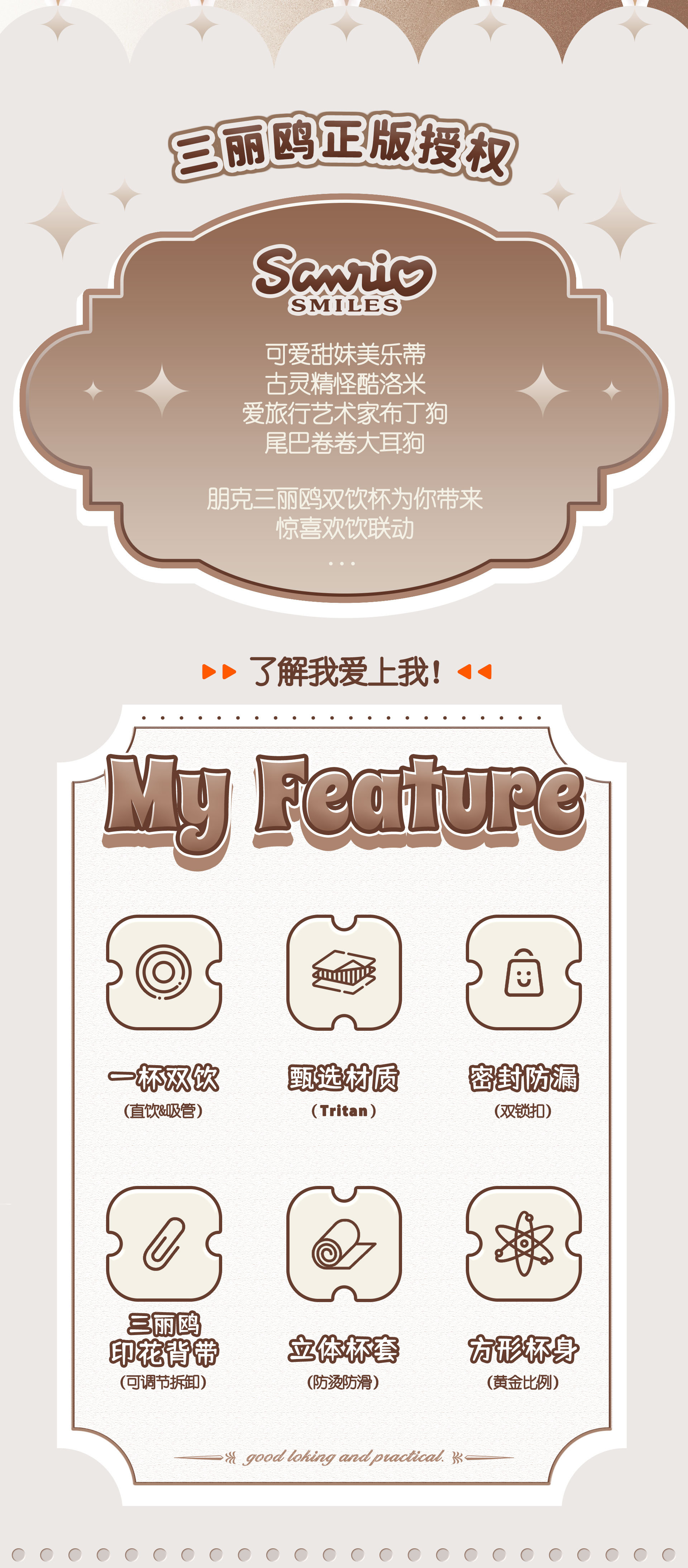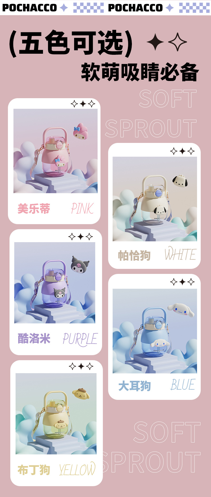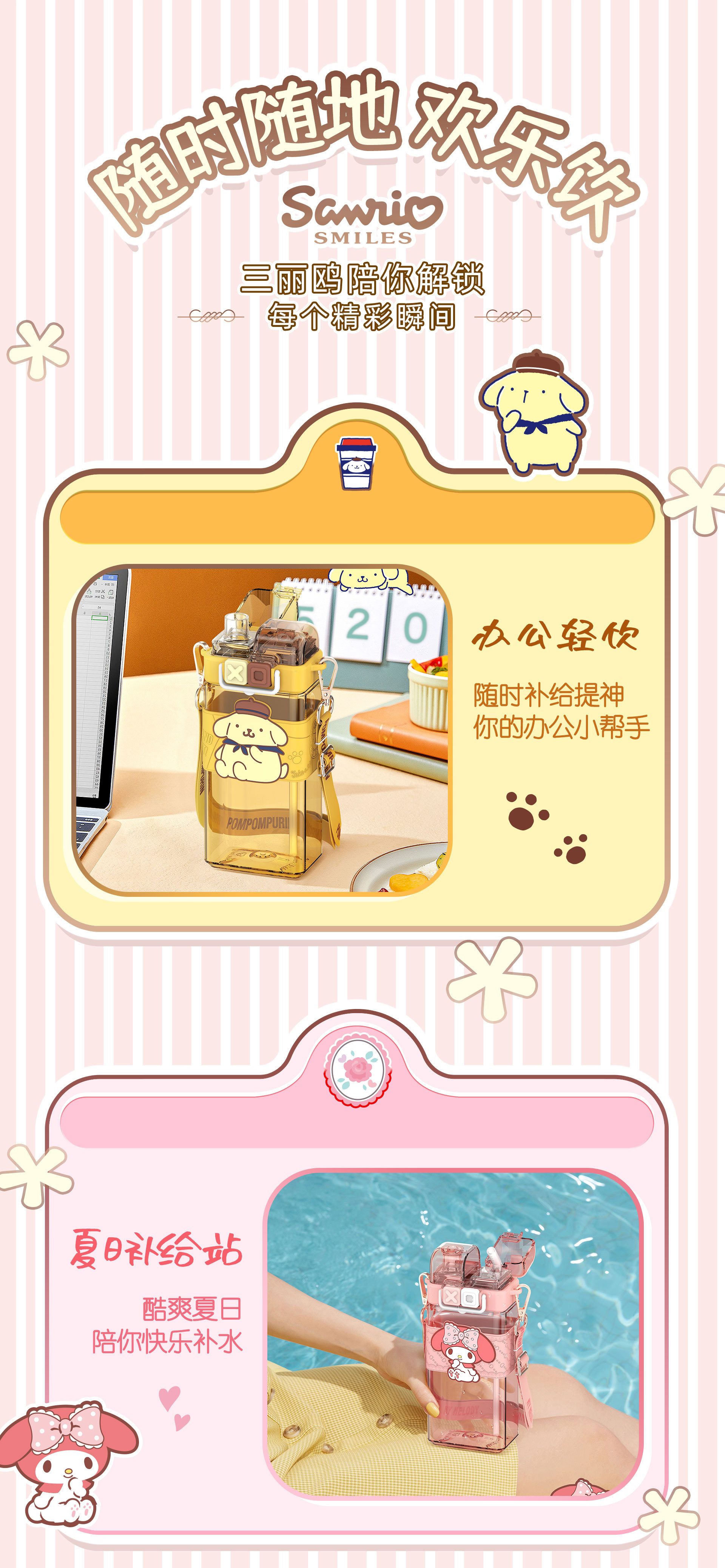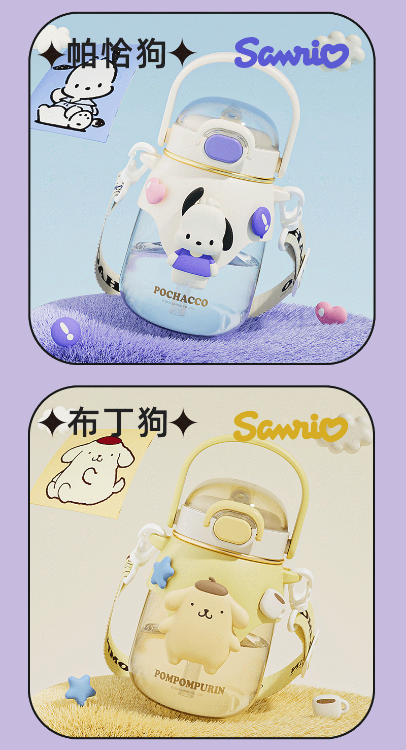 三丽鸥库洛米双饮吸管杯女生高颜值卡通塑料水杯儿童学生上学水壶