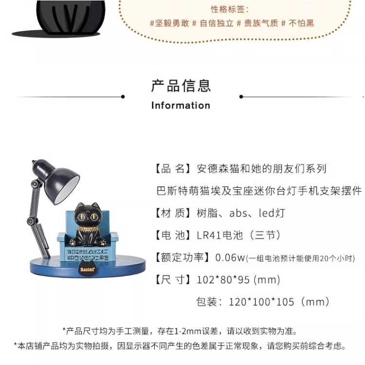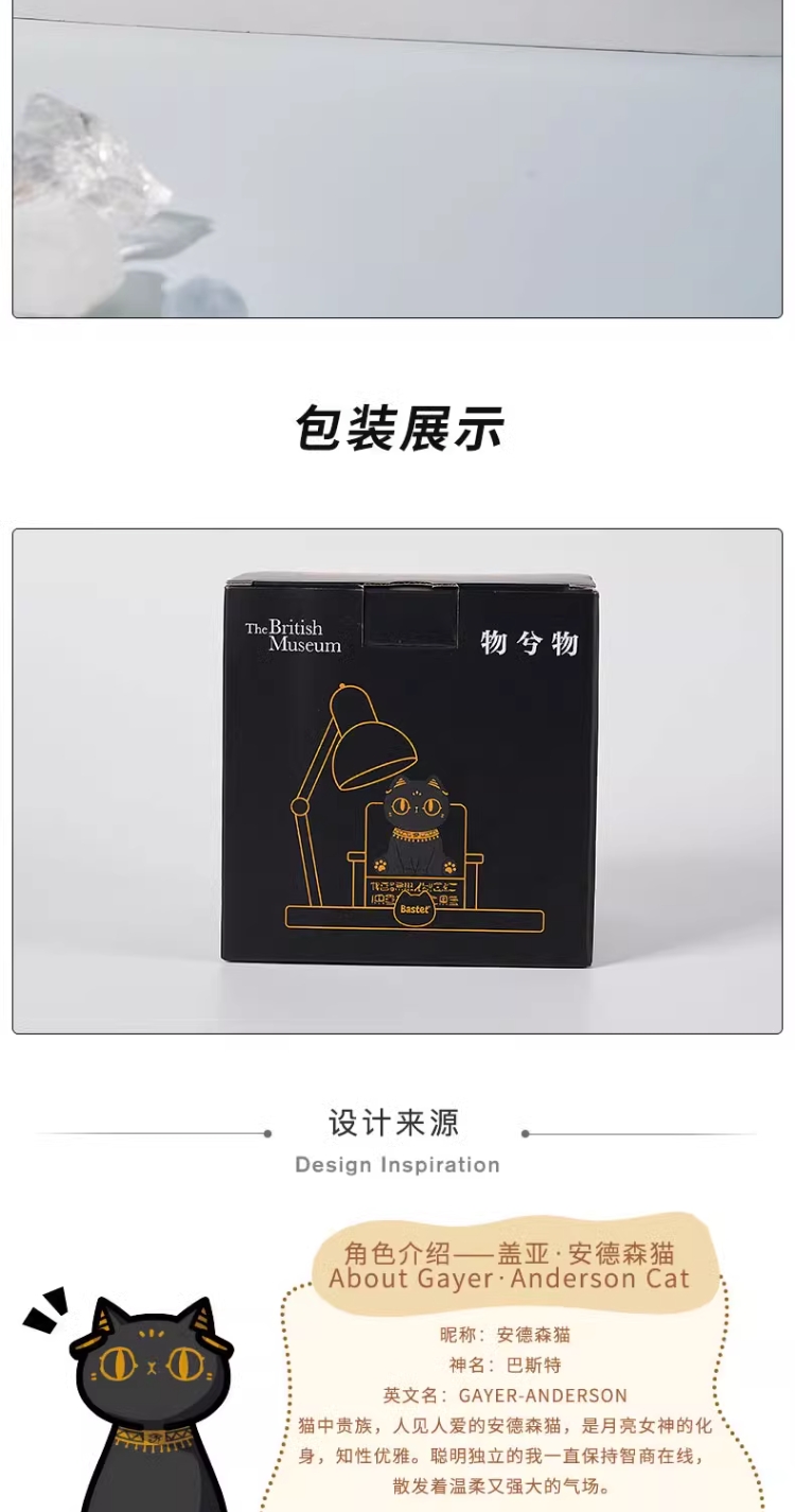 大英博物馆盖亚·安德森猫系列 巴斯特萌猫宝座迷你台灯手机支架摆件