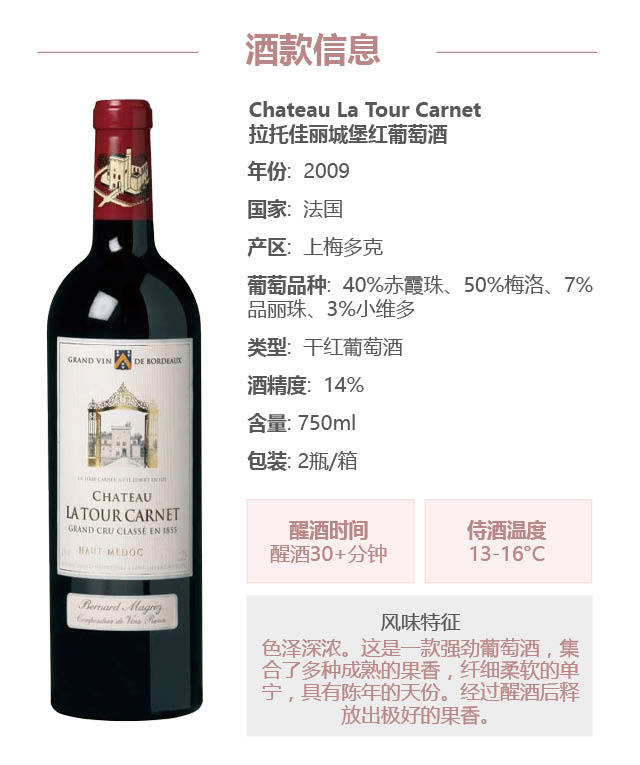 拉托佳丽城堡红葡萄酒 Chateau de la Tour Carnet 750ml