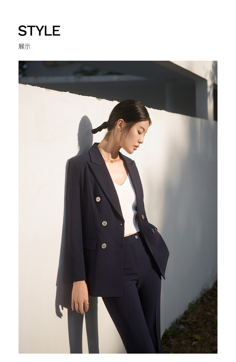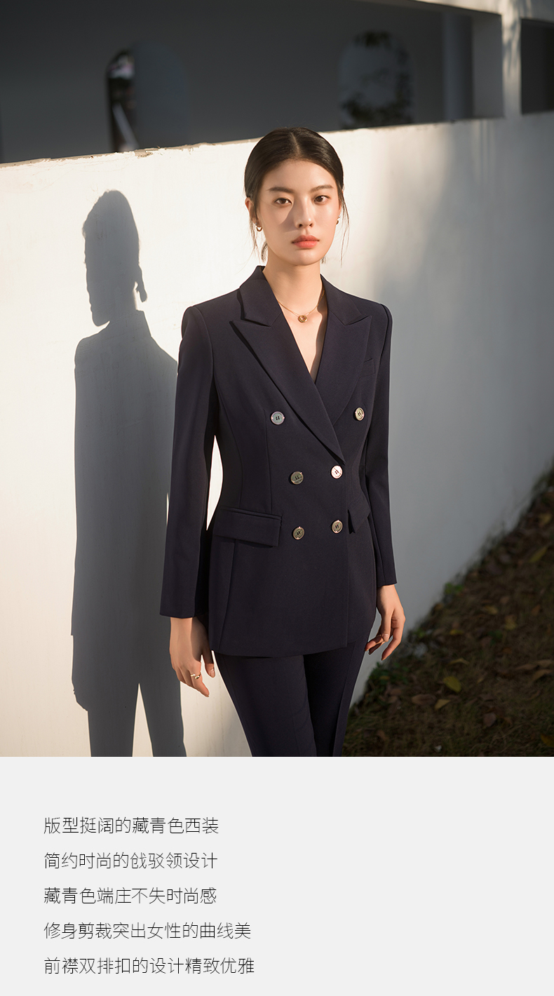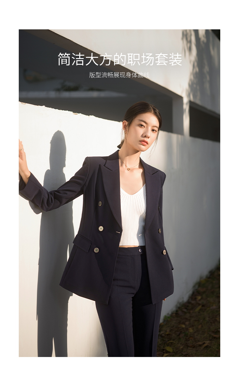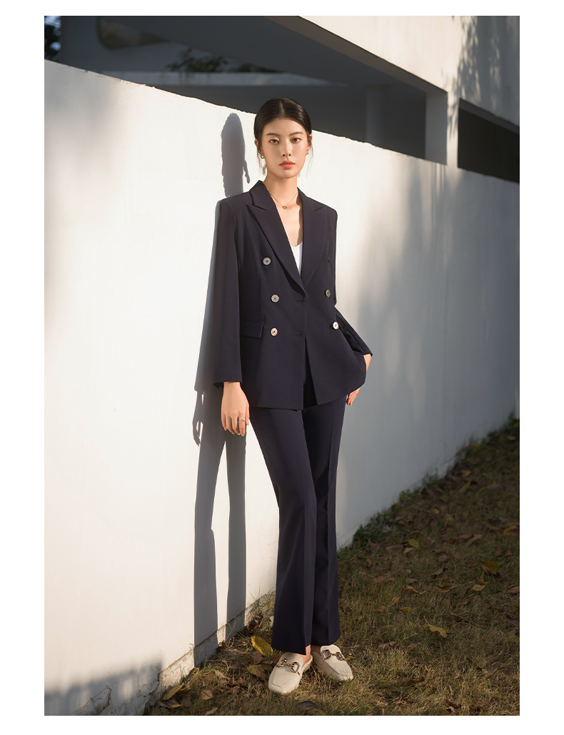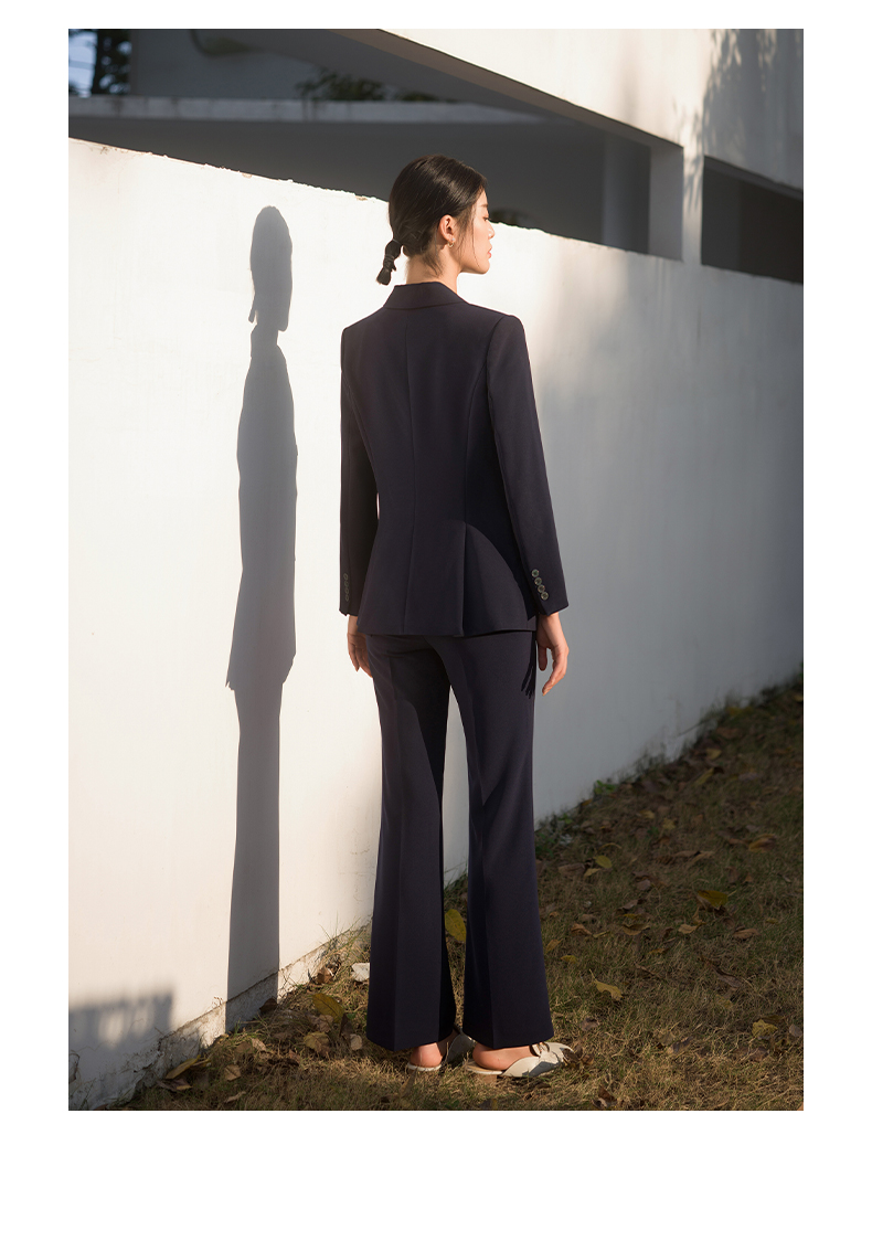 IWY/春季新款藏青色西装套装修身微喇裤职场商务干练修身高级西服C13102+P31356