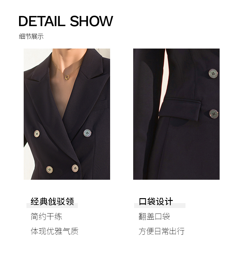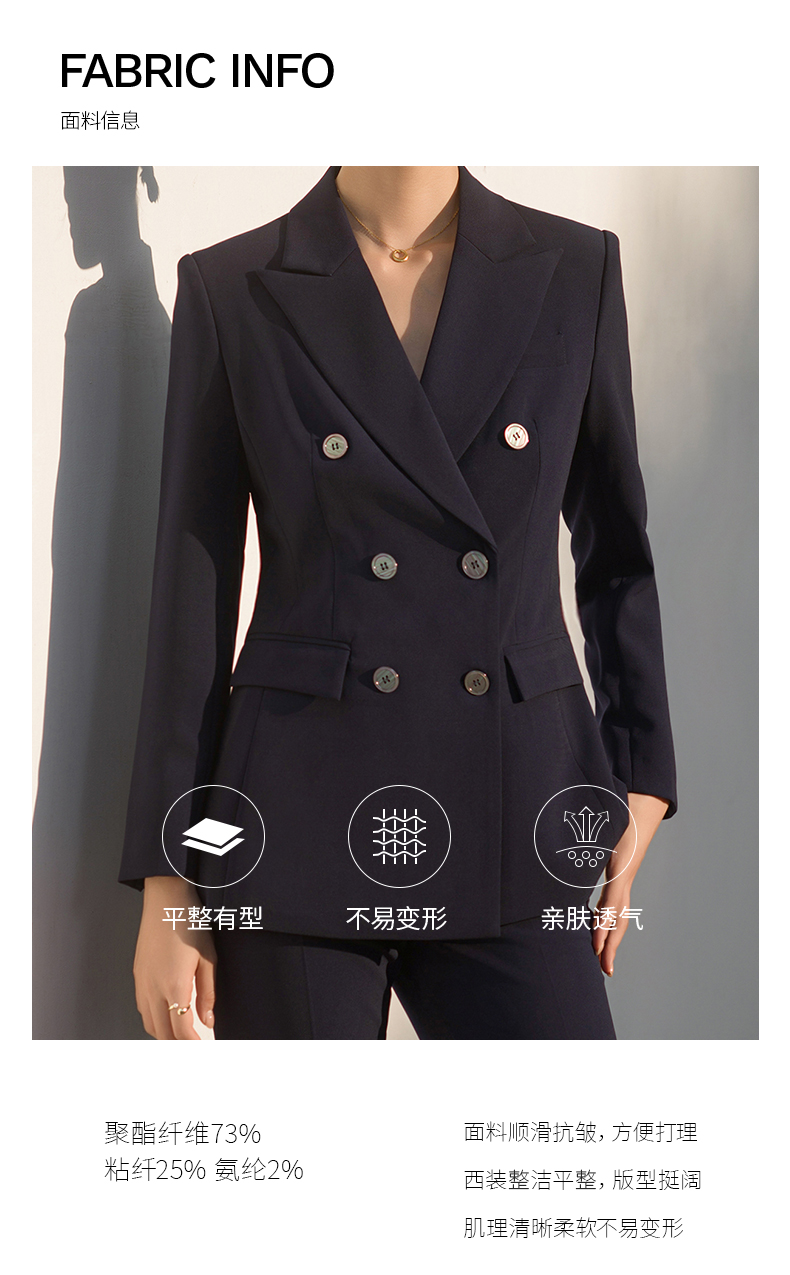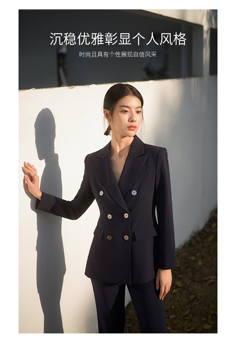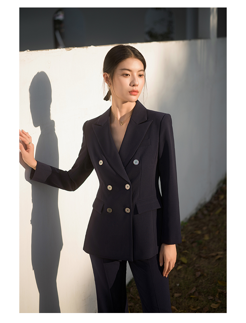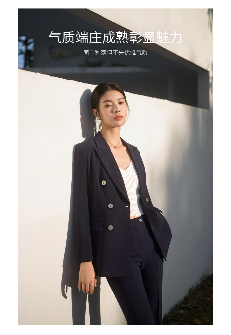 IWY/春季新款藏青色西装套装修身微喇裤职场商务干练修身高级西服C13102+P31356