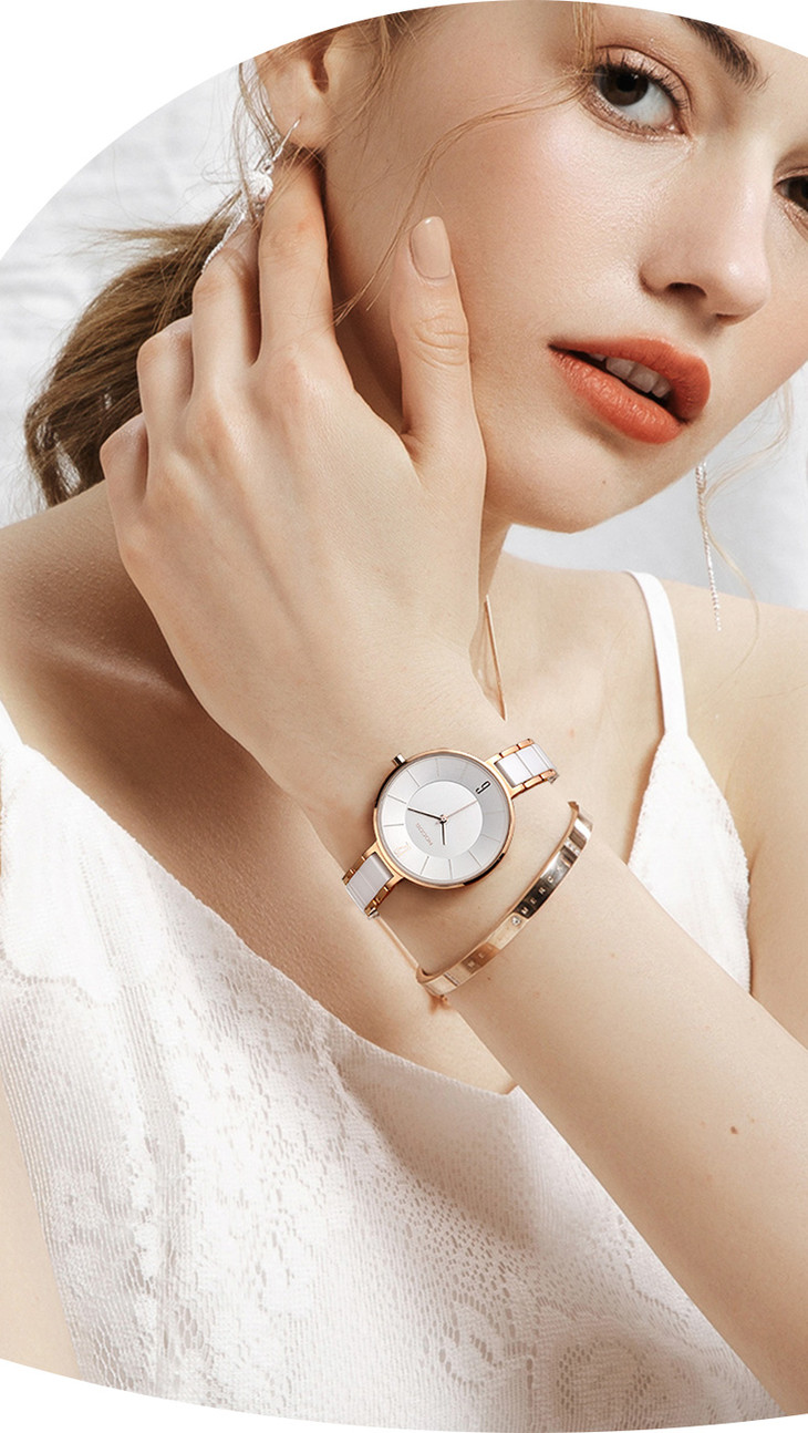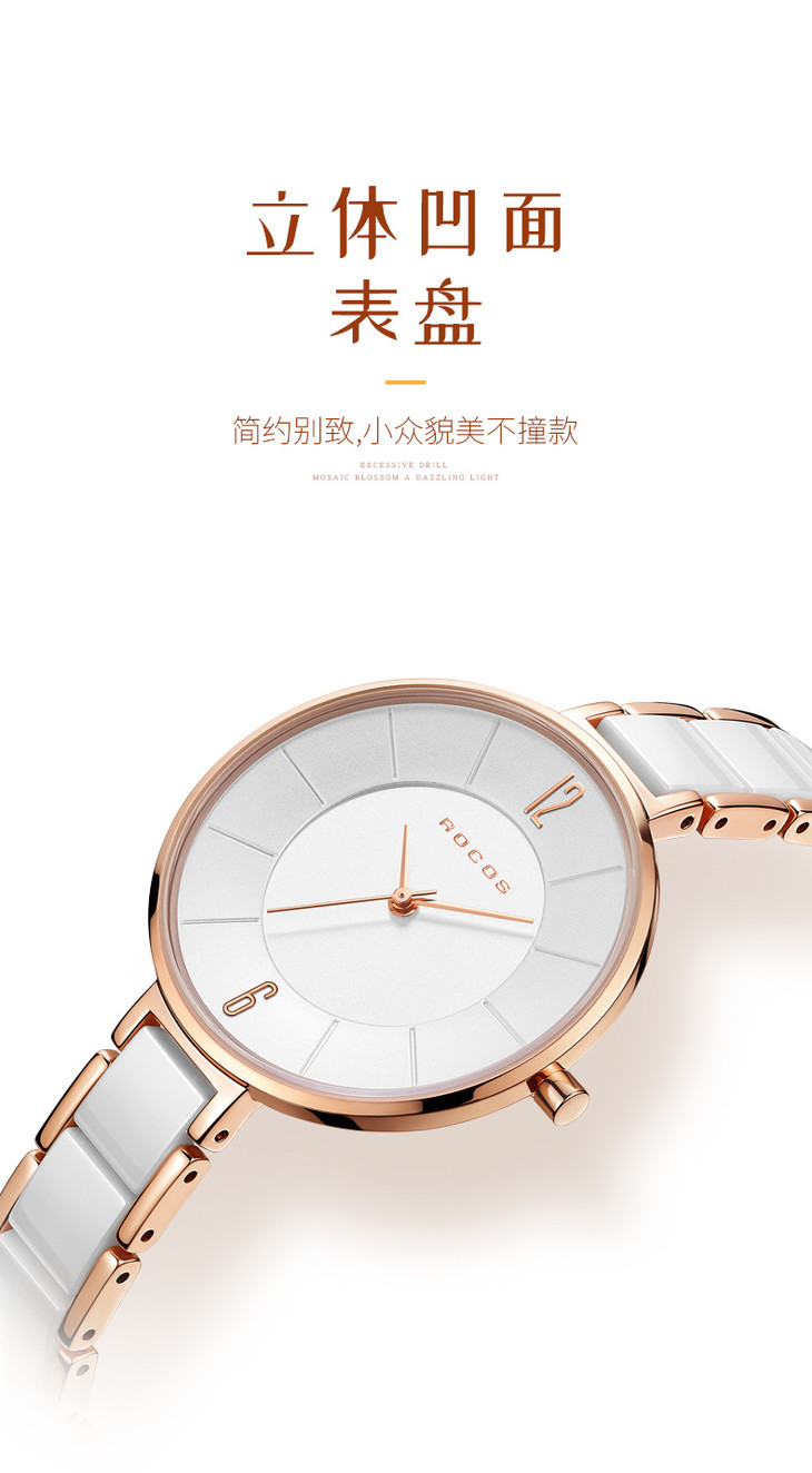 【 520心选!李彩桦代言 】雷克斯轻奢小众 陶瓷女士手表 简约气质百搭 下单即送钛钢手镯