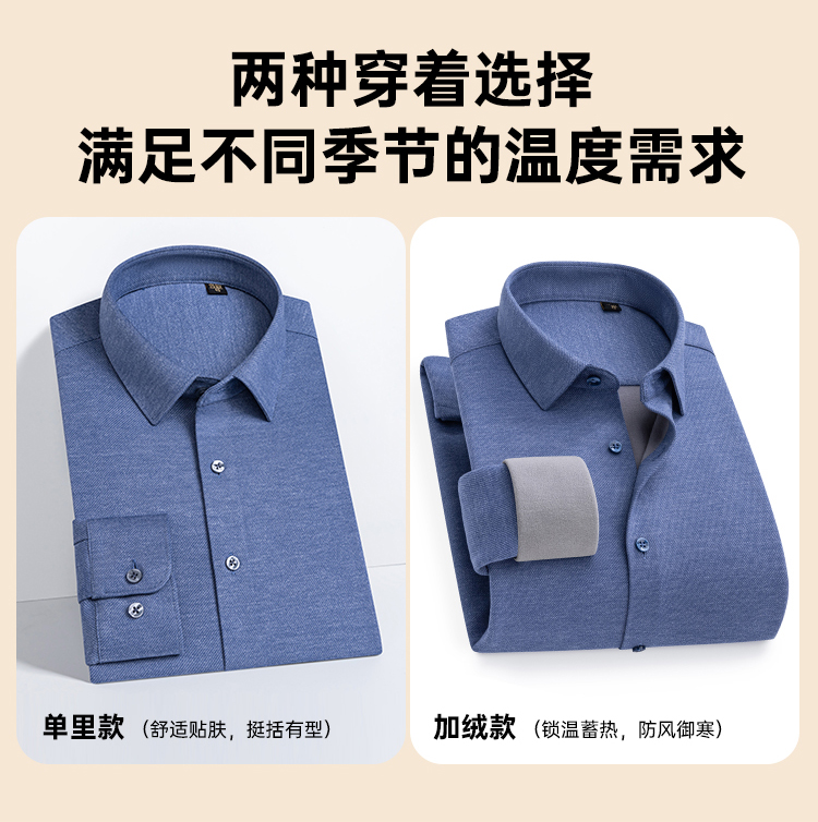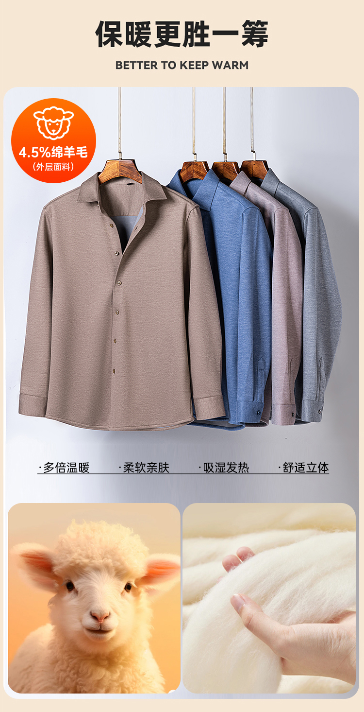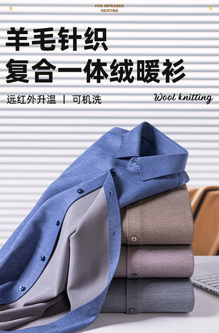 【实付满399送保温杯】【可机洗一体羊毛速热弹力衬衫】加厚通勤打底衬衫商务休闲保暖长袖衬衣CT522