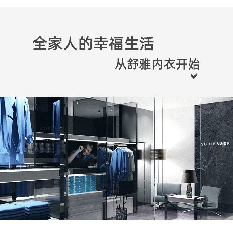 - 来自德国的SCHIESSER舒雅,专注做内衣一百四十余年,不遗余力的材料创新,因材而异的专业剪裁,健康环保的加工技术以及充满文化关注的时尚主题,做你认识之外的舒适内衣。