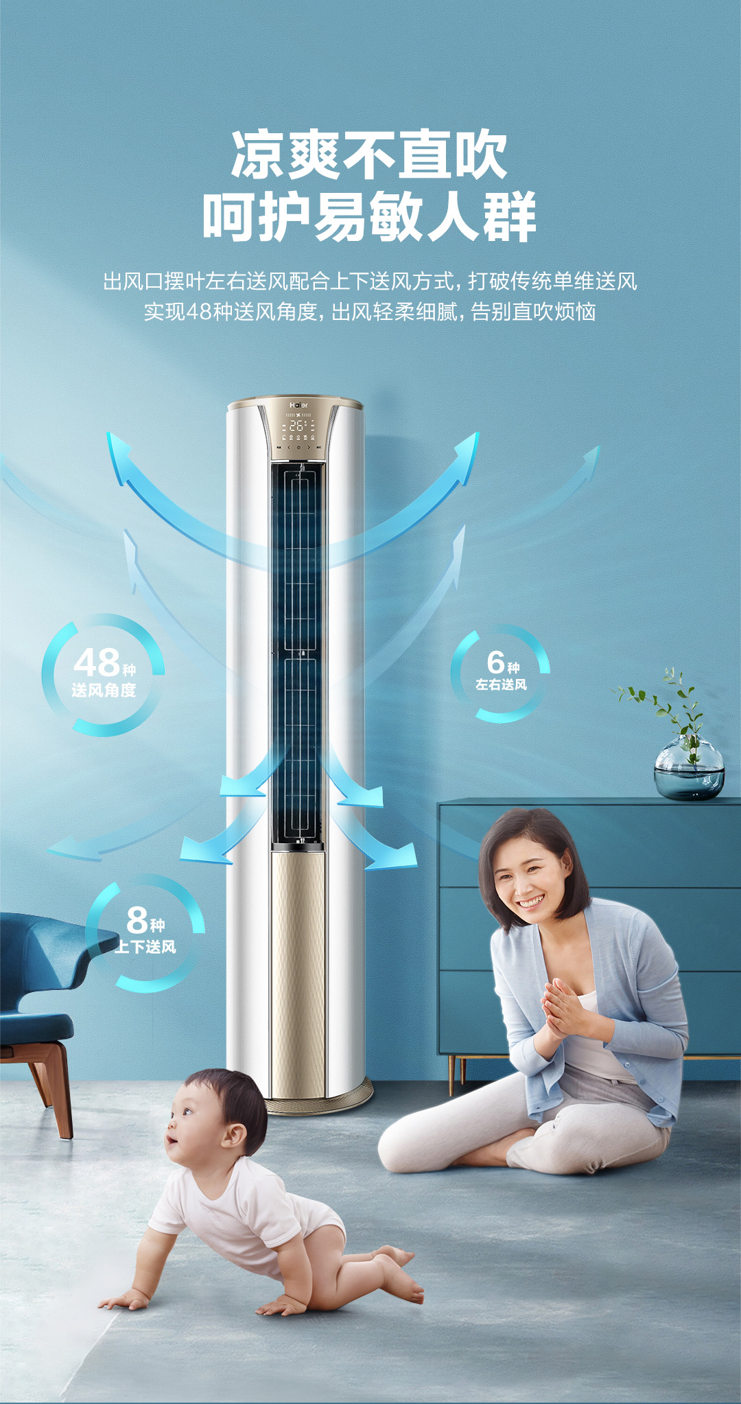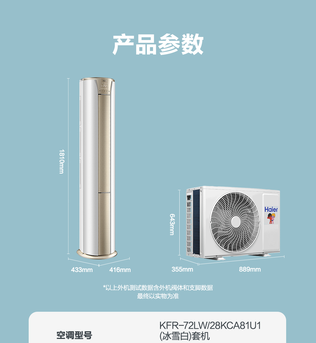 【下单前咨询地址库存】海尔3匹 静悦 新一级能效 变频 省电客厅空调立式柜机 自清洁 冷暖 KFR-72LW/28KCA81U1(冰雪白)