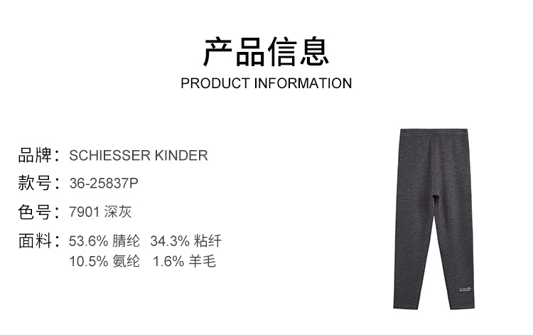 【加厚打底裤】SCHIESSER德国舒雅女童加厚含羊毛保暖打底裤 560g 36/25837P