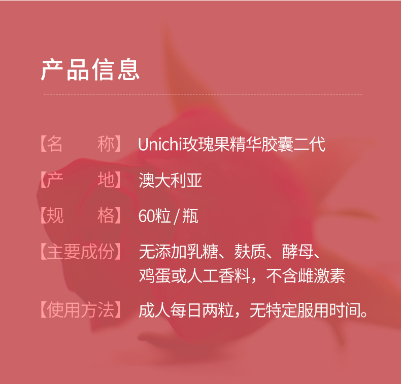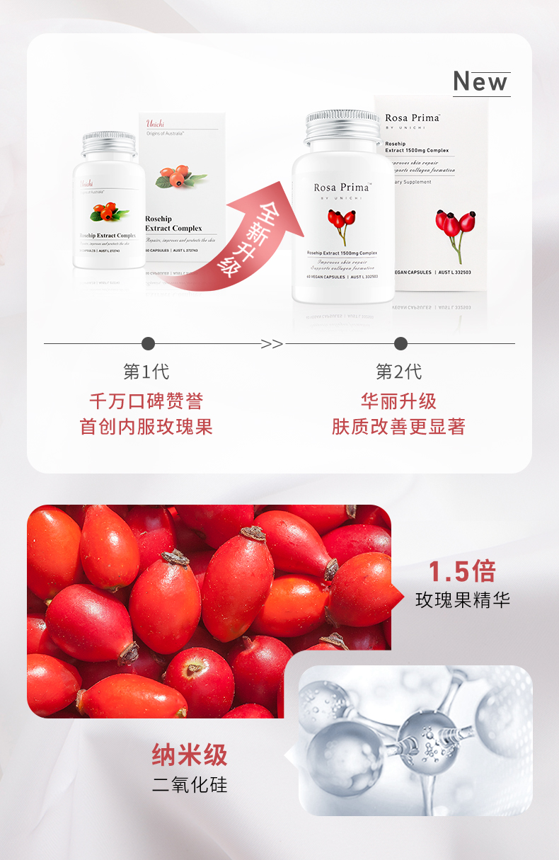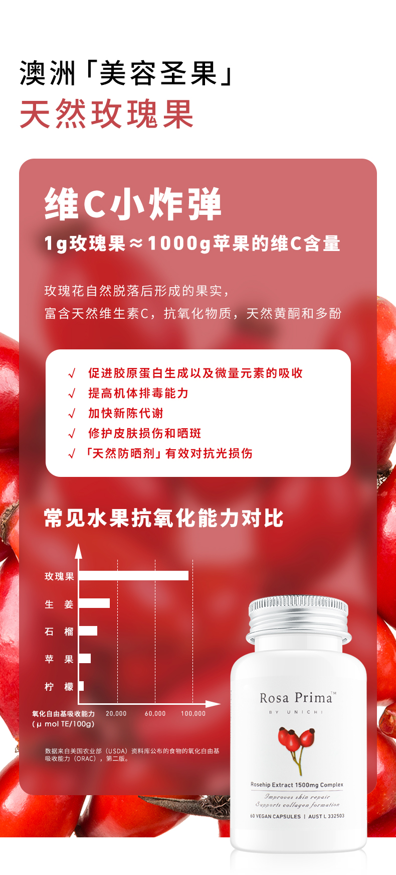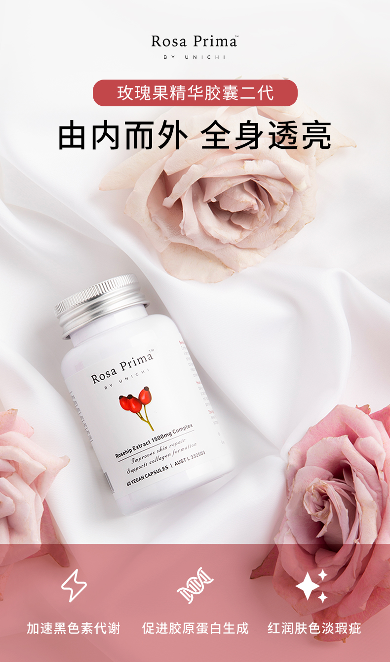 澳洲Unichi玫瑰果精华胶囊美白丸二代/60粒