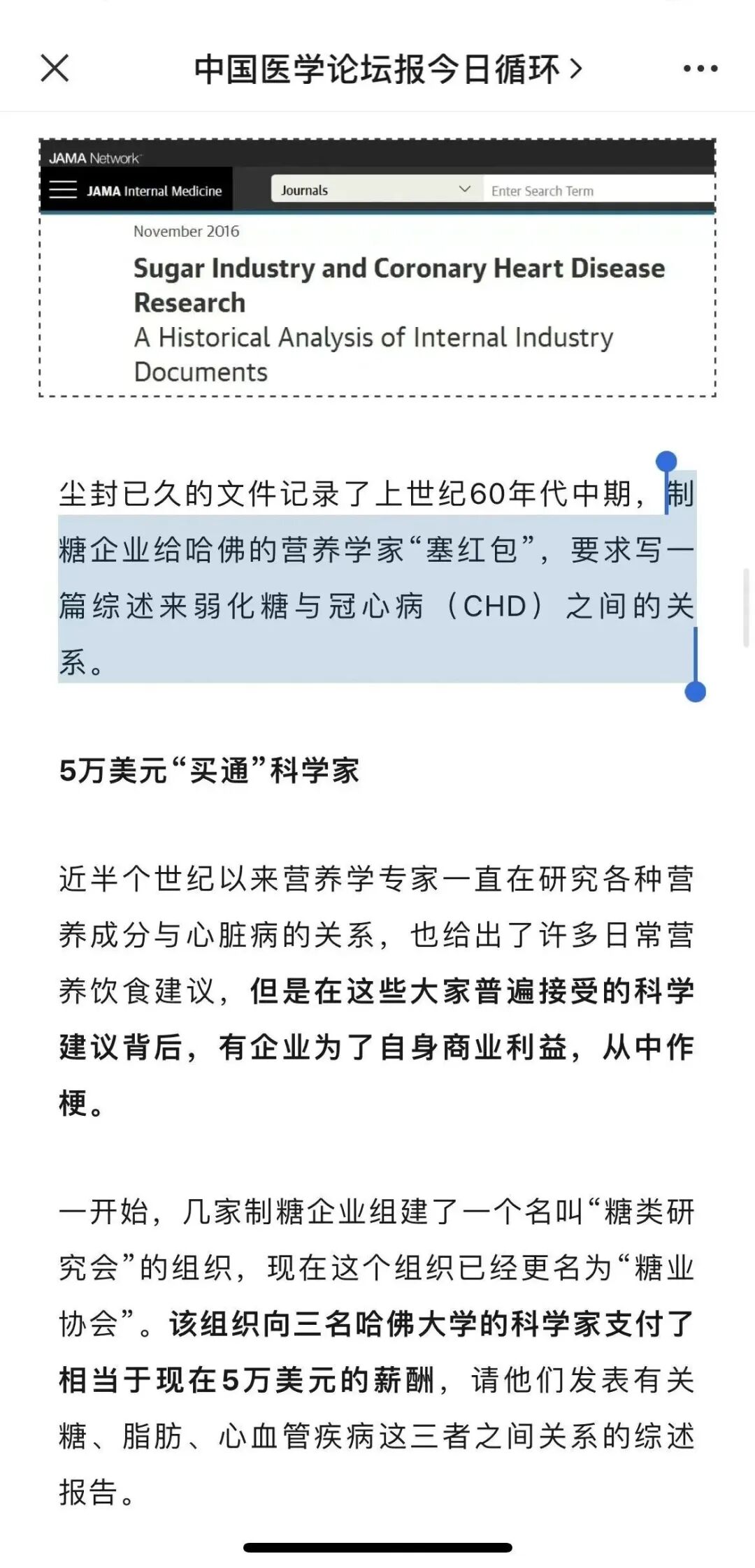 当然,近些年大家已经发现了过量食用糖的危害,所以资本们又开始收买海外的科学家重新做局,给大家洗脑人造代糖比天然糖还健康!但事实是,半个世纪前美国的糖业资本就收买了哈佛大学教授把糖尿病的罪魁祸首从糖转成了饱和脂肪,从而大力推进了人造脂肪(反式脂肪)的普及,