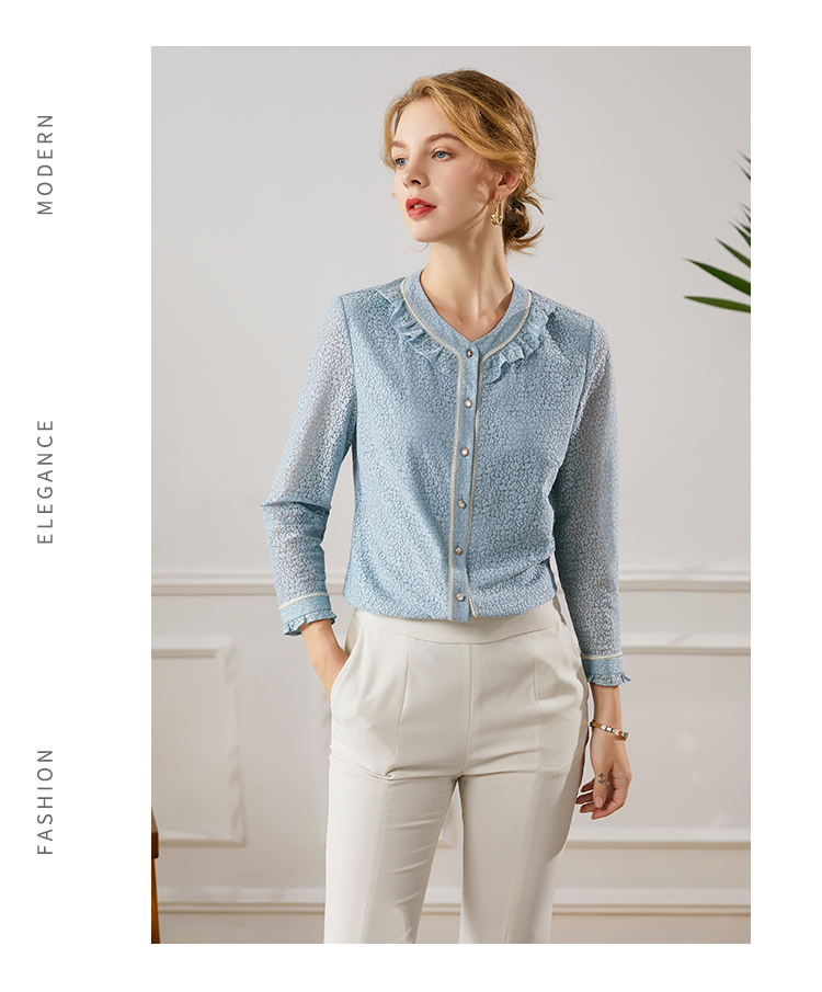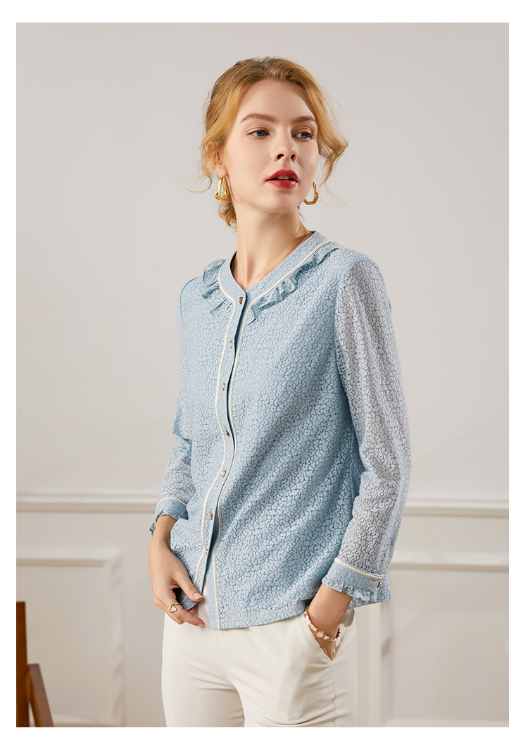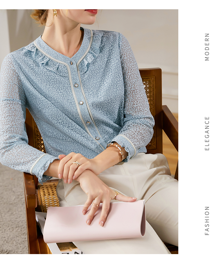 佐尔美2021秋季新款 气质长袖针织衬衫女E13CC28