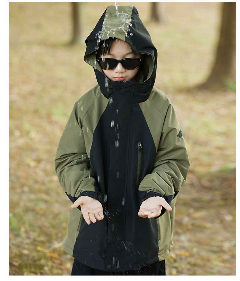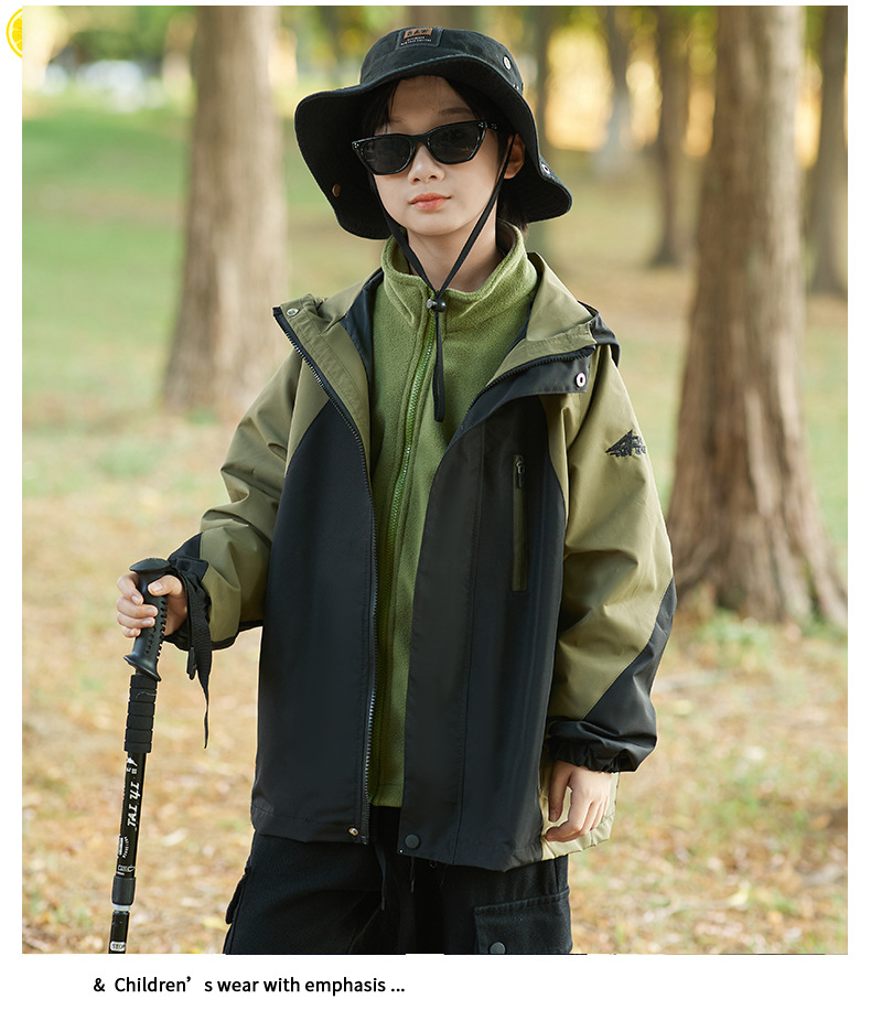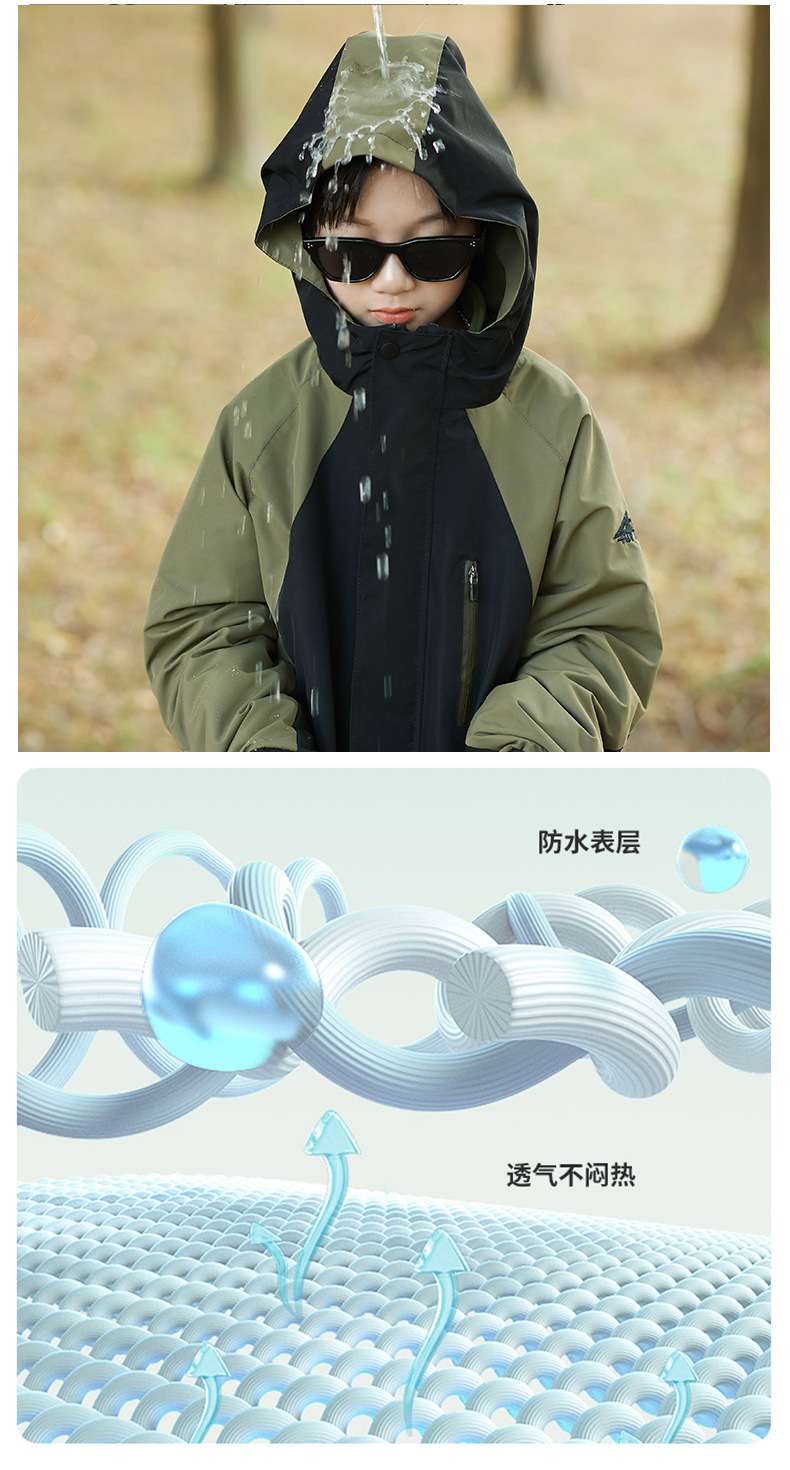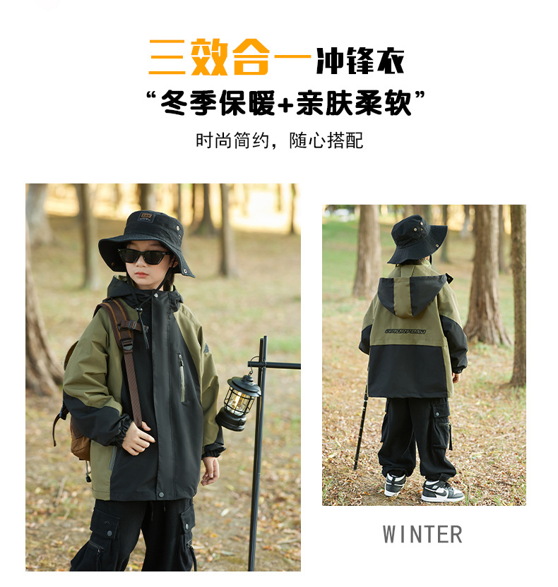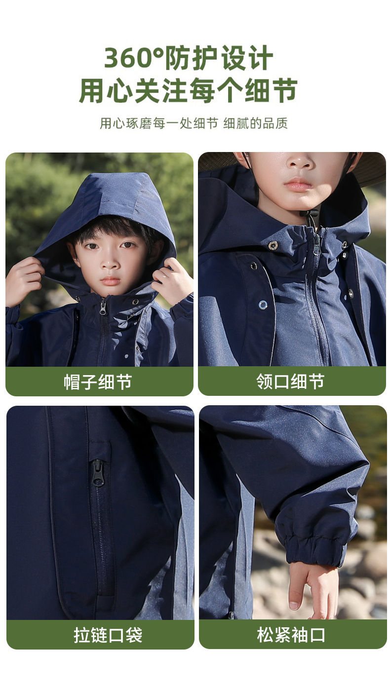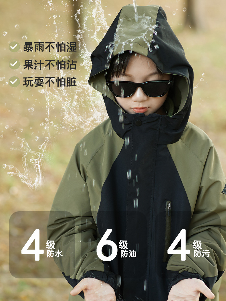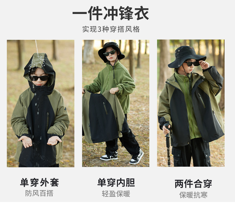 亲子装冲锋衣 中大童青少年春秋冬款连帽夹克外套 防风保暖上衣