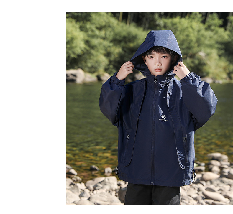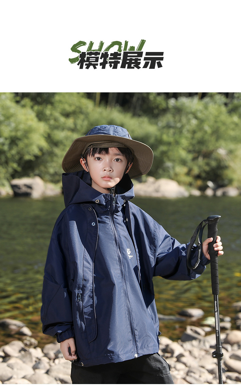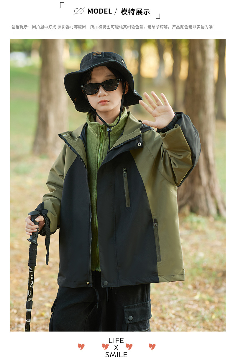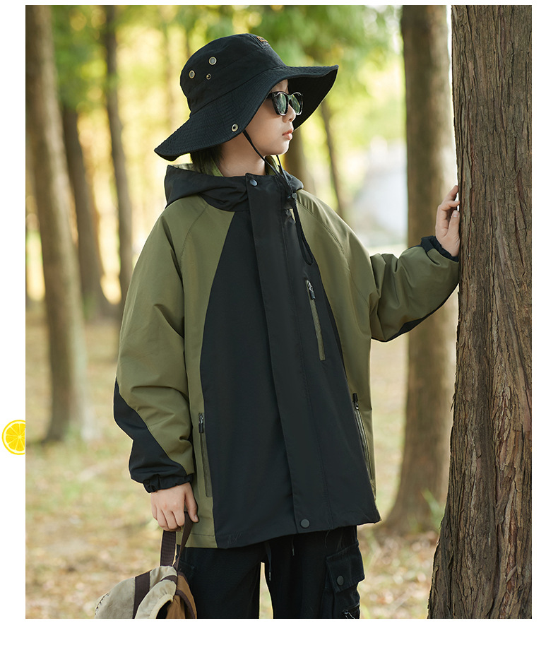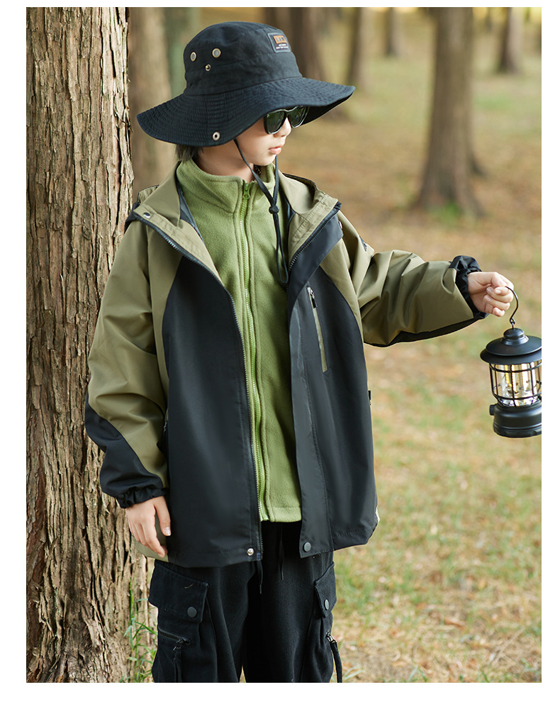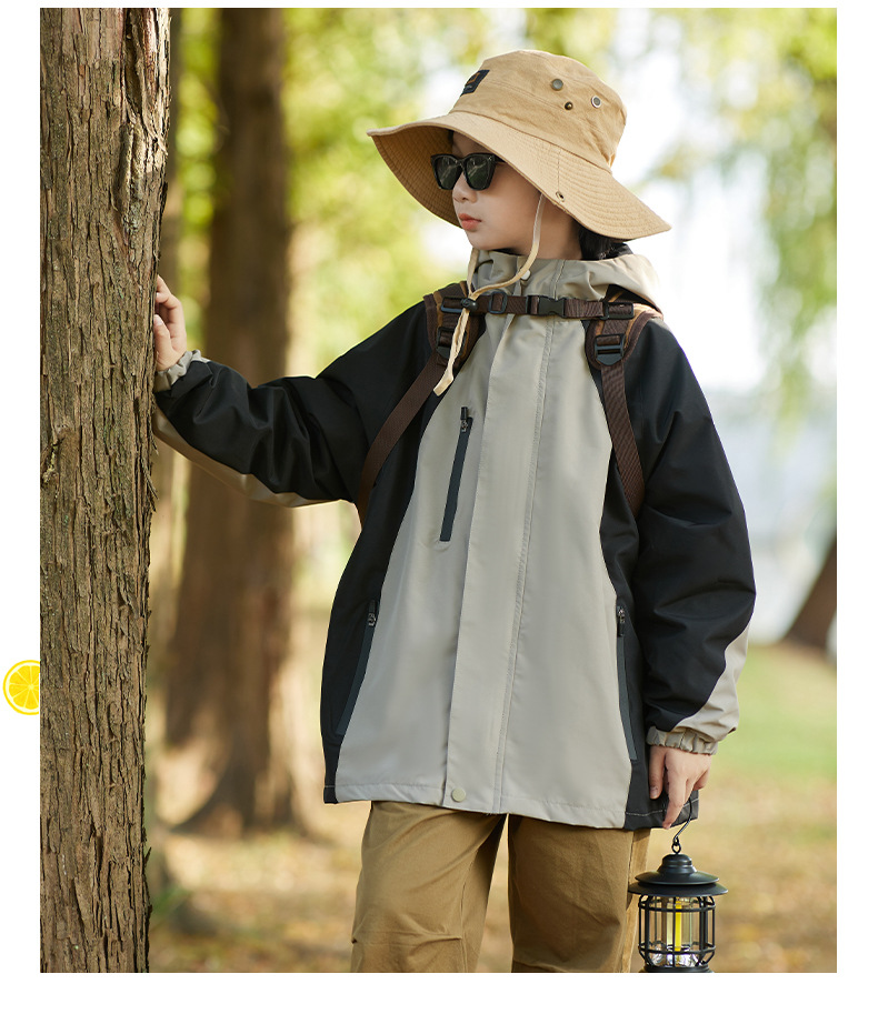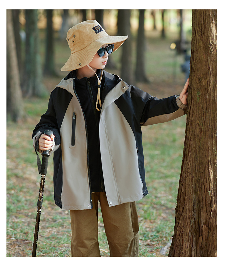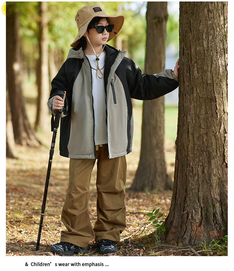 亲子装冲锋衣 中大童青少年春秋冬款连帽夹克外套 防风保暖上衣