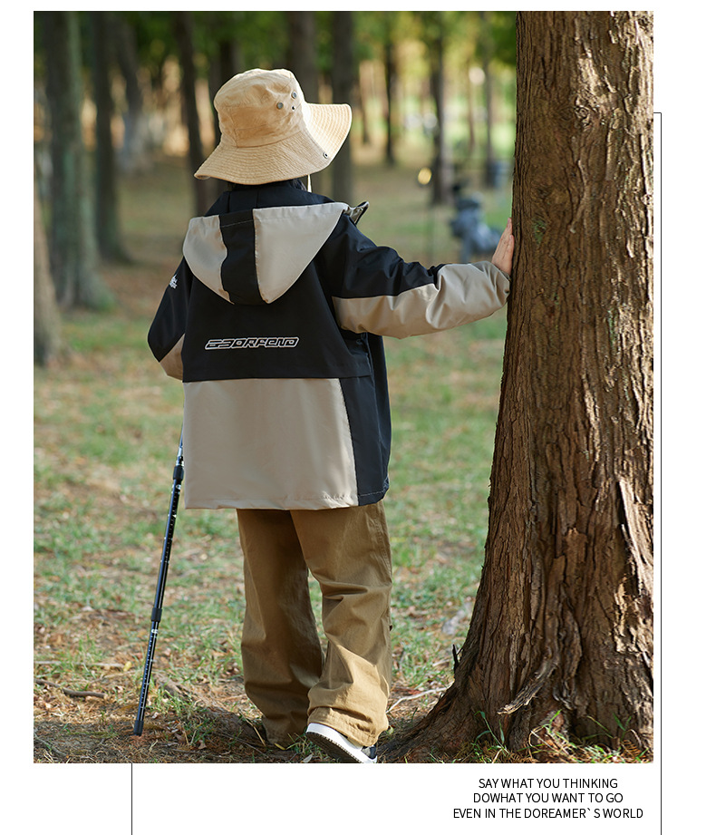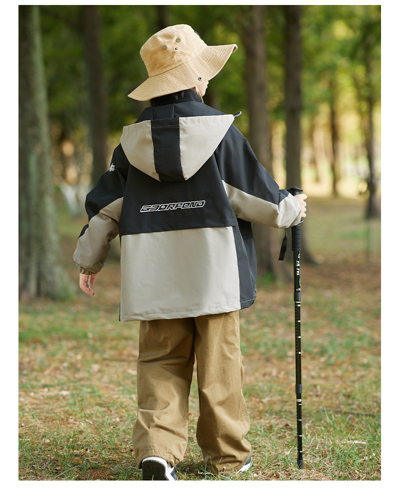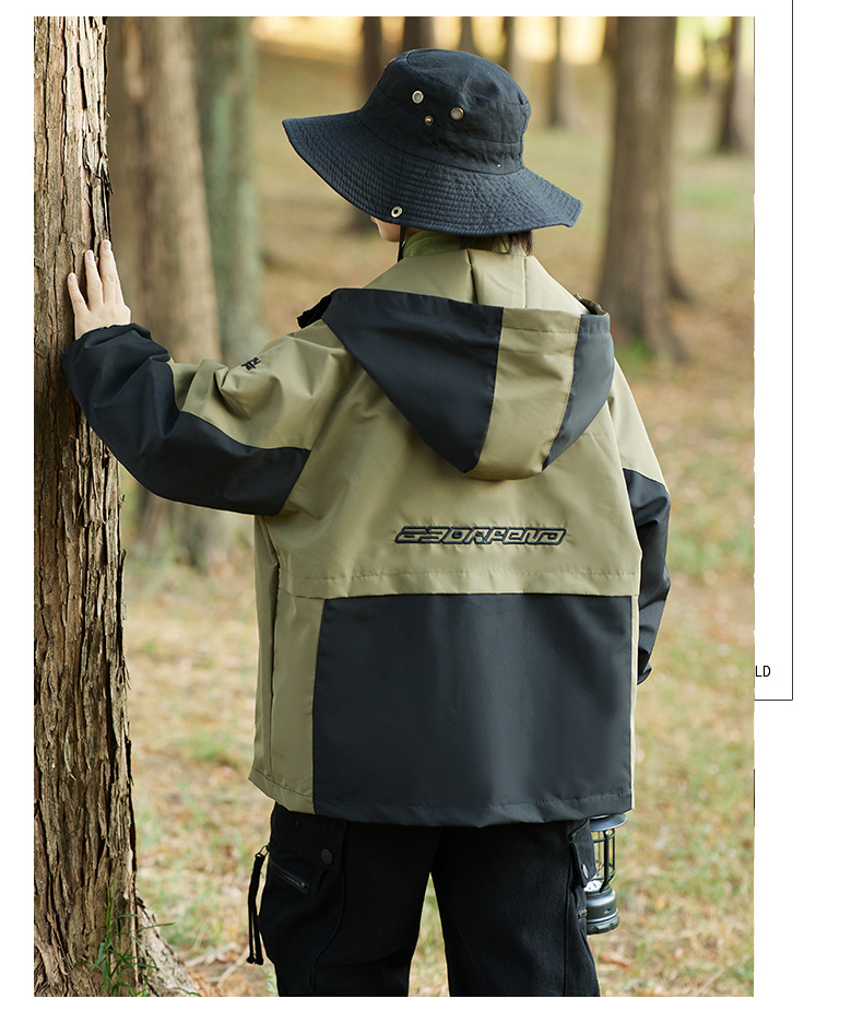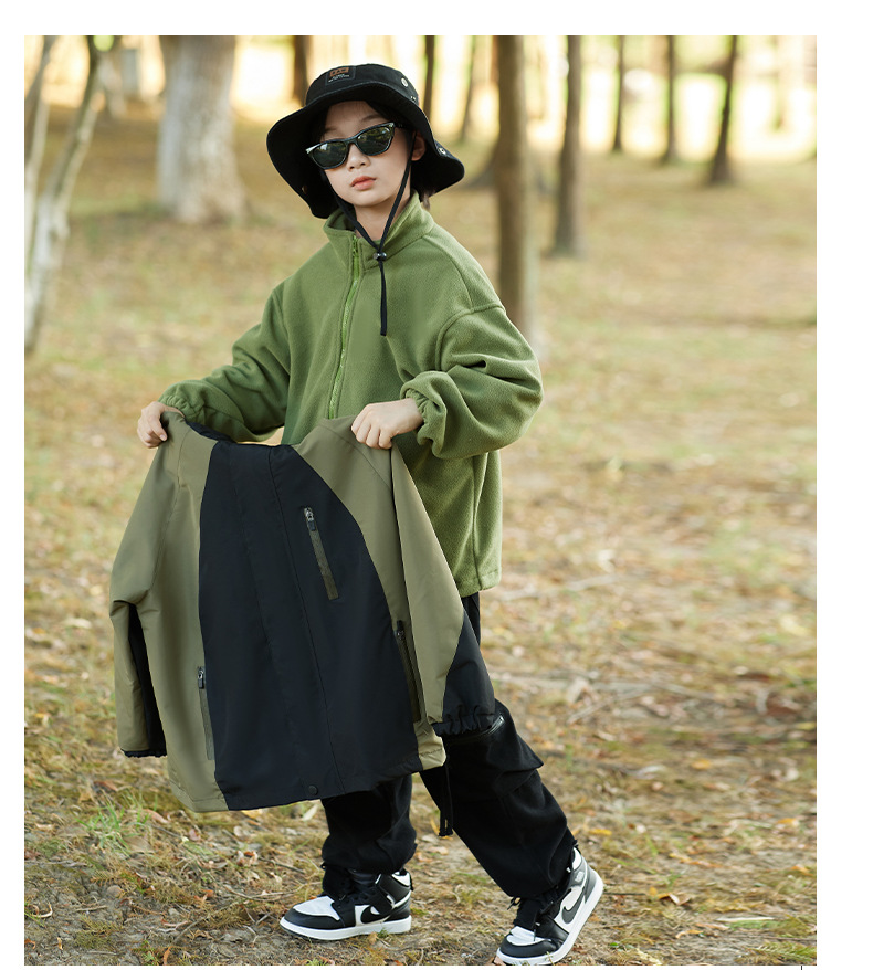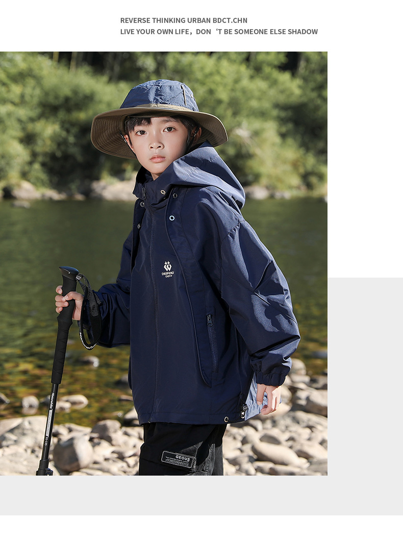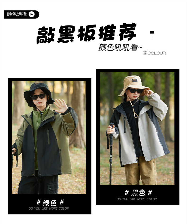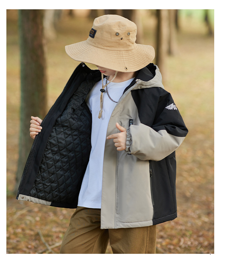 亲子装冲锋衣 中大童青少年春秋冬款连帽夹克外套 防风保暖上衣