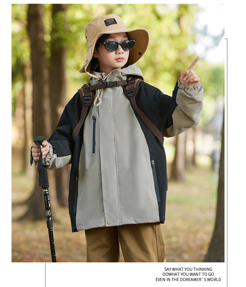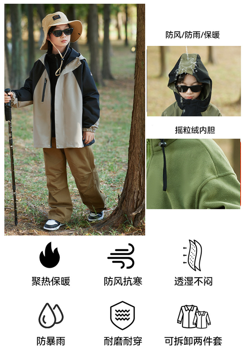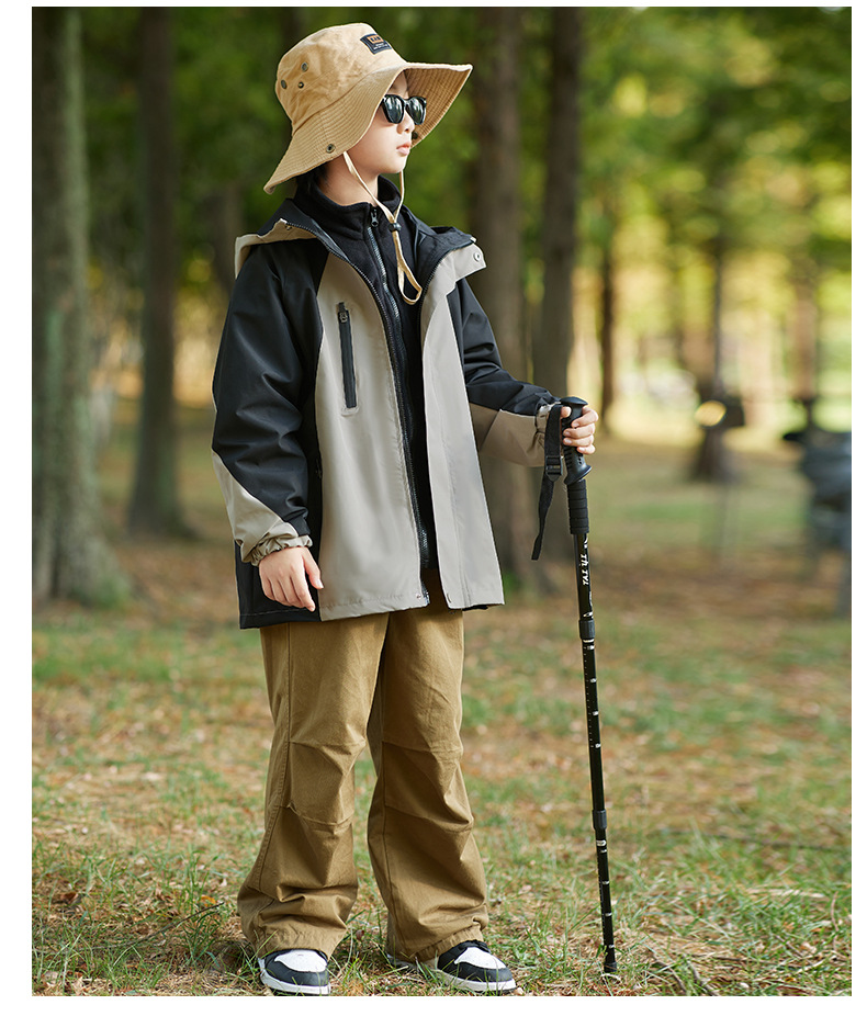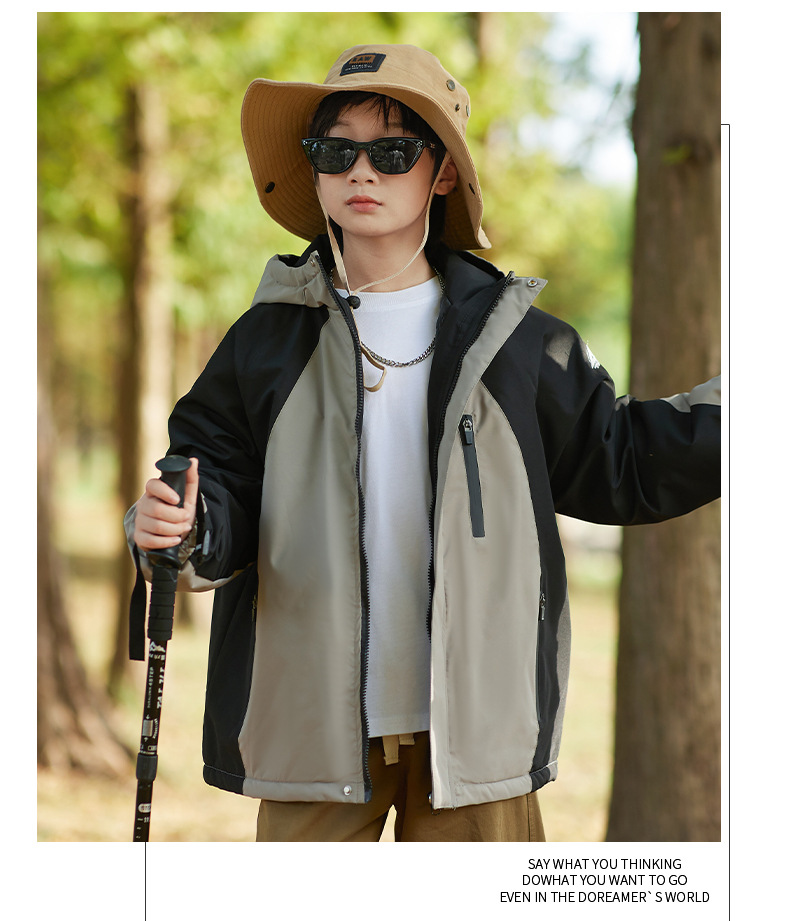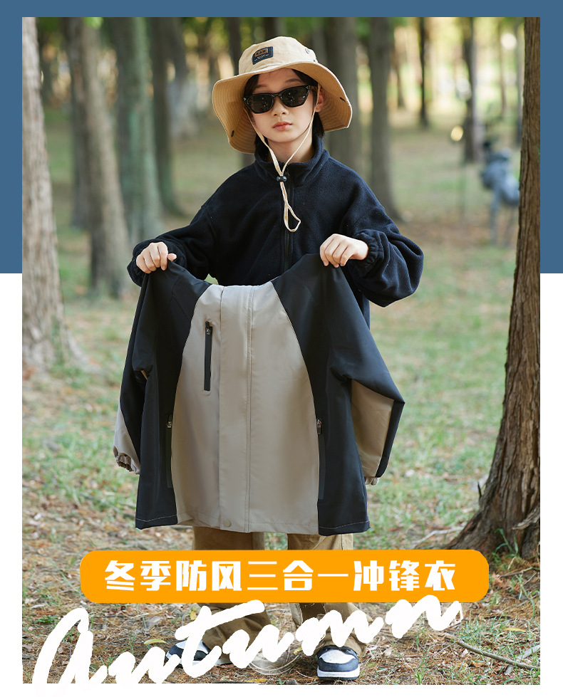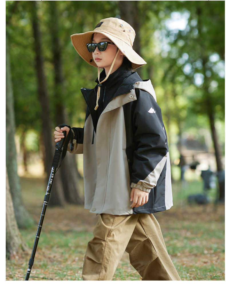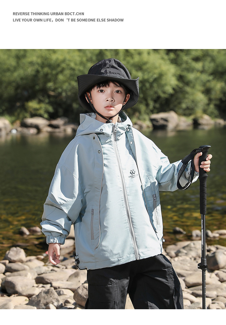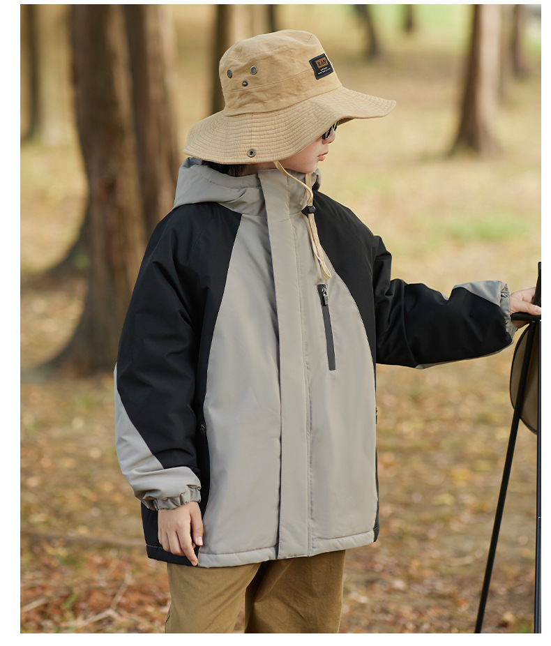 亲子装冲锋衣 中大童青少年春秋冬款连帽夹克外套 防风保暖上衣