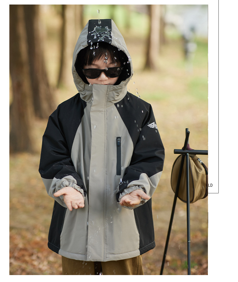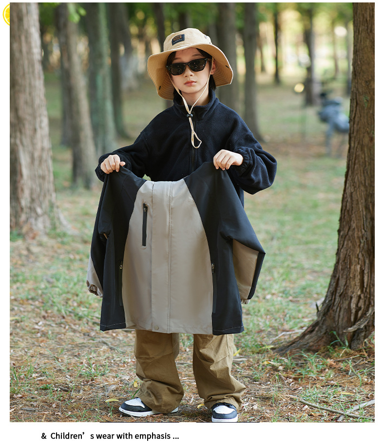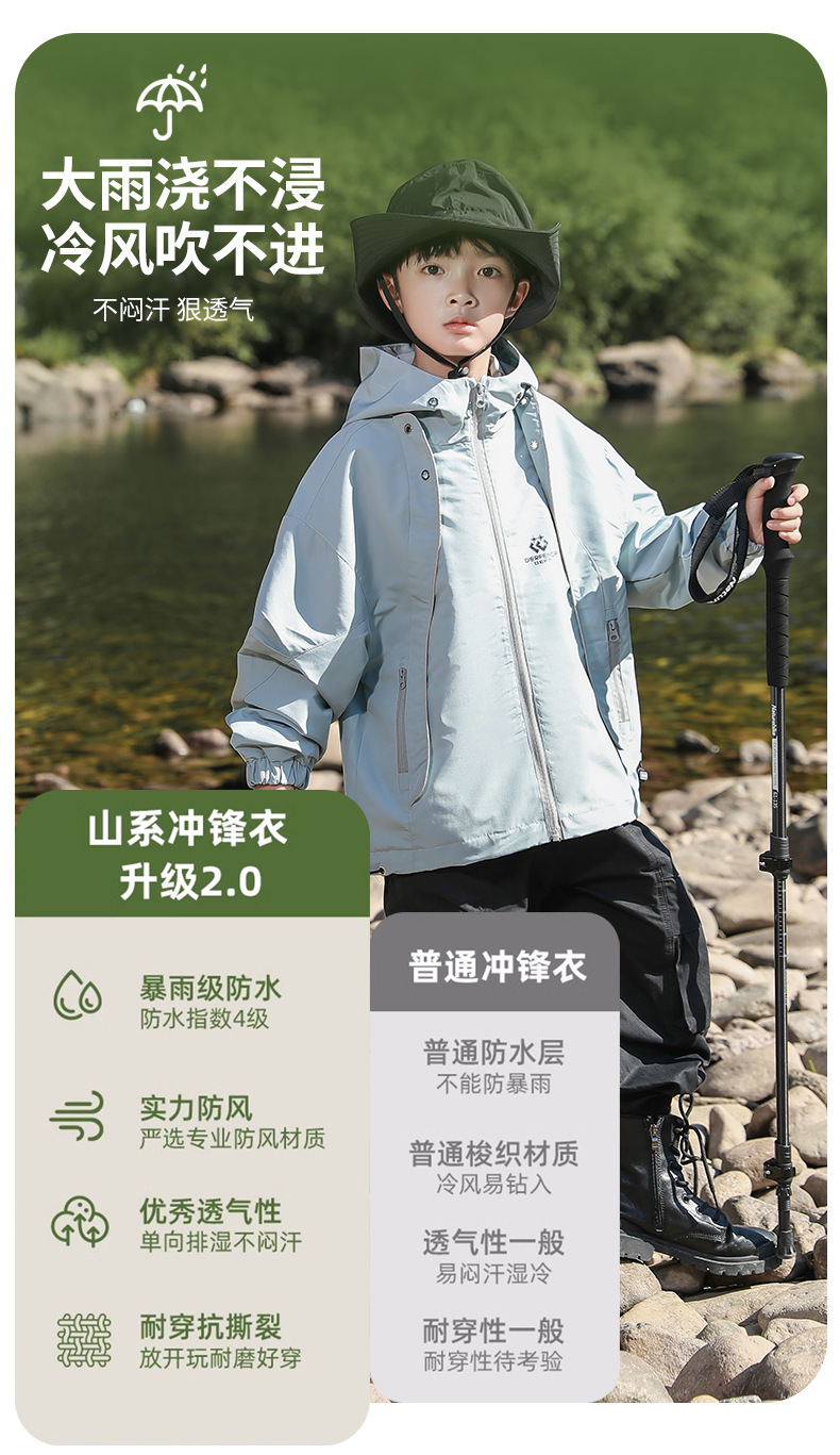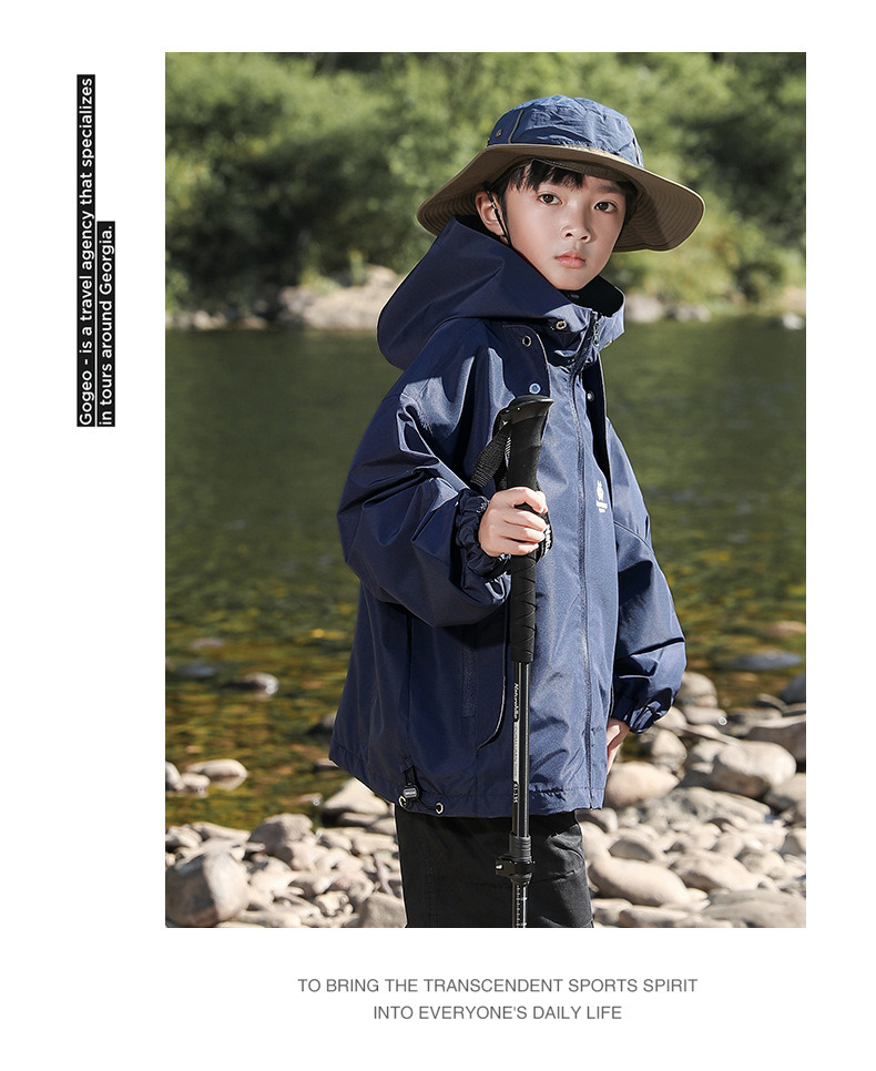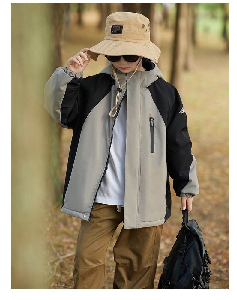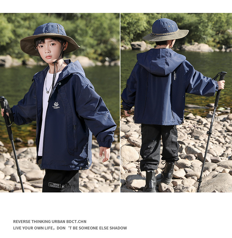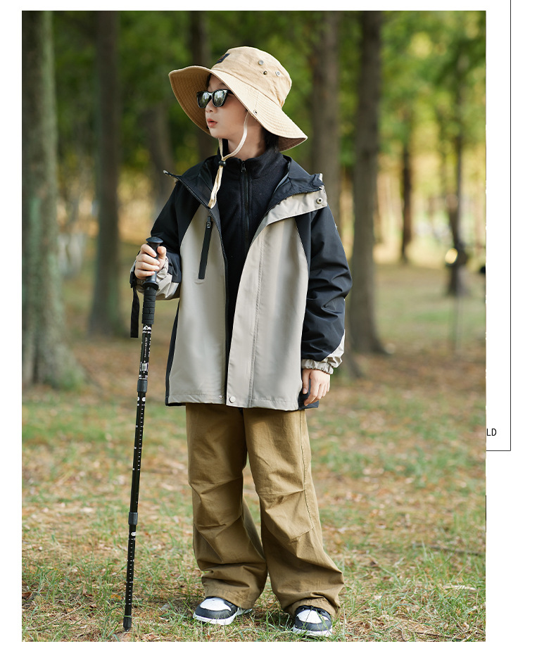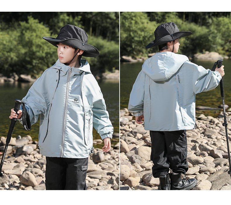 亲子装冲锋衣 中大童青少年春秋冬款连帽夹克外套 防风保暖上衣