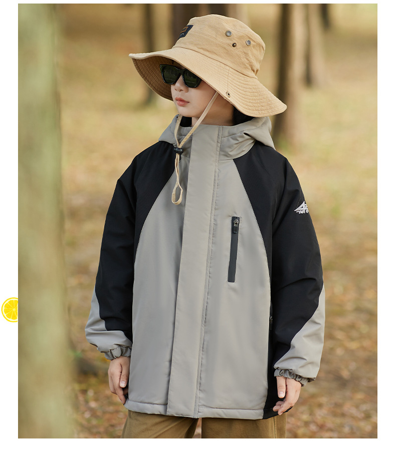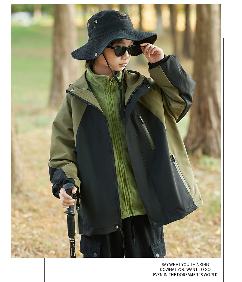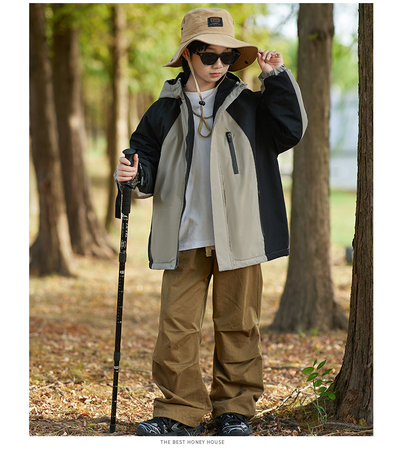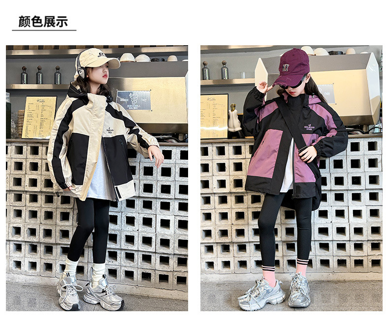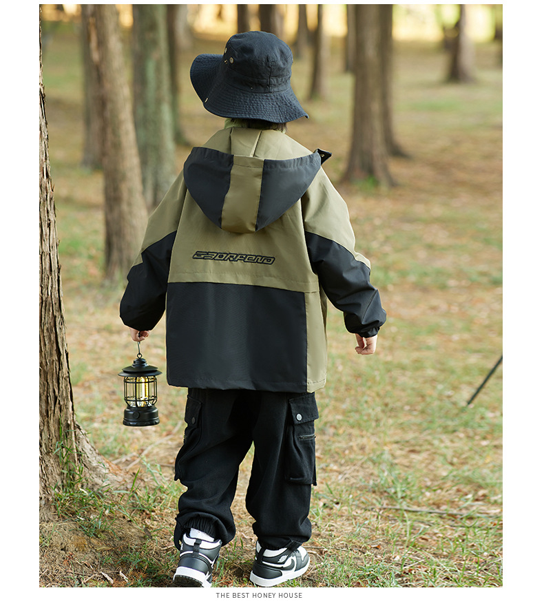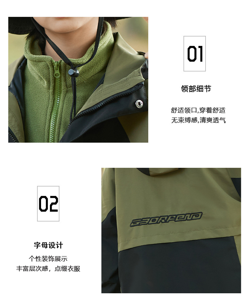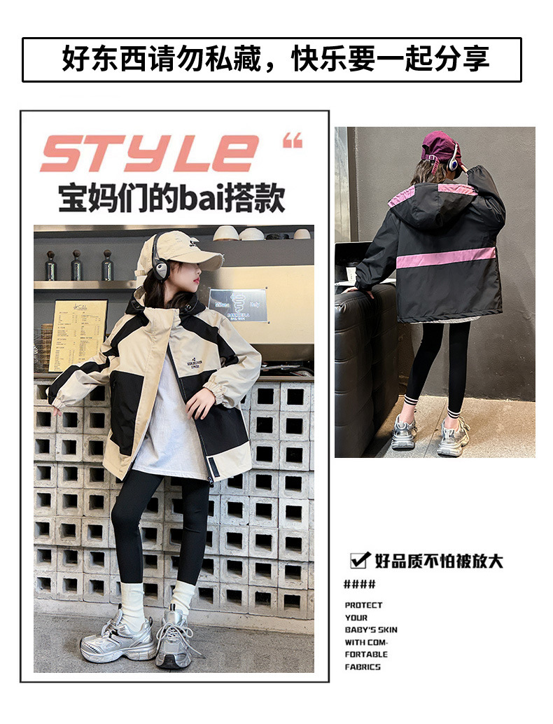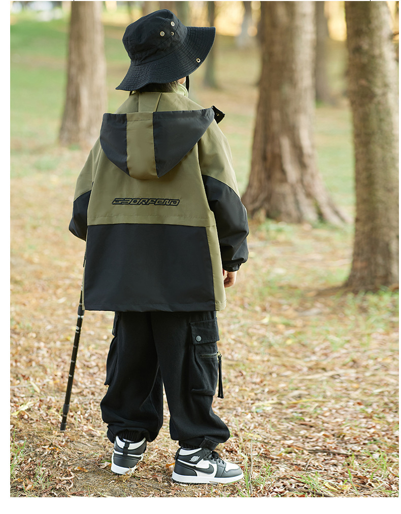 亲子装冲锋衣 中大童青少年春秋冬款连帽夹克外套 防风保暖上衣