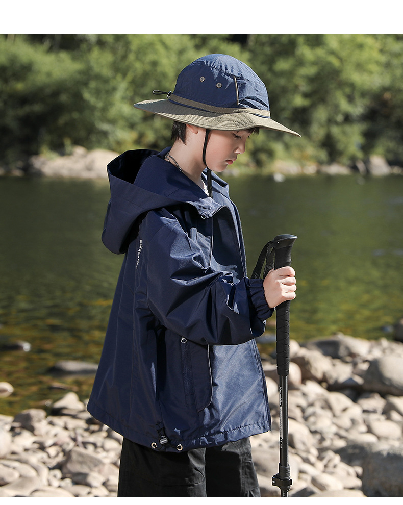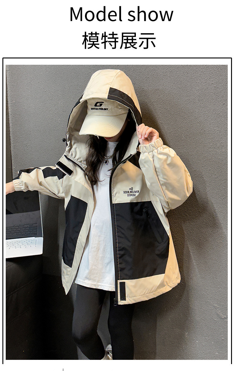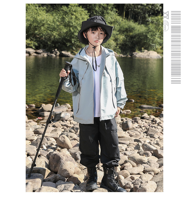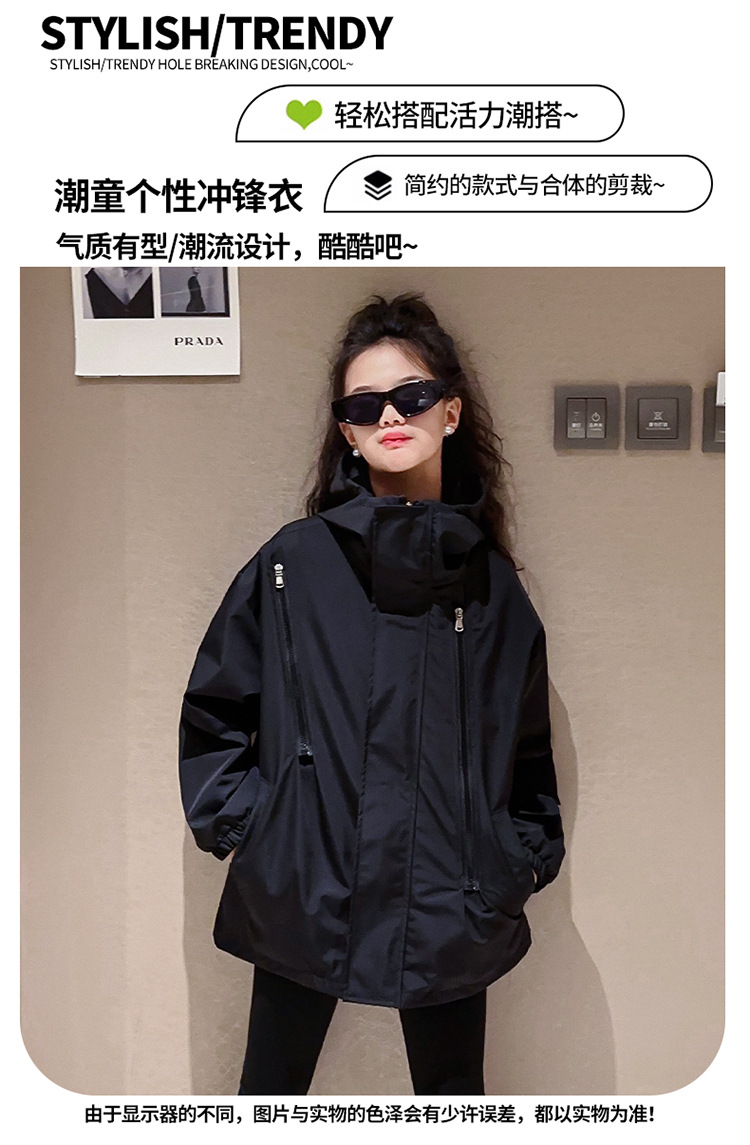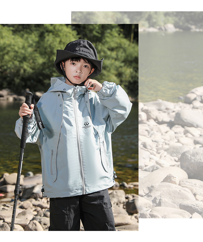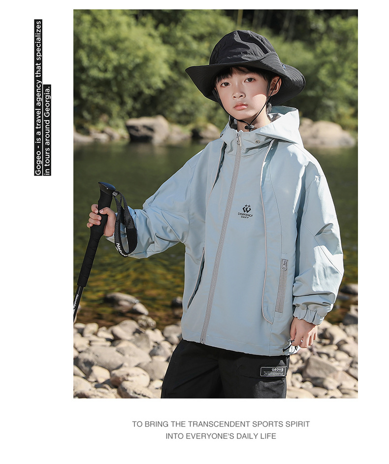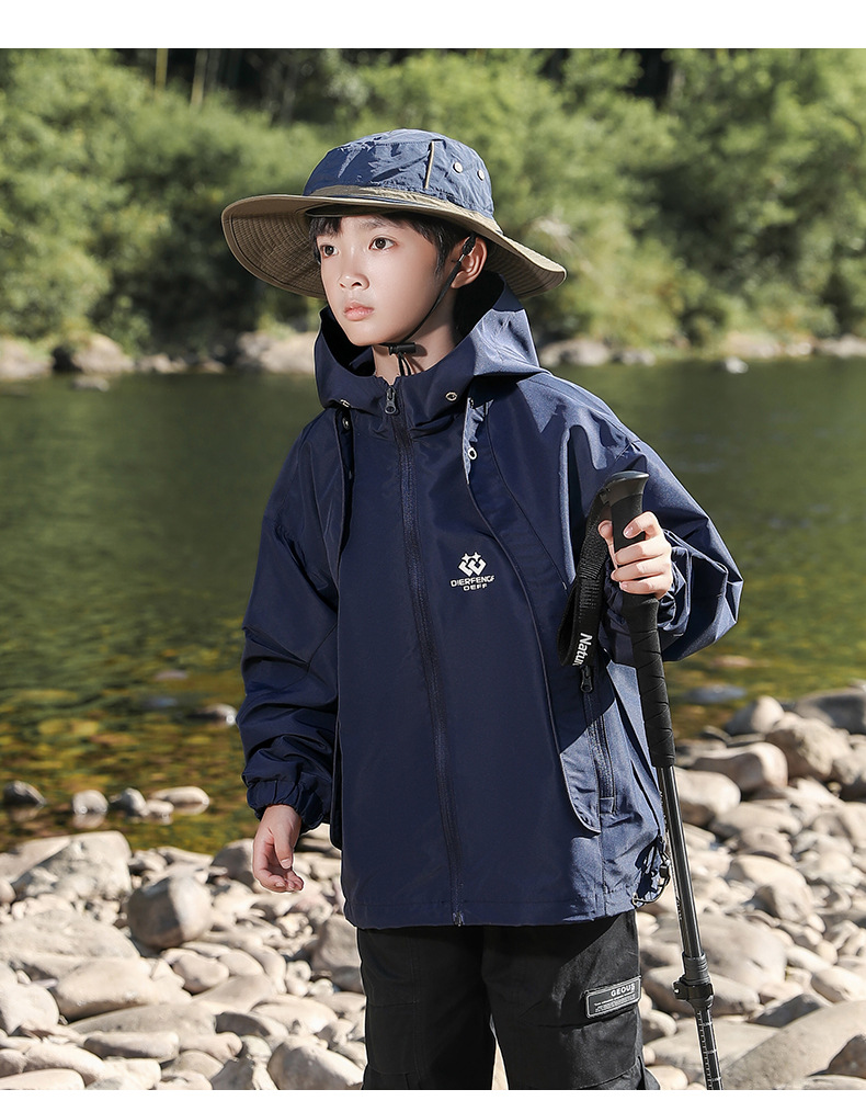 亲子装冲锋衣 中大童青少年春秋冬款连帽夹克外套 防风保暖上衣