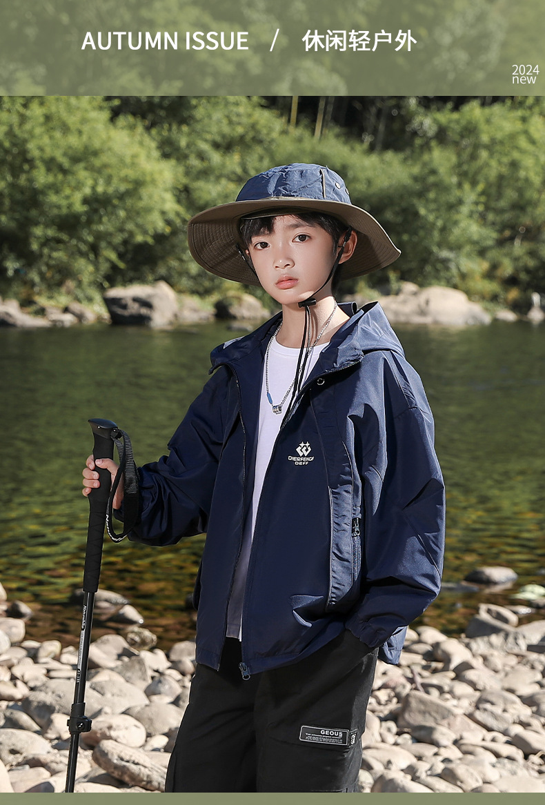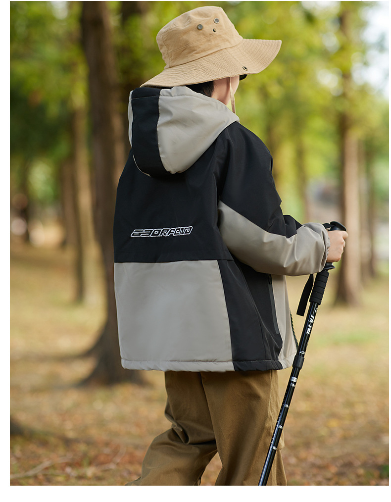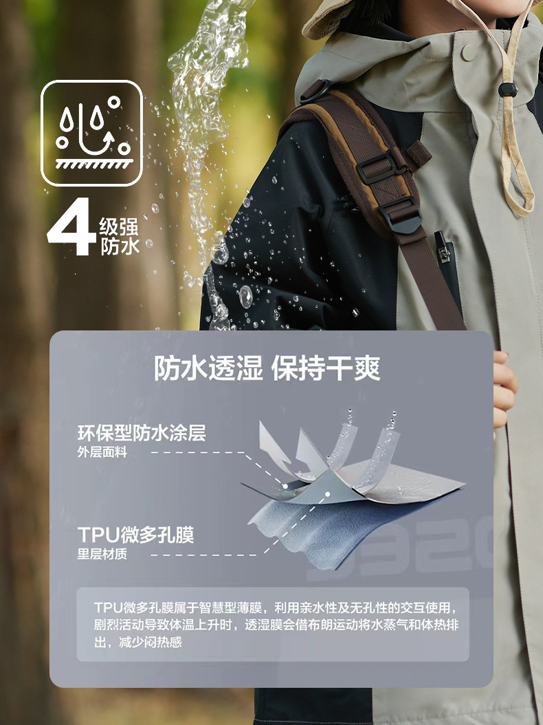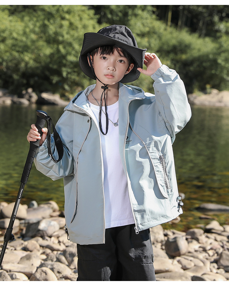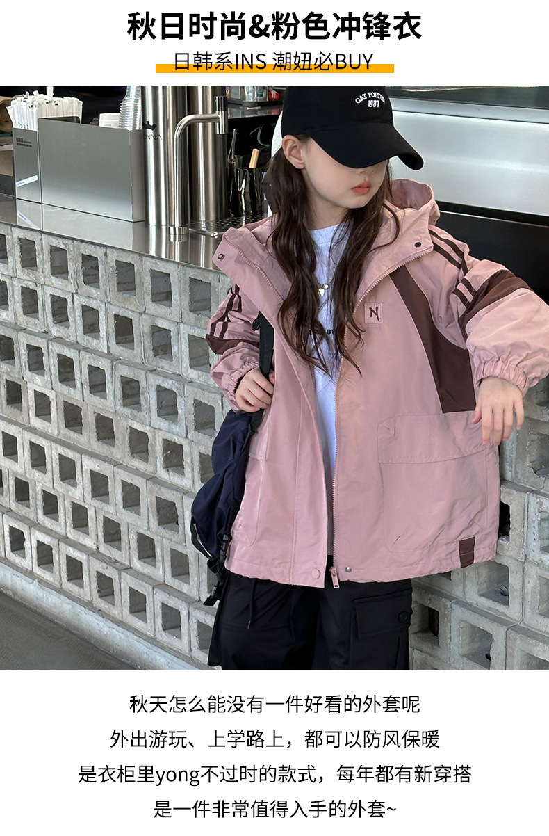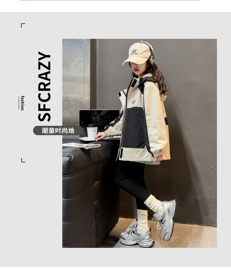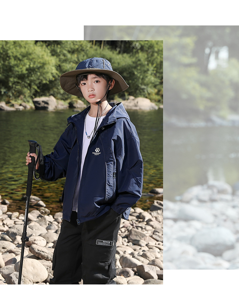 亲子装冲锋衣 中大童青少年春秋冬款连帽夹克外套 防风保暖上衣