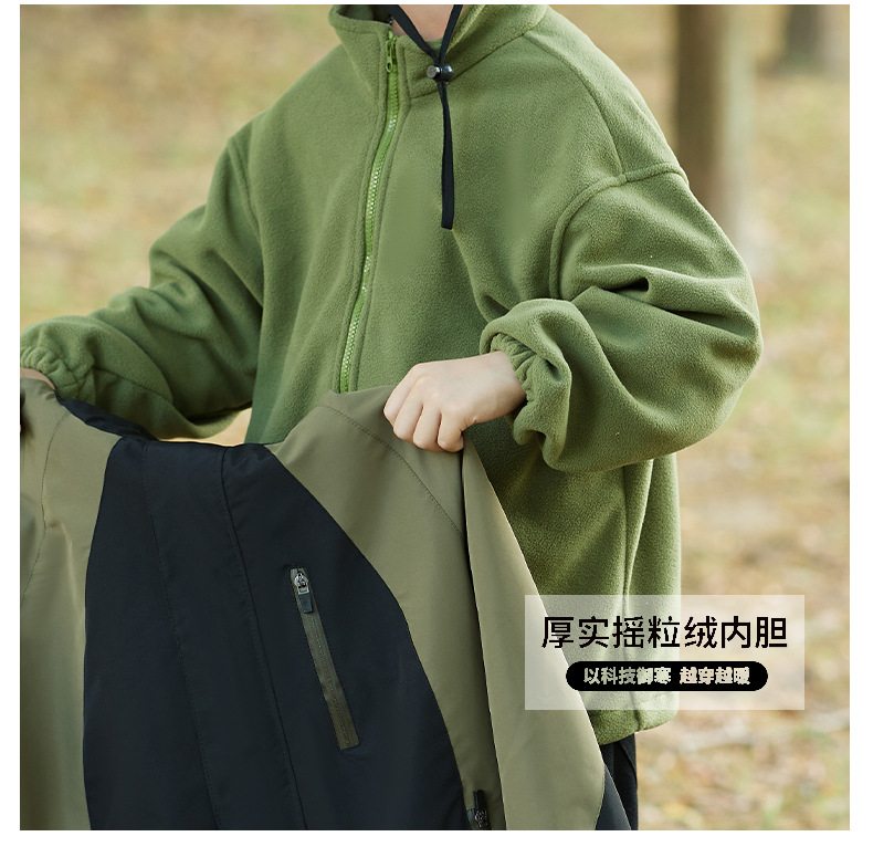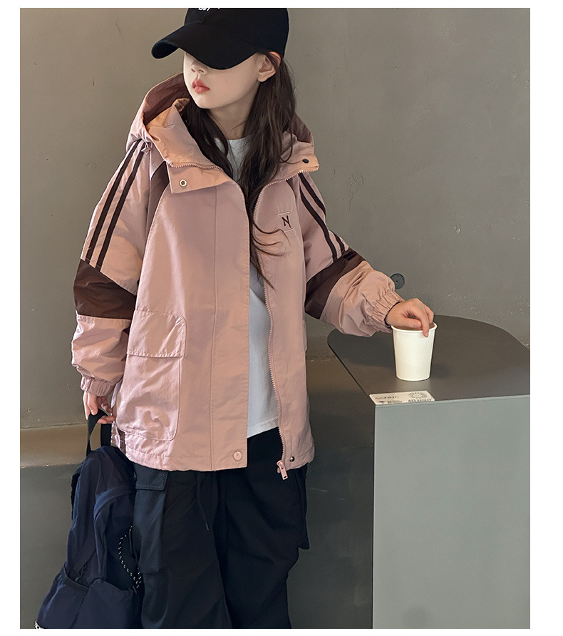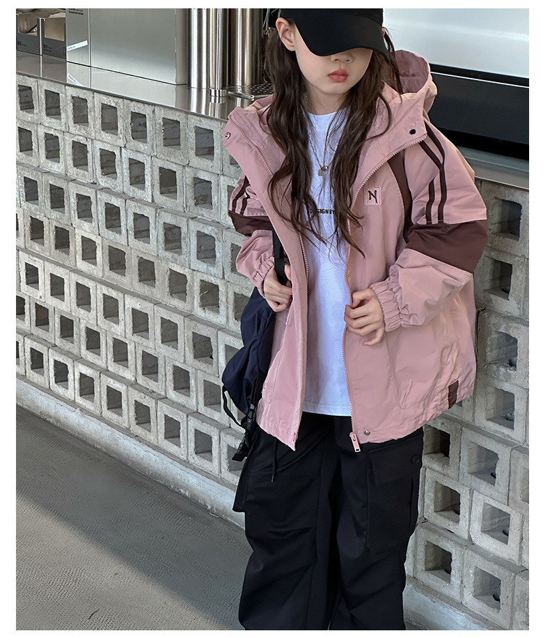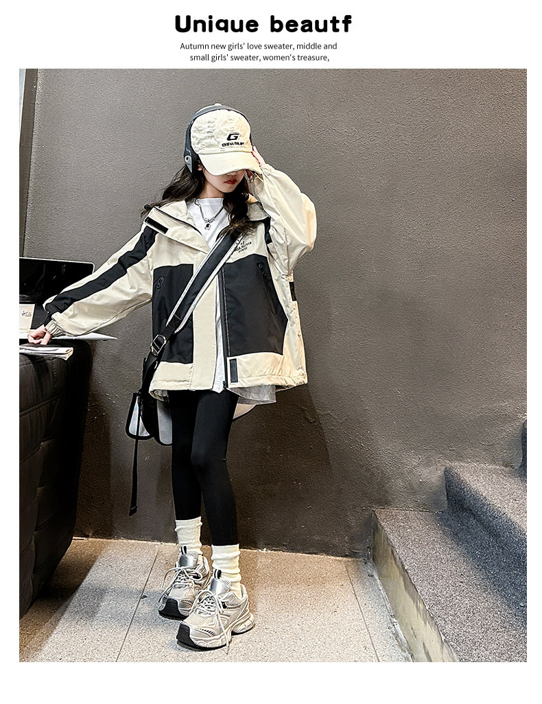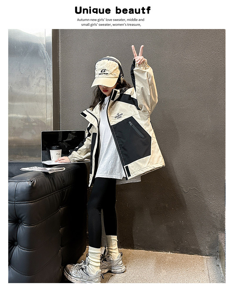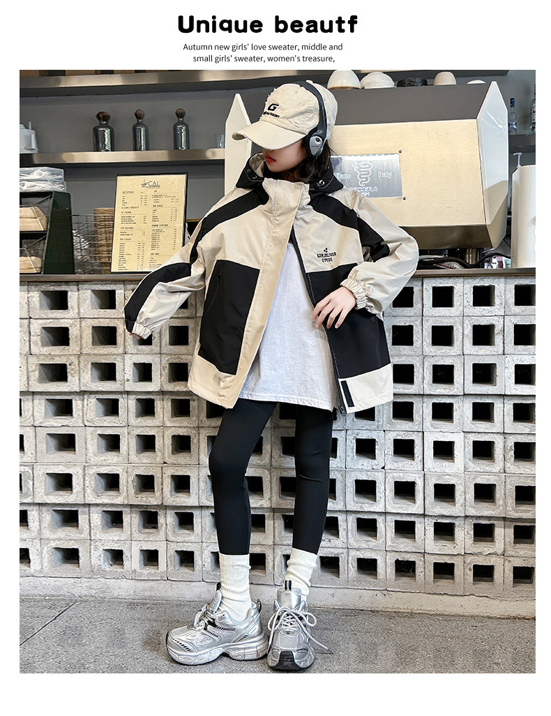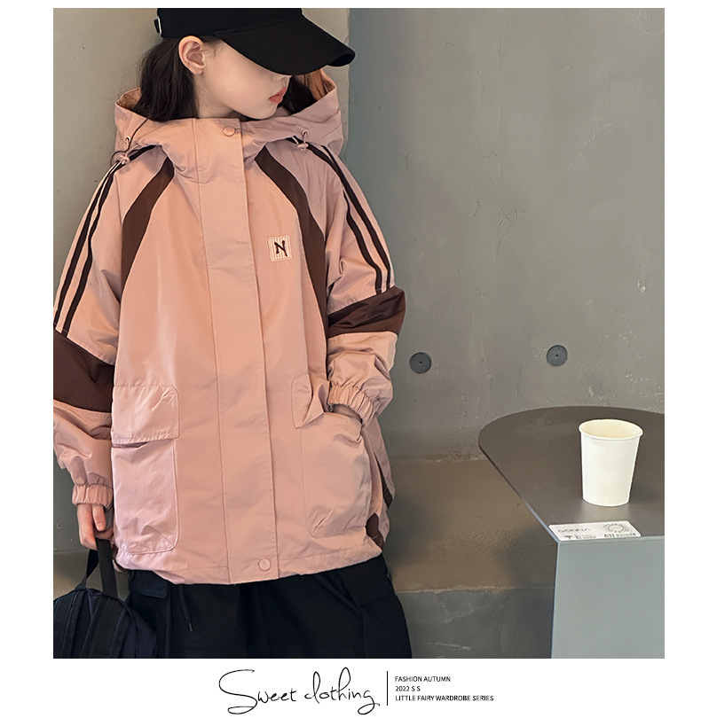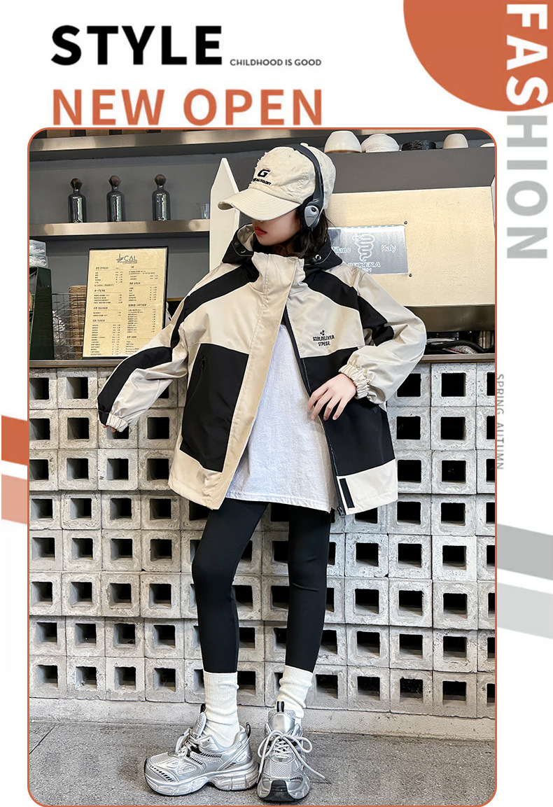 亲子装冲锋衣 中大童青少年春秋冬款连帽夹克外套 防风保暖上衣
