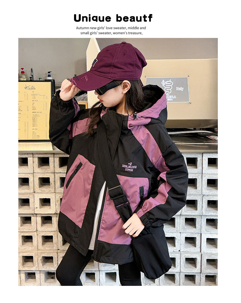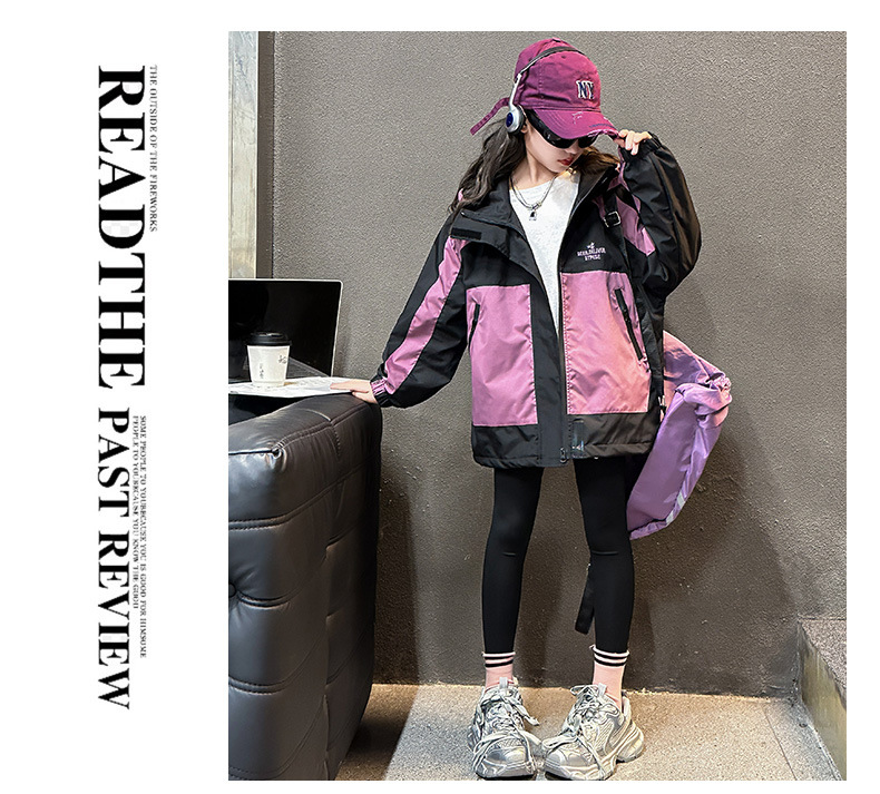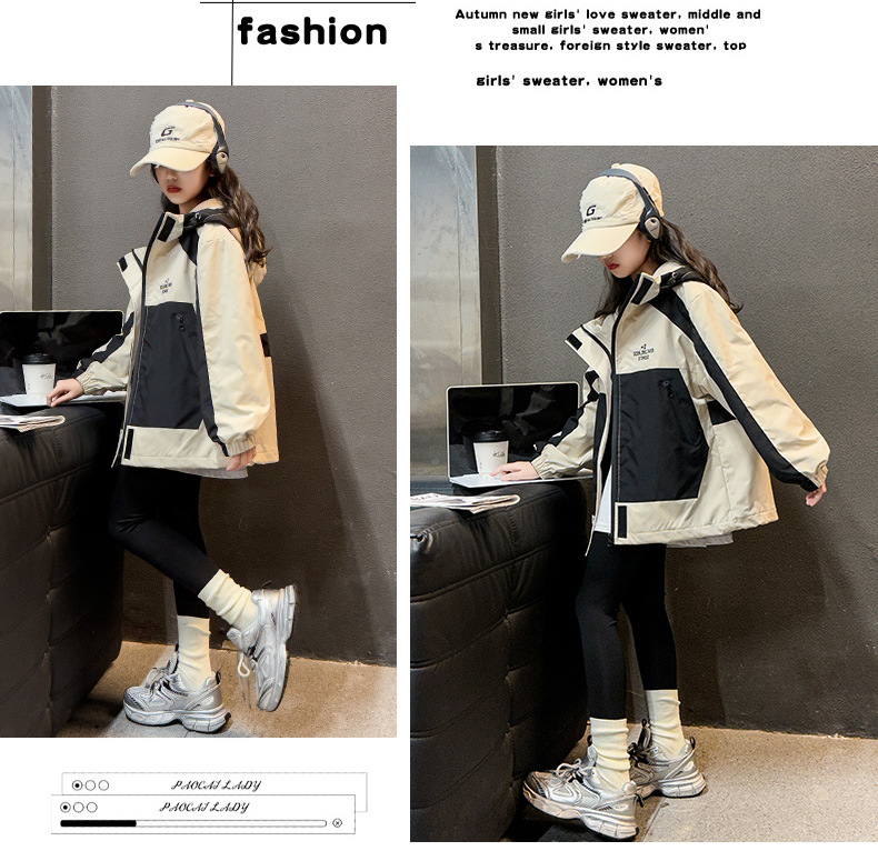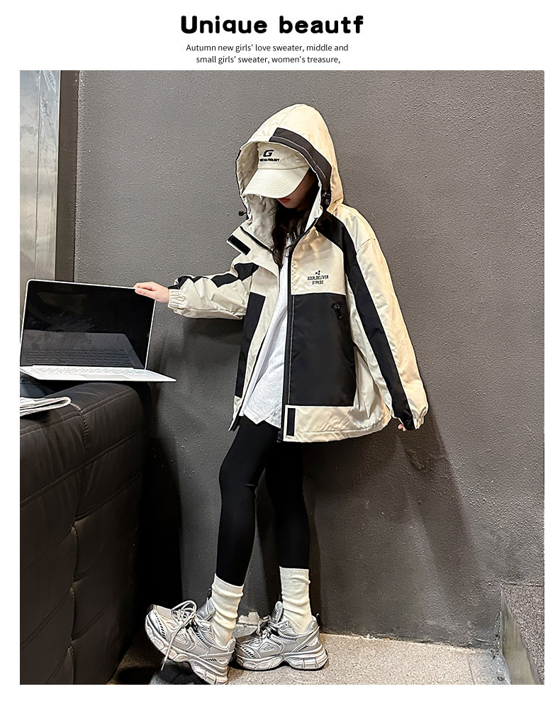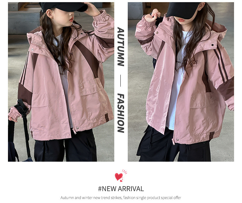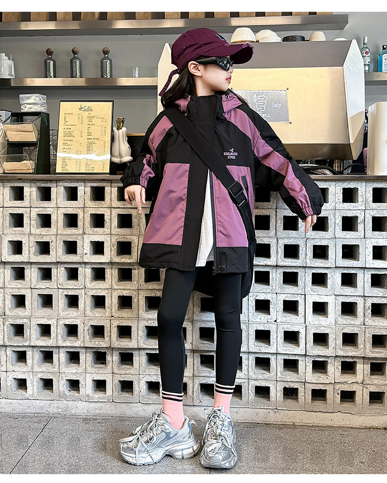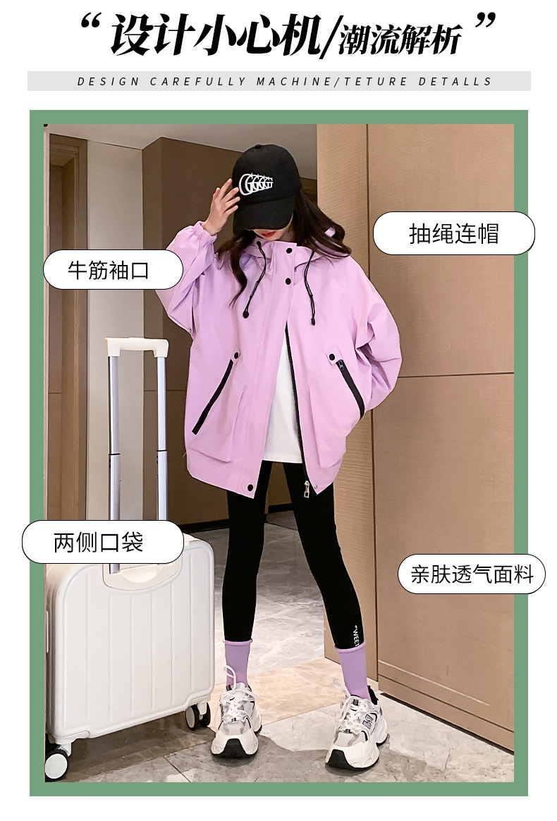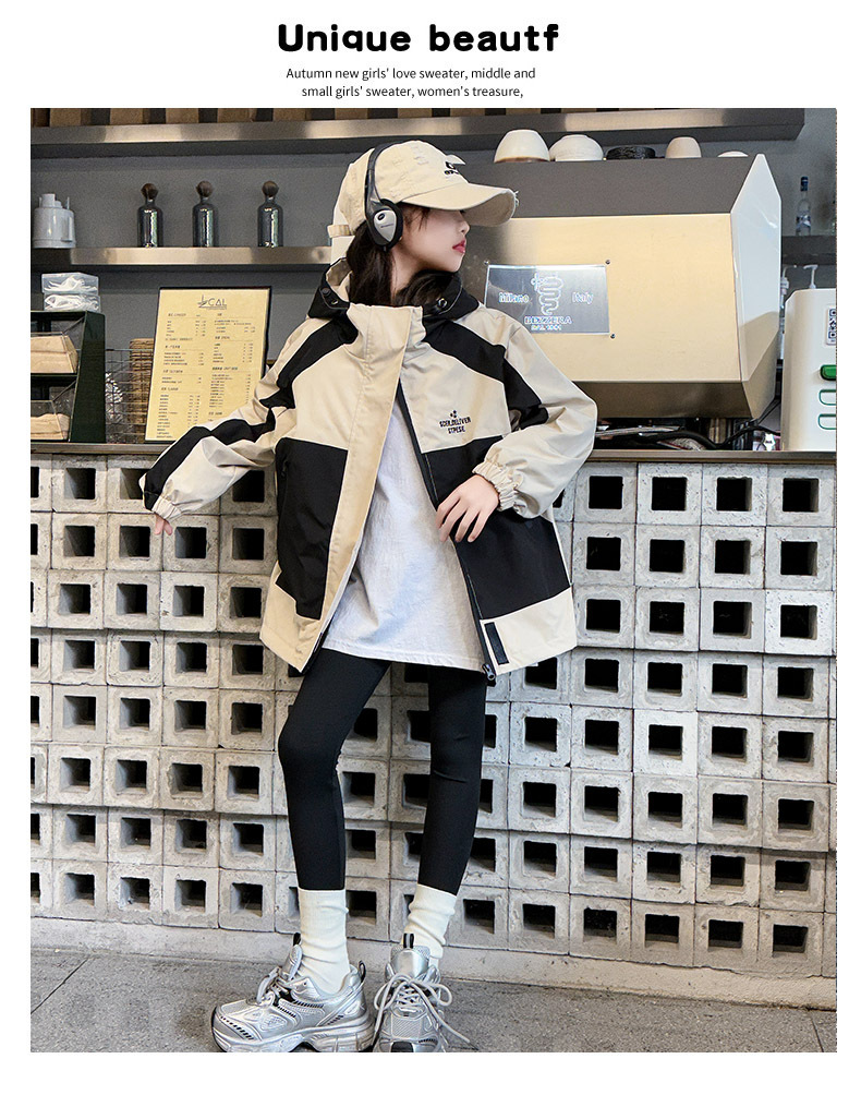 亲子装冲锋衣 中大童青少年春秋冬款连帽夹克外套 防风保暖上衣