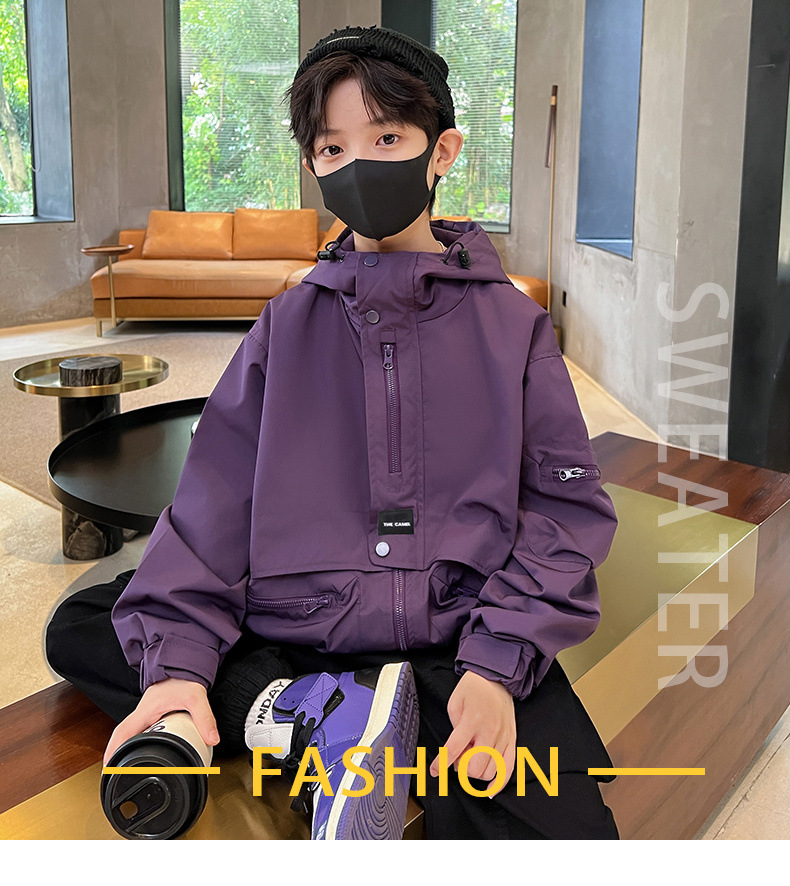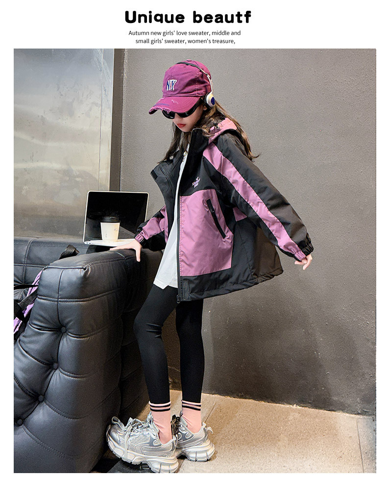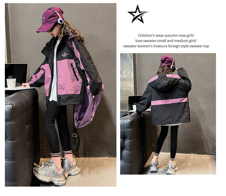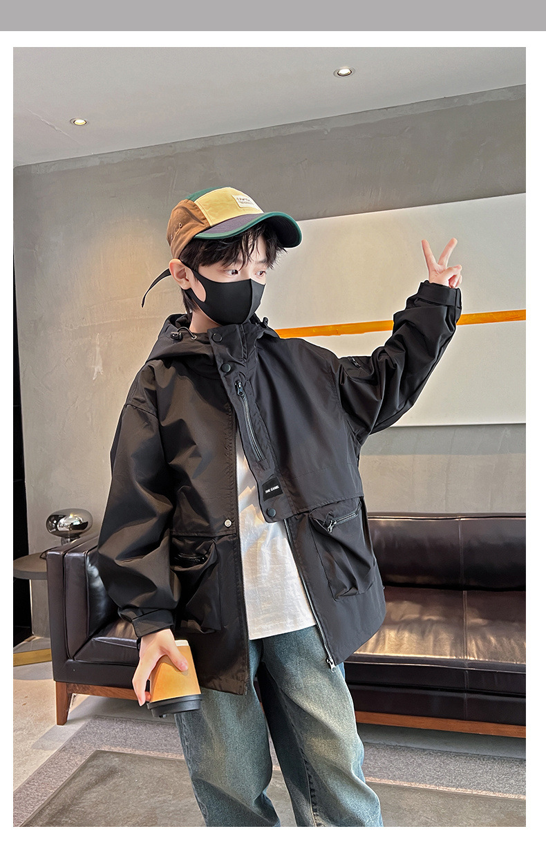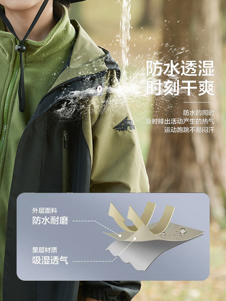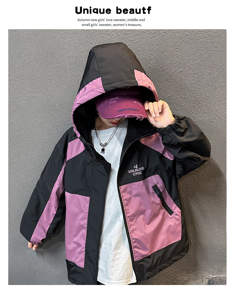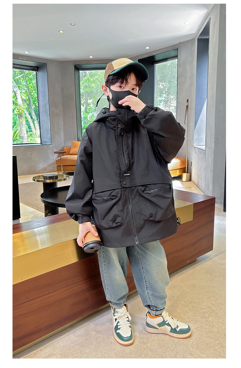 亲子装冲锋衣 中大童青少年春秋冬款连帽夹克外套 防风保暖上衣