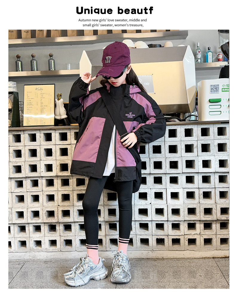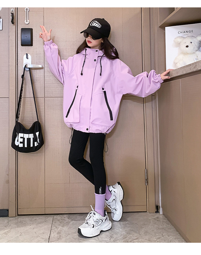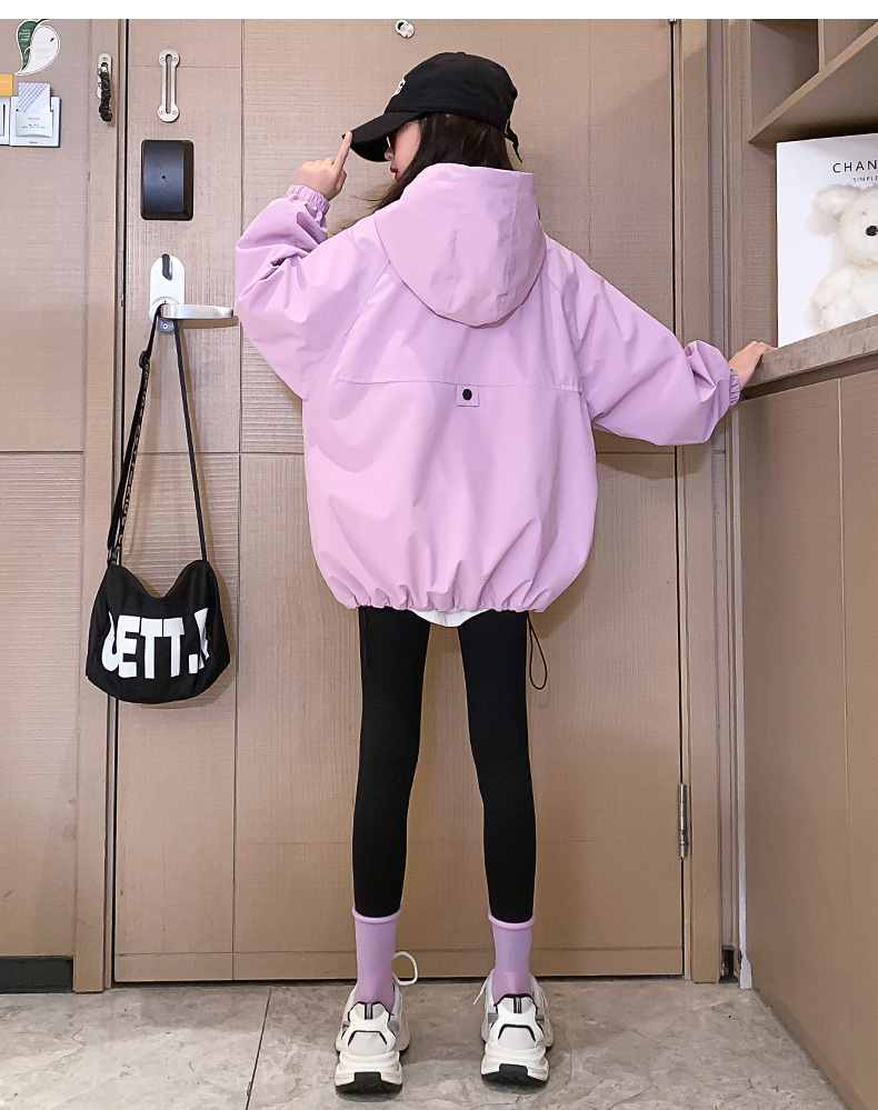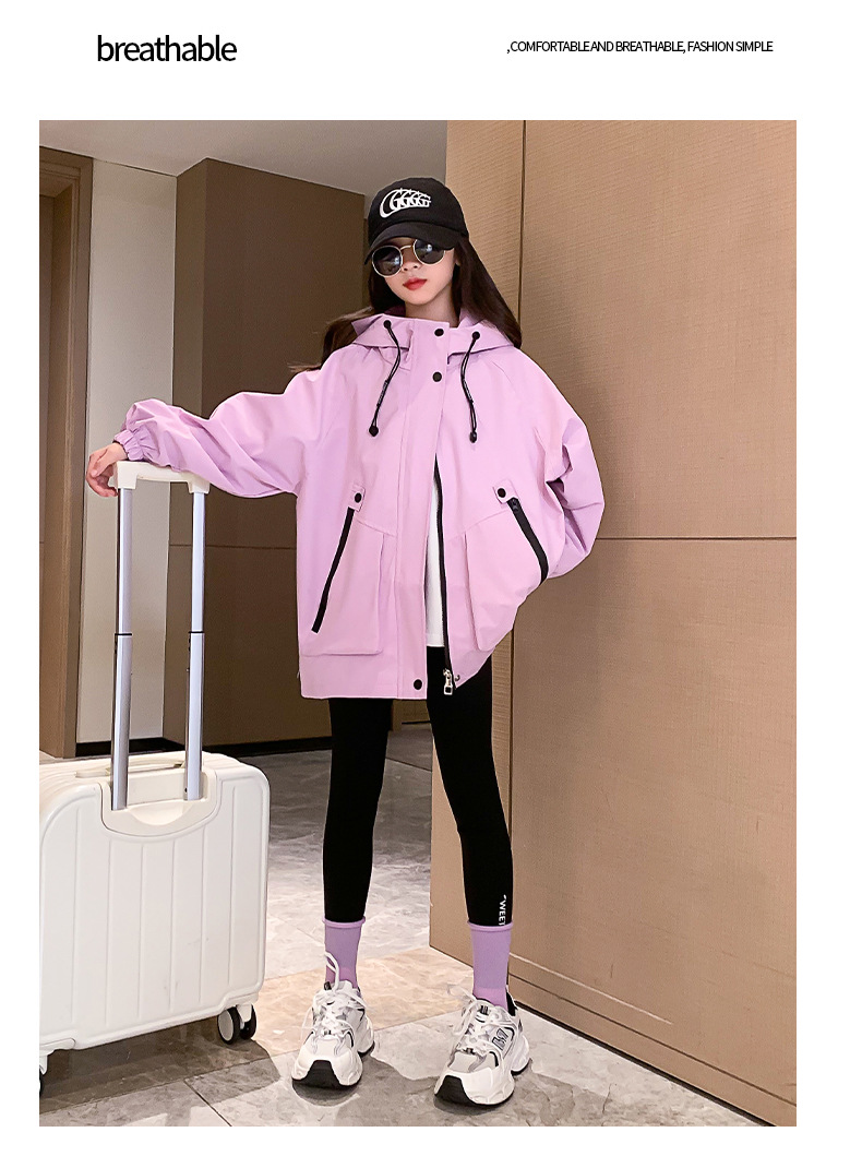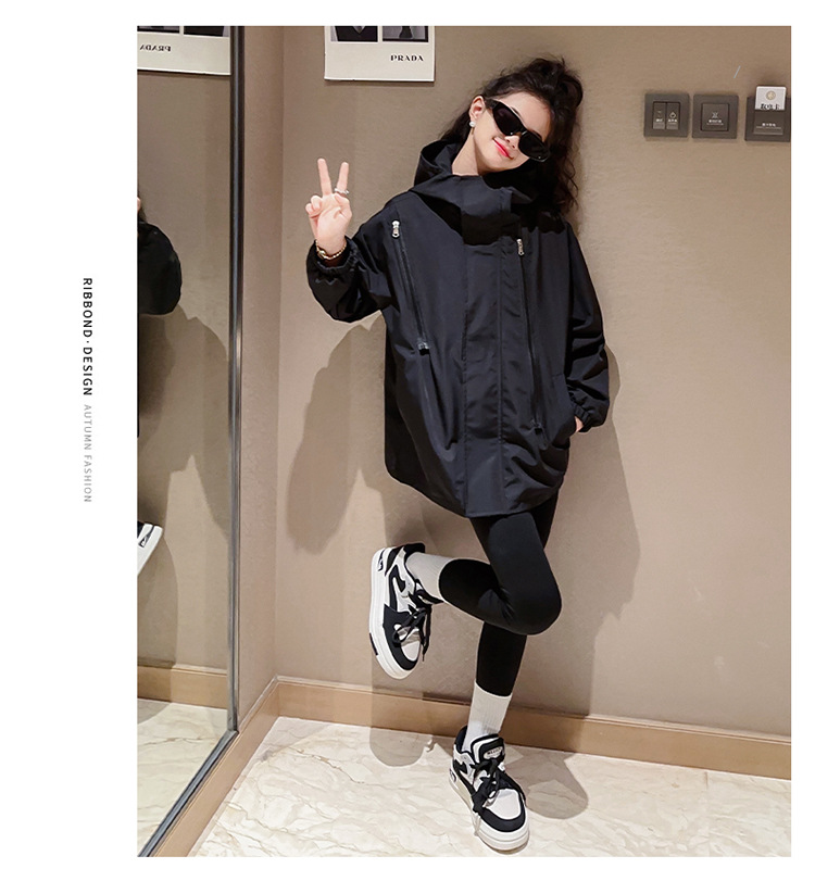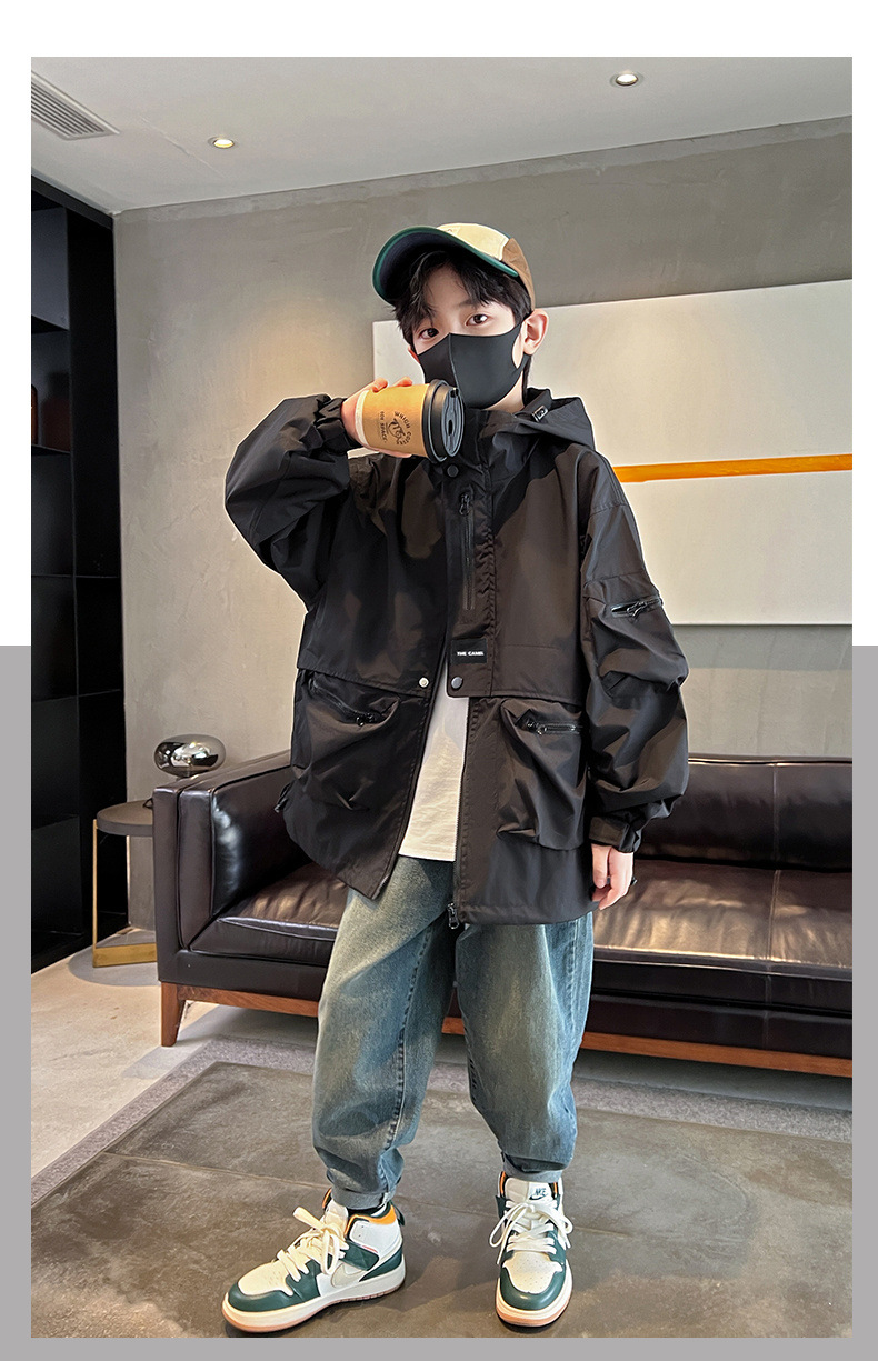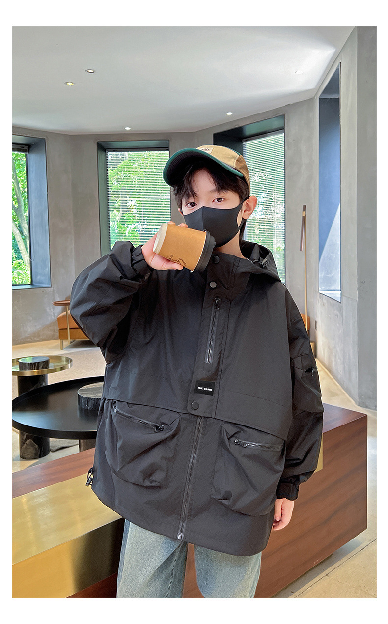 亲子装冲锋衣 中大童青少年春秋冬款连帽夹克外套 防风保暖上衣