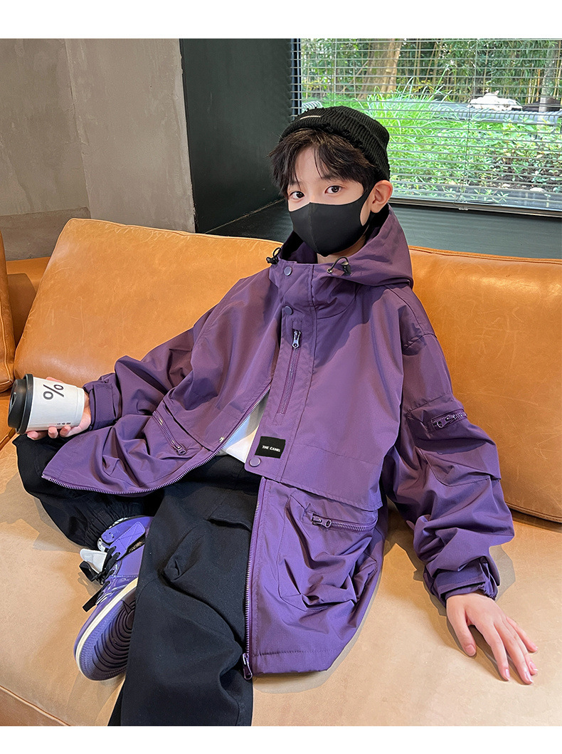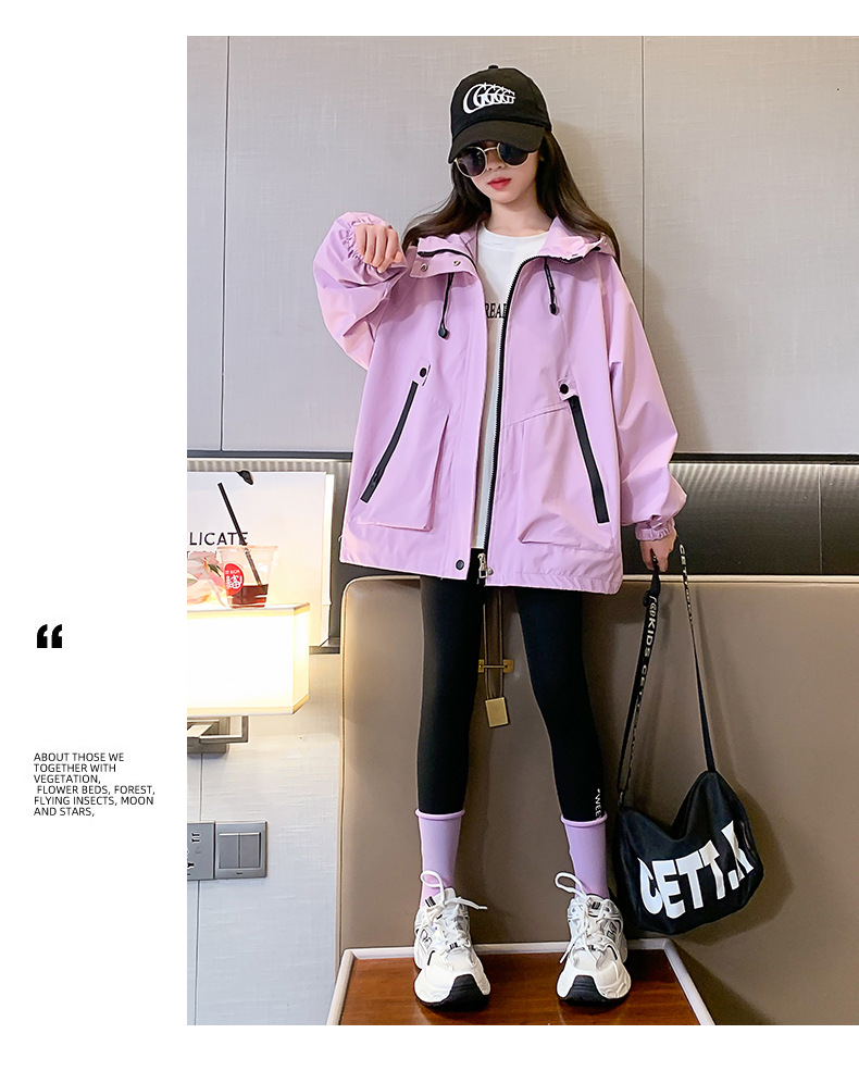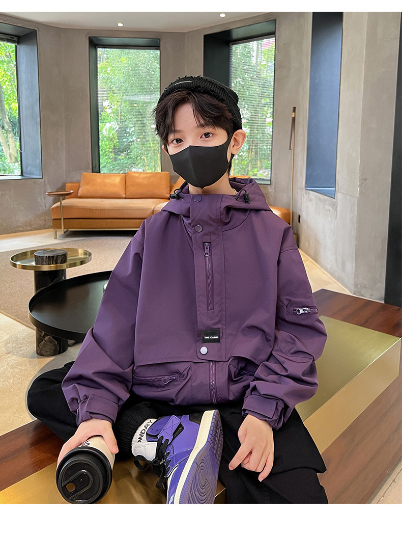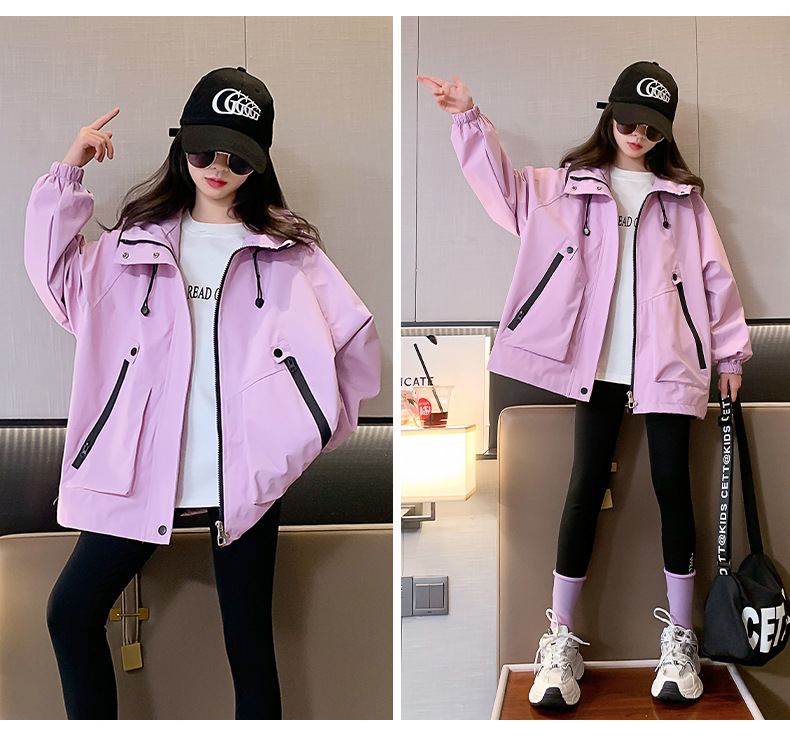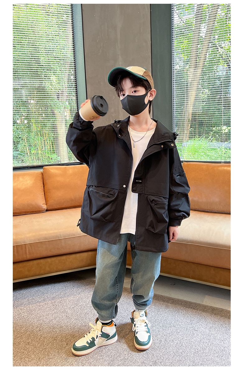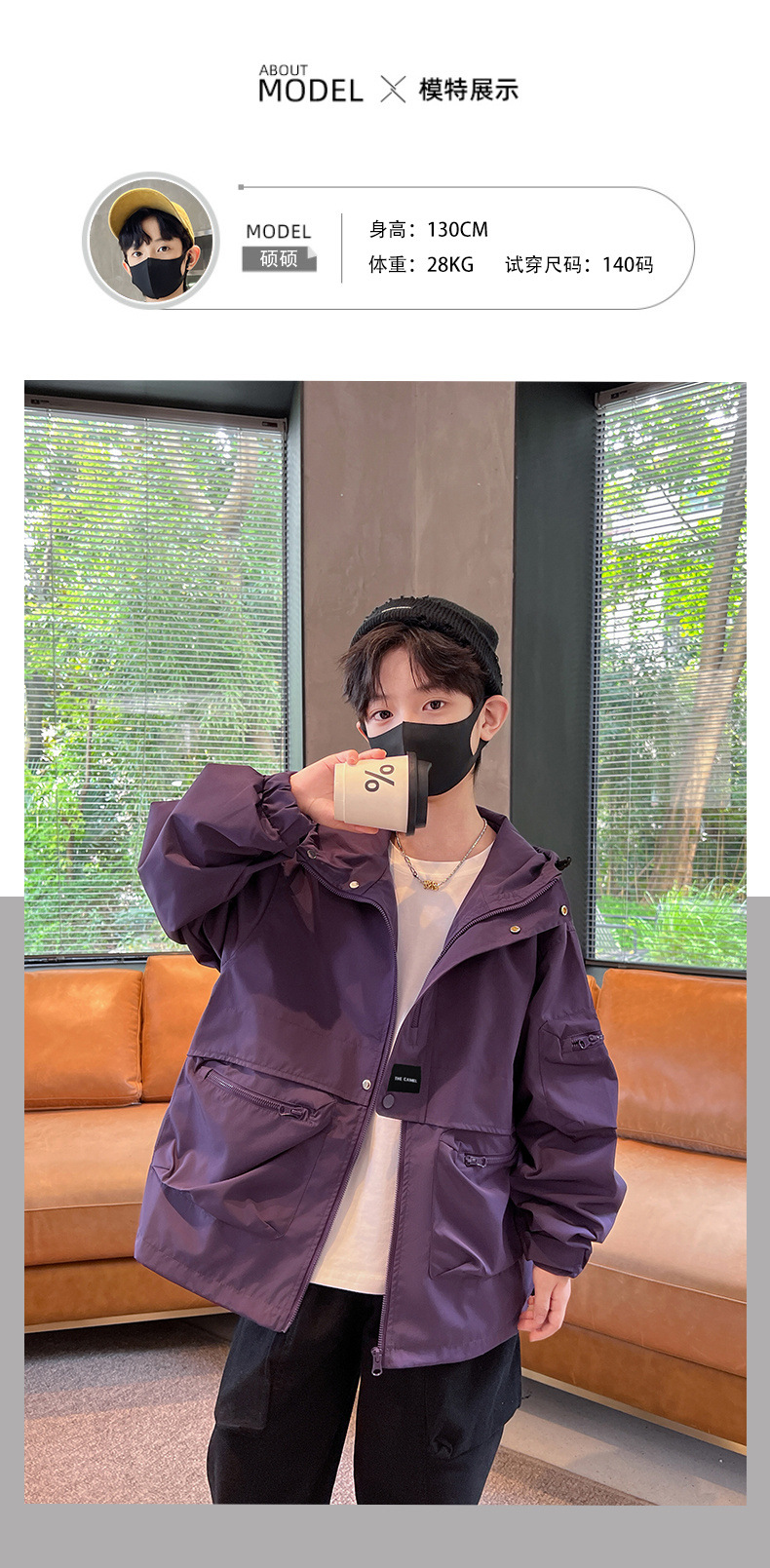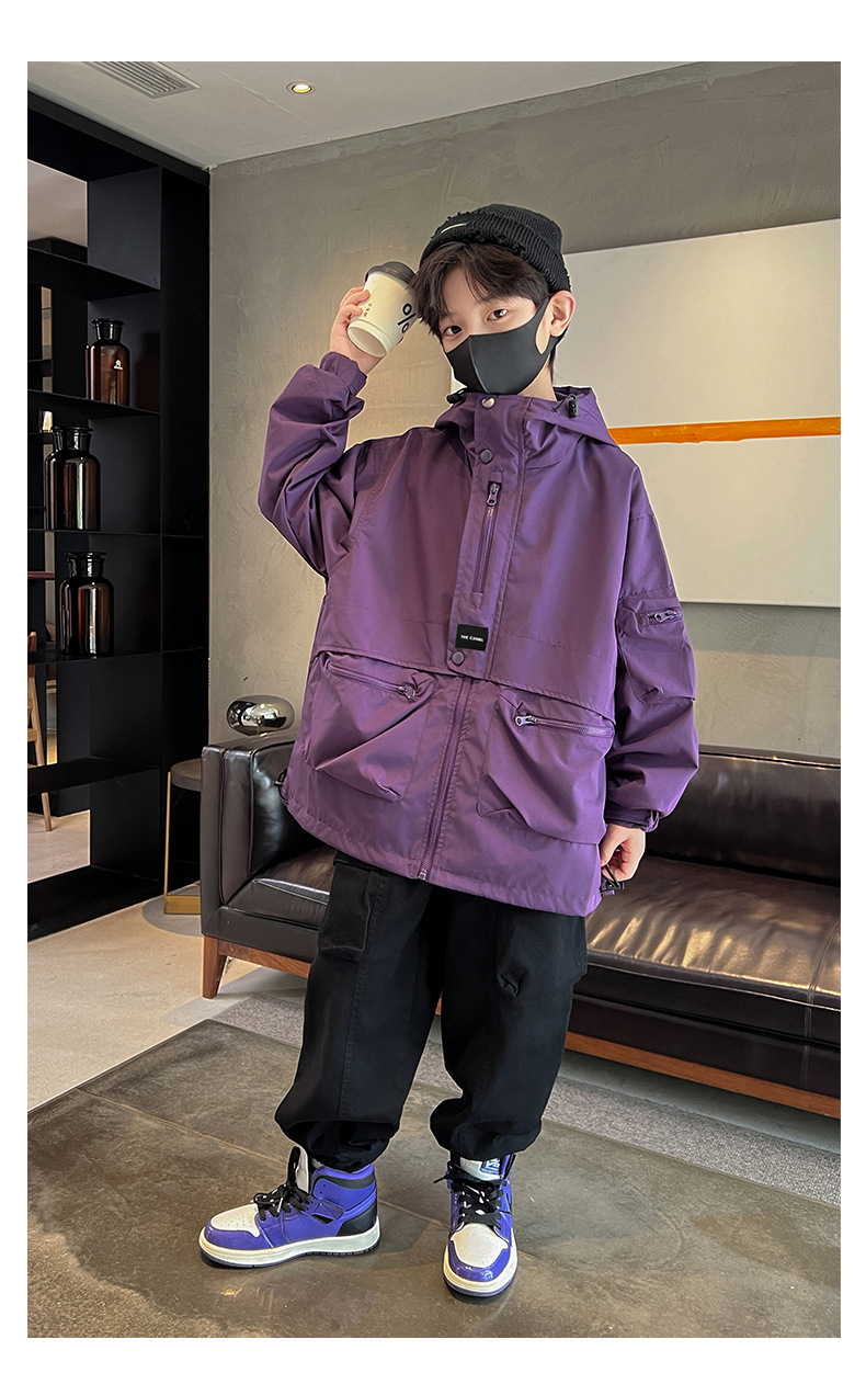 亲子装冲锋衣 中大童青少年春秋冬款连帽夹克外套 防风保暖上衣