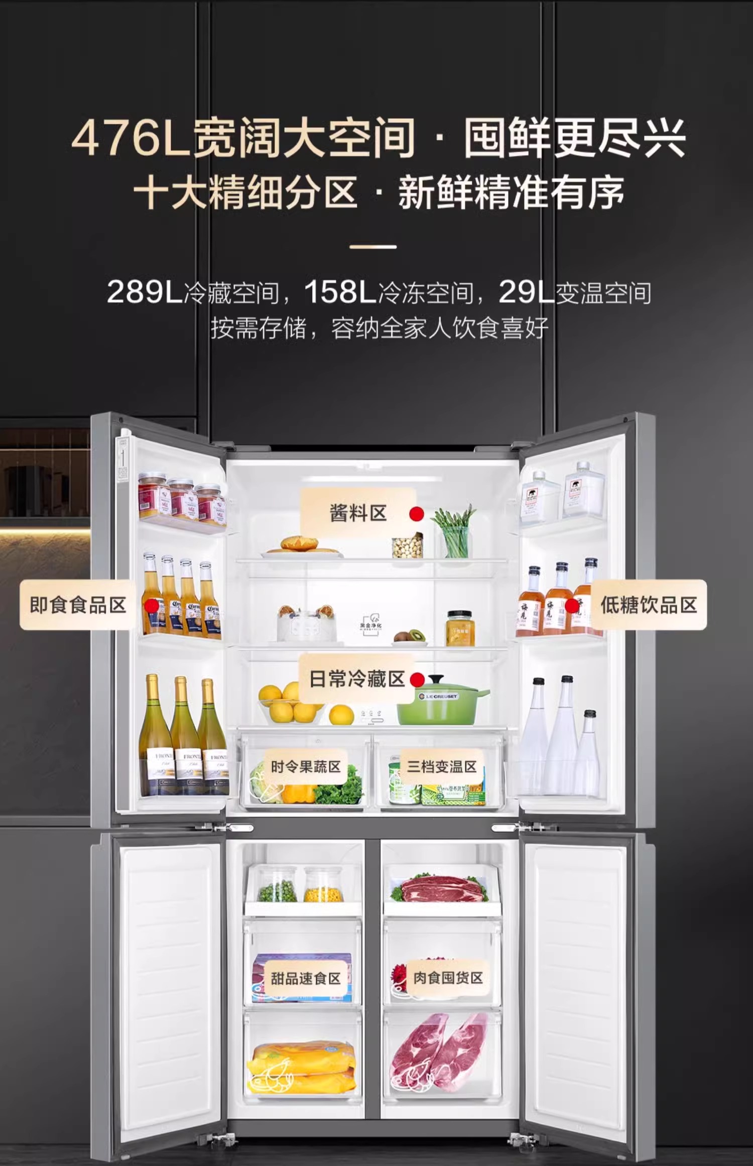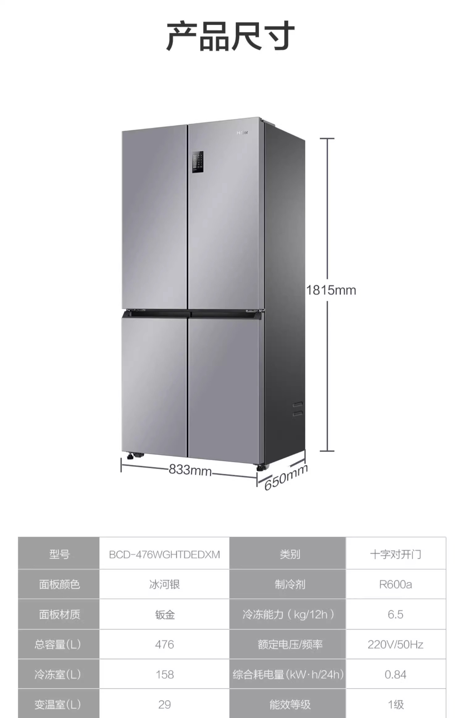海尔476L双开四门一级超薄风冷无霜家用大容量电冰箱