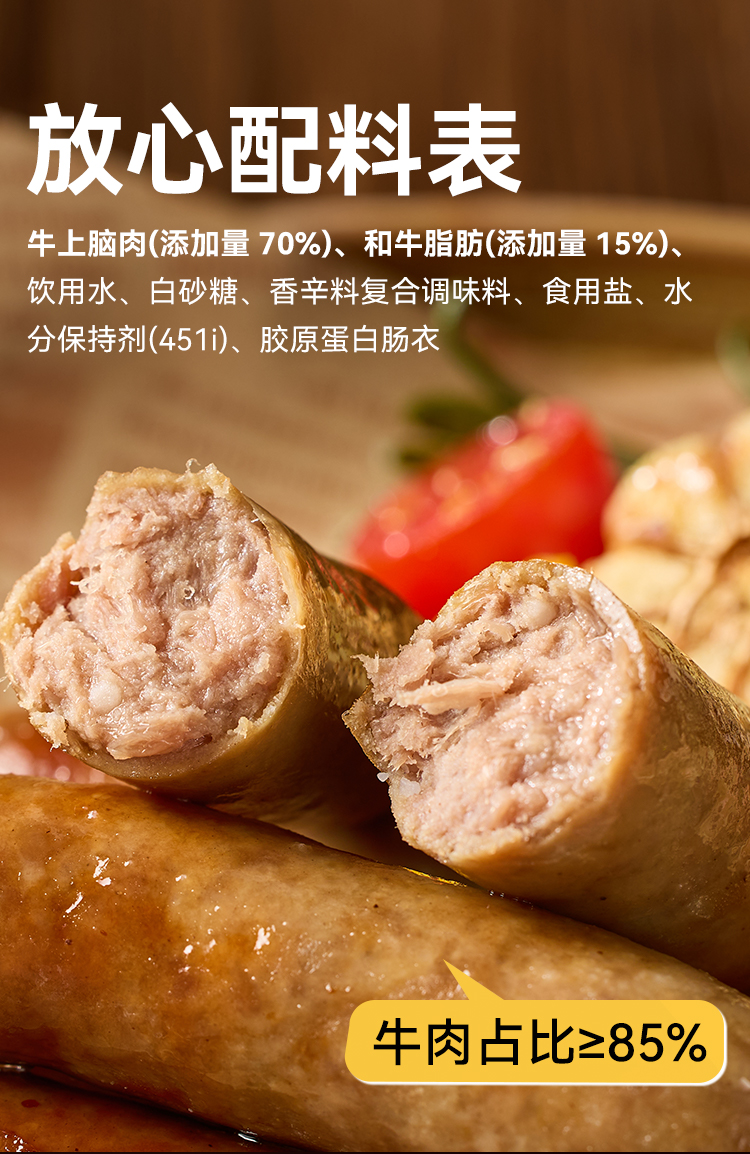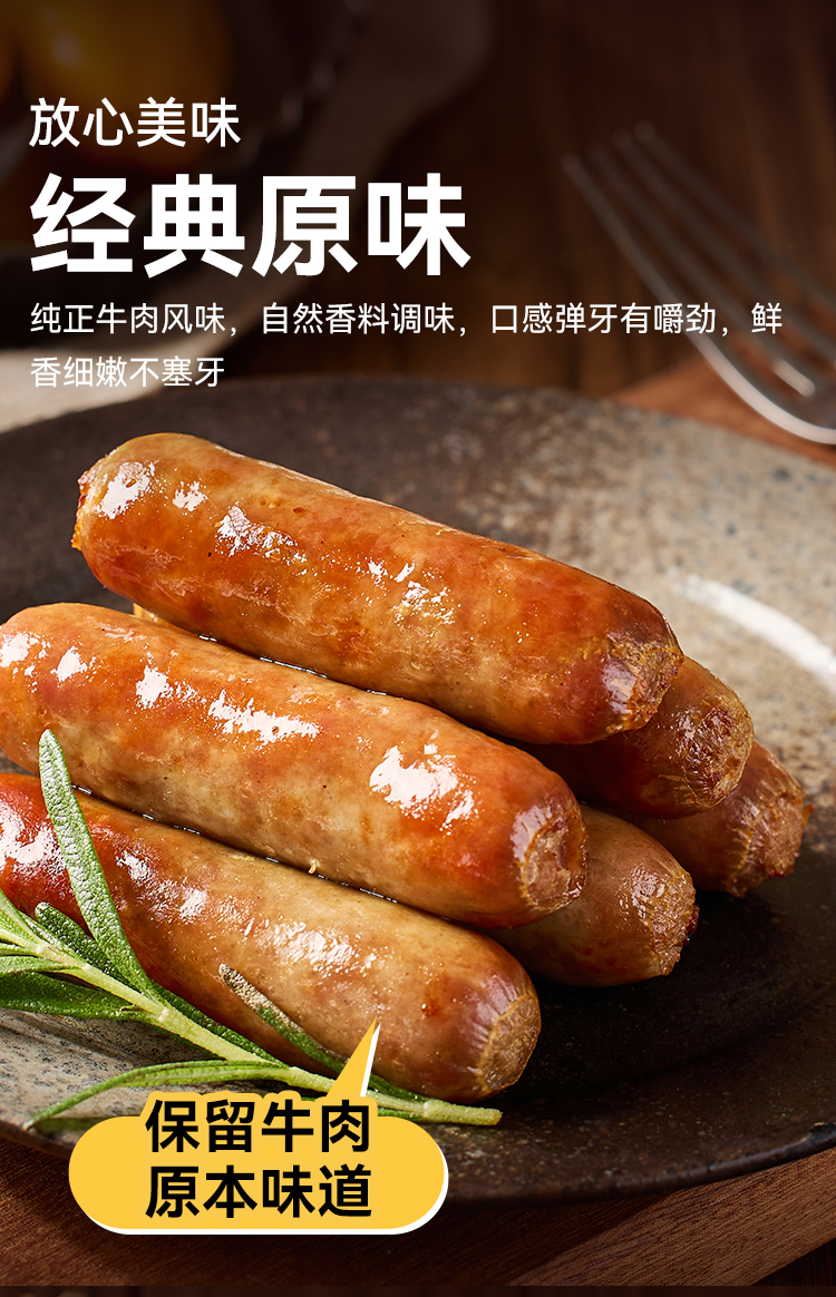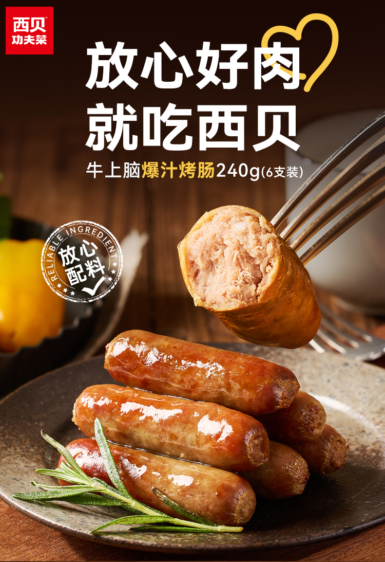 西贝牛上脑/黑猪肉爆汁烤肠 优选牛肉上脑部位,占比≥85%,全家放心吃。240g/盒【社群】