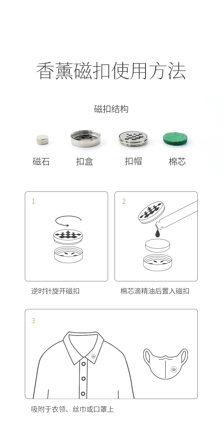 艾薇丹香薰磁扣精油扩香迷你可装饰随身携带
