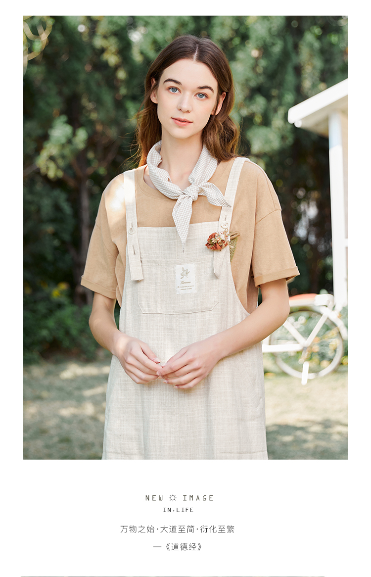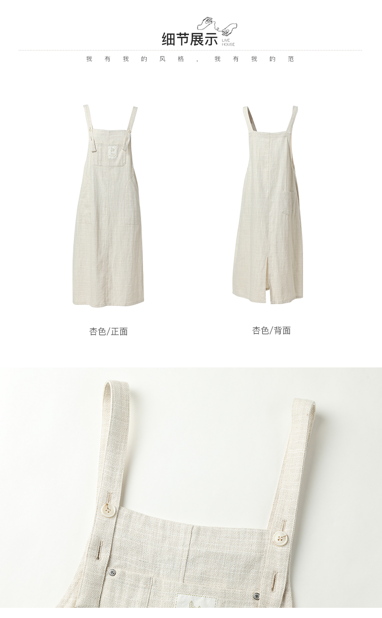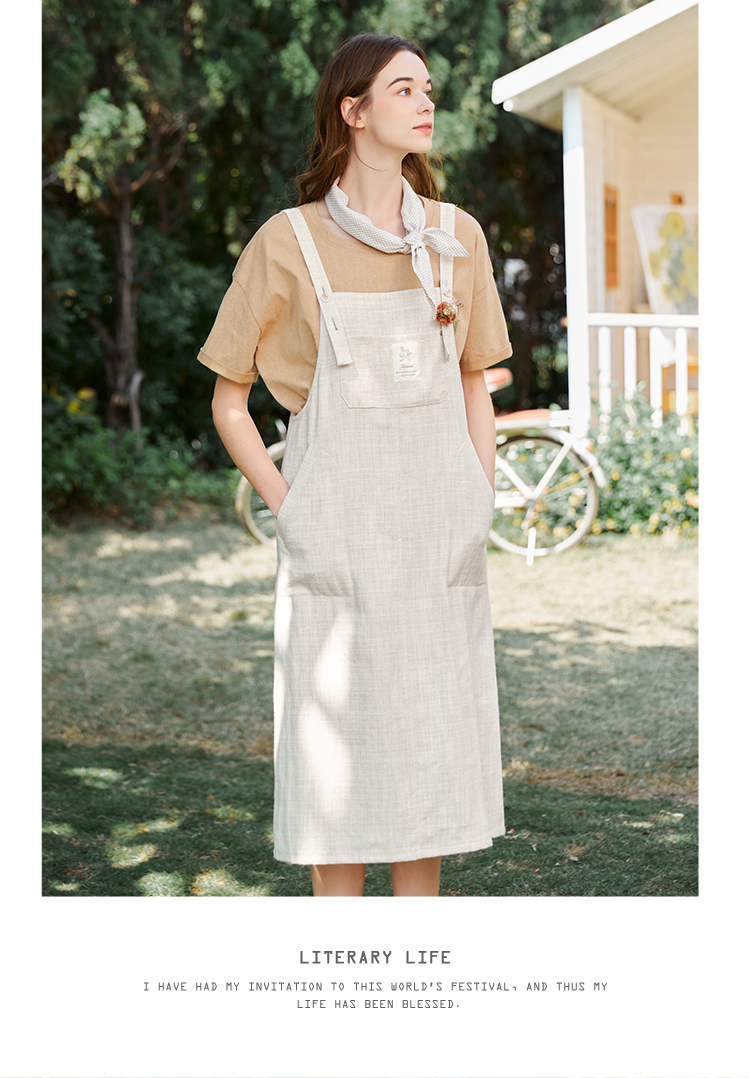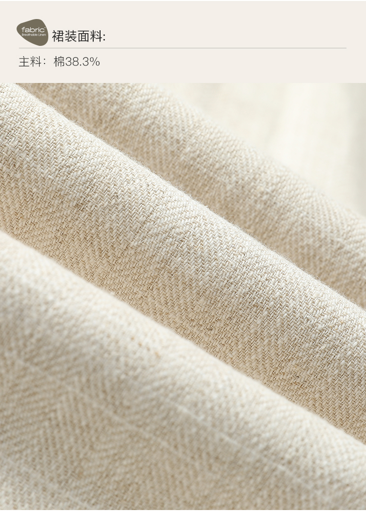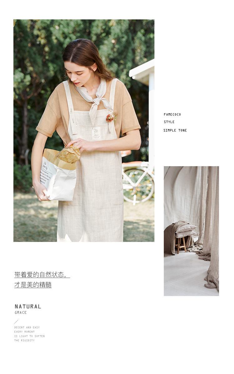 Famecoco范可儿宽松背带裙女森系夏季棉麻方领文艺连衣裙FAB3FE006