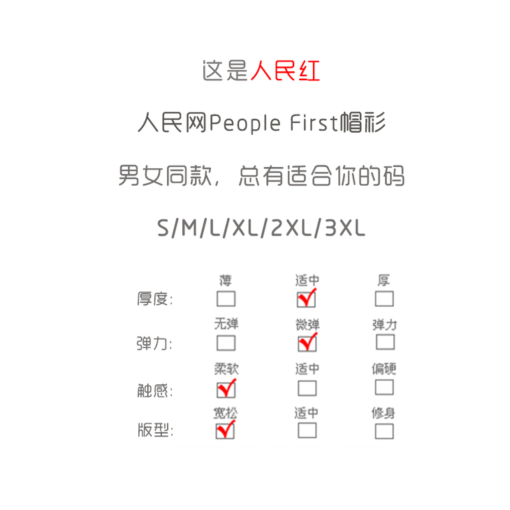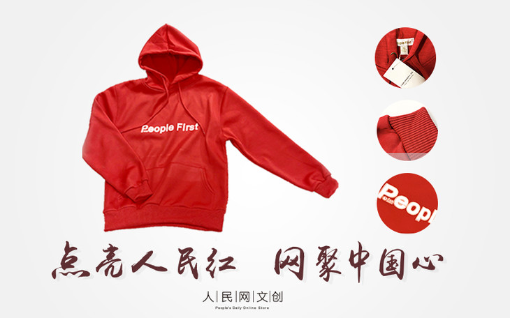 人民网两会记者款「人民红」People First 帽衫长袖卫衣 竹节棉 男女情侣