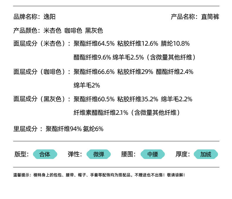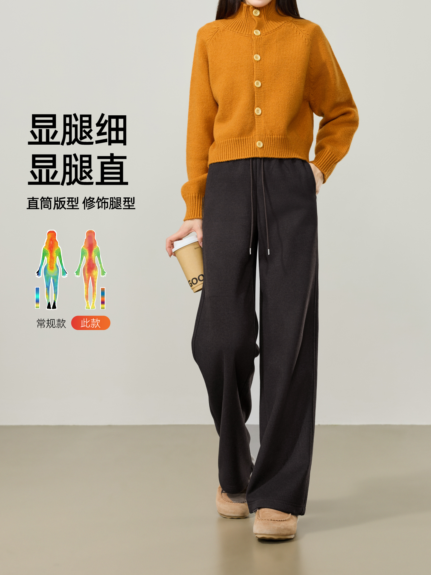 【随时下架!亏本售!暖暖长腿裤】逸阳冬加绒加厚醋酸羊毛高腰直筒糯米裤8619