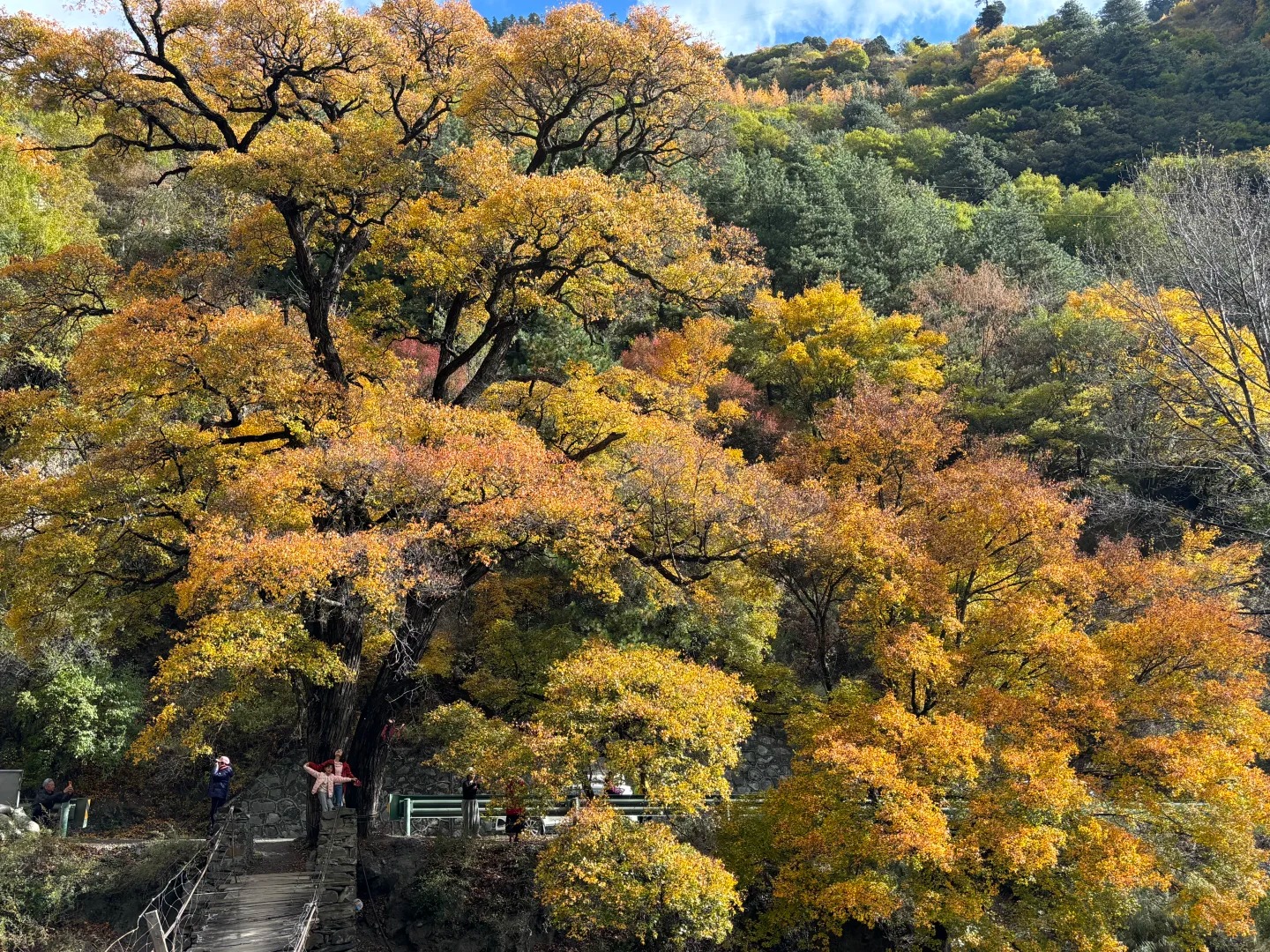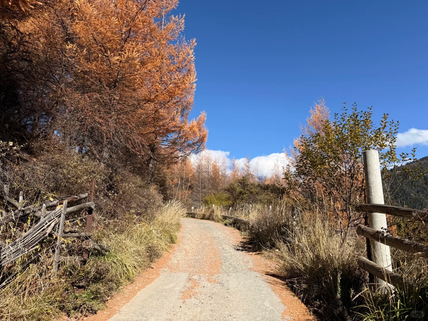 十一月的理县,风已经裹着寒意了,可当车转过最后一道山弯,二古溪突然撞进眼里—不是春夏的花团锦簇,是铺天盖地的“焦糖色”,像上帝打翻了暖调的调色盘。