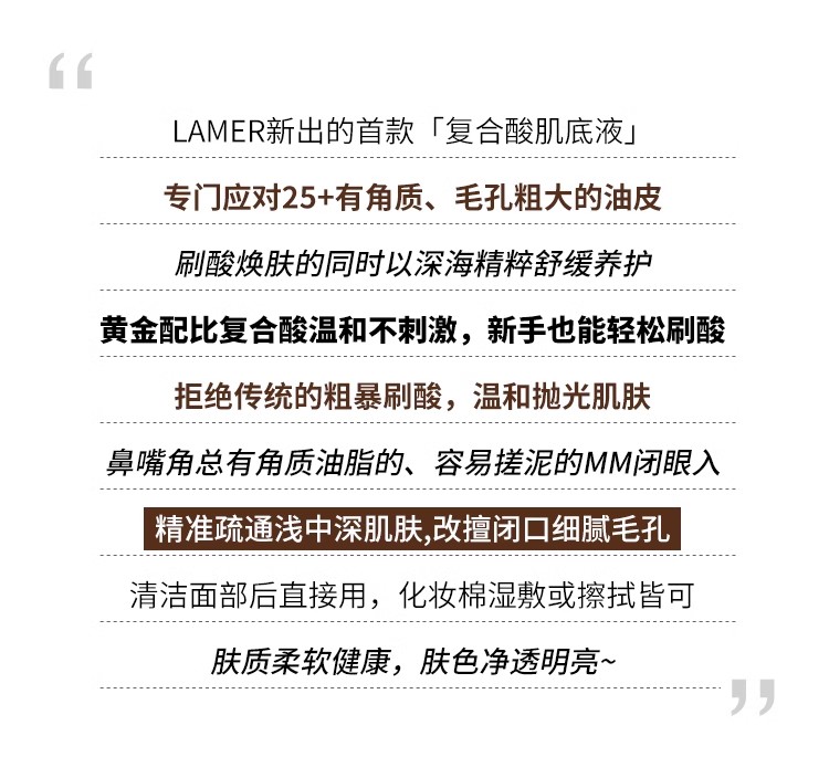 LAMER 海蓝之谜柔酸肌底液复合酸精华抗皱保湿缩毛孔 100ml【CDF】